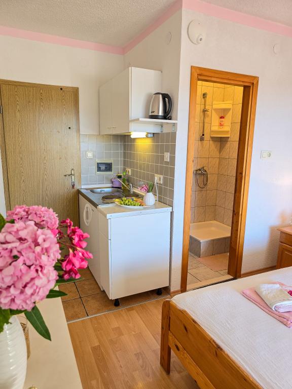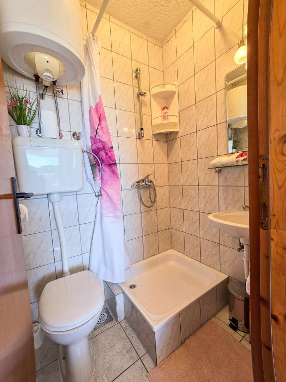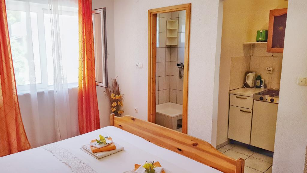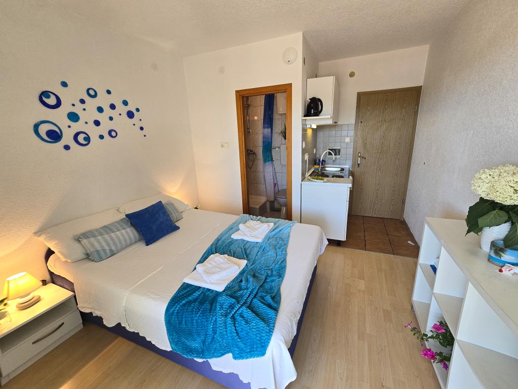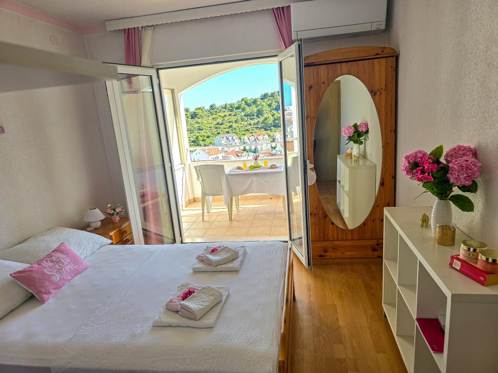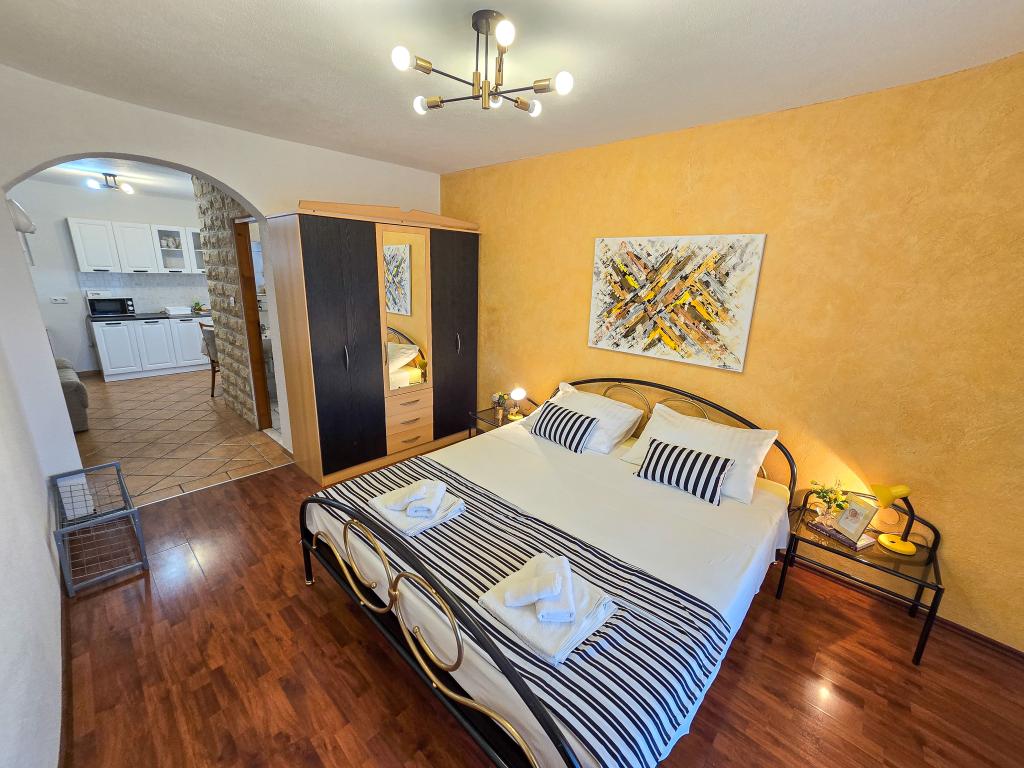 Grande smjetsaj, belle vue depuis le balcon, des appartements très bien rangé; très hôtes sympathiques, discrets, et très accessible à toutes les informations. Endroit tranquille, parking juste en face de la maison, épicerie à proximité, à 15min à pied du centre. Plaza à la baie Pokonji en bas de la belle, la mer propre, avec plusieurs restaurants, à proximité du chemin de la pente de la plage (grande formation), mais a un chemin autour d'accès en voiture. Extrêmement satisfait.