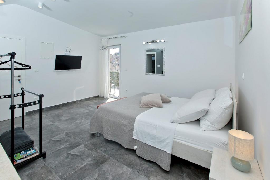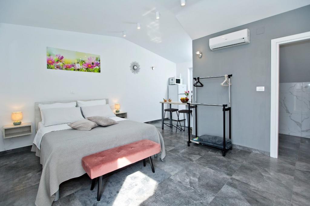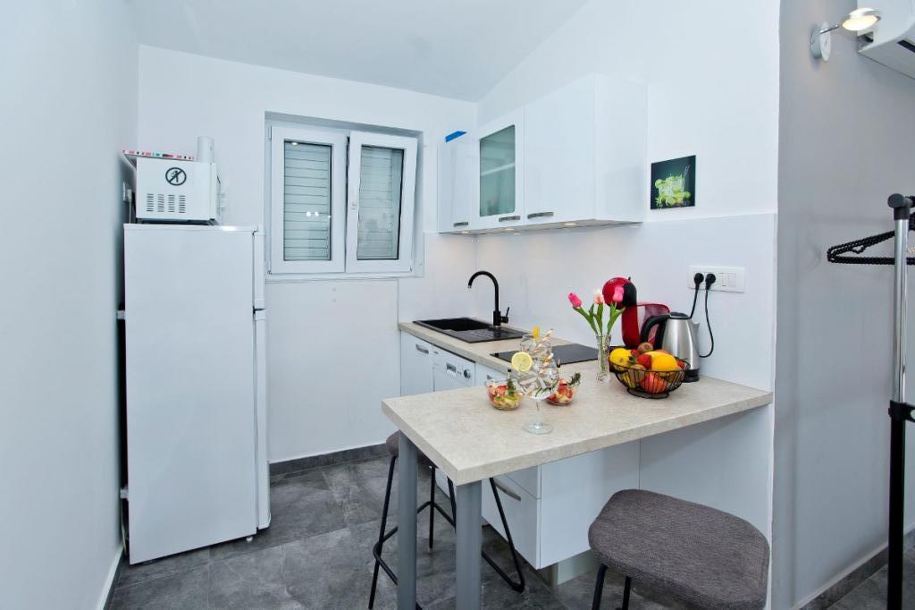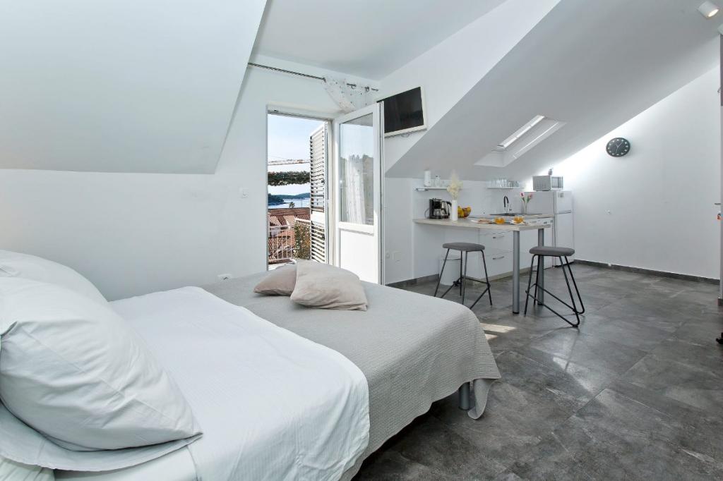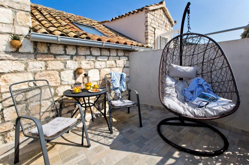 Élégamment décorés et situés en plein cœur de Hvar, ces studios offrent un parfait équilibre entre confort et emplacement idéal. Lumineux et modernes, ils sont équipés d'un lit double confortable (160 x 200 cm), d'une cuisine entièrement équipée avec tous les équipements nécessaires (réfrigérateur-congélateur, bouilloire, grille-pain, plaques de cuisson, micro-ondes, lave-vaisselle), d'une salle de bain avec douche à l'italienne, de la climatisation et d'une terrasse privative (table, chaises et transats) offrant une vue imprenable sur la vieille ville et le magnifique port de Hvar. Profitez pleinement de Hvar à deux pas de votre studio : charmants cafés, restaurants de qualité, adresses conviviales pour le petit-déjeuner, boutiques locales et magasins de souvenirs. La place principale, avec la cathédrale Saint-Étienne et le plus ancien théâtre public d'Europe, est à seulement 3 minutes à pied. Vous séjournerez en plein centre de Hvar, dans une rue calme et paisible, vous garantissant des nuits reposantes.