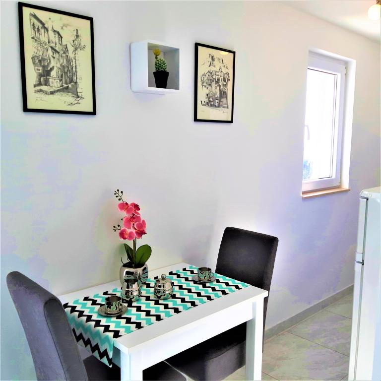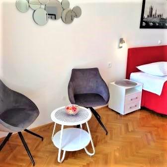 En savoir plus Unités d'hébergementLe prix comprend la taxe de séjour, l'utilisation de la climatisation et du wifi. Le parking est payant 7 euros par jour et par voiture. Le linge de lit est généralement changé une fois par semaine et les serviettes tous les 3 jours. Check-in : à partir de 14h00 Départ : jusqu'à 10h00 CONDITIONS DE RÉSERVATION : Pour confirmer la réservation, un acompte de 20% du montant total doit être réglé par virement bancaire. Le reste du montant est payé en espèces le jour de l'arrivée (nous n'acceptons pas les cartes de crédit). Un séjour inférieur à 4 jours est majoré de 20% à partir du 01.07. jusqu'au 31.08.