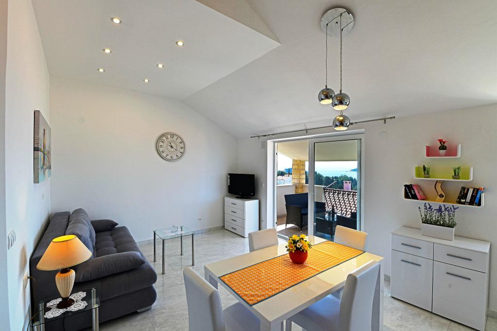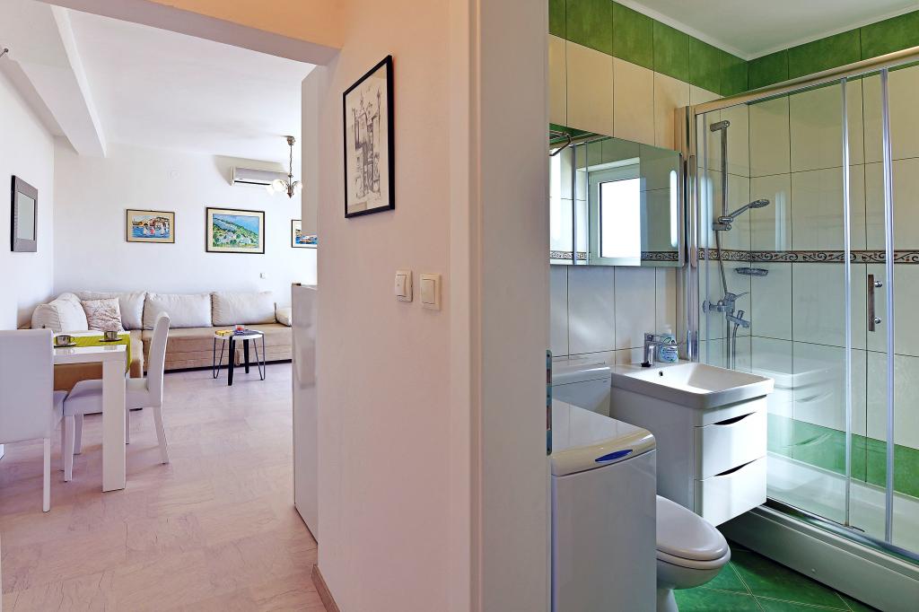 C'était notre deuxième place en Croatie cet été, et après quelques problèmes (pas très gênant, mais principale) à l'endroit précédent, nous avons eu l'impression dans le paradis. Tout d'abord, en raison de son lit, nous avons adoré! L'appartement est confortable et bien équipée. Les hôtes sont très gentils et prêts à vous aider. La vue depuis le balcon - pas parfait (mur de la villa à côté), mais assez agréable à observer la mer, les îles et les yachts. Assez proche de la plage et à proximité d'un petit supermarché. Toutefois, pour obtenir plus de produits, vous devriez aller au centre (Konzum, marché vert, boulangeries), cela peut prendre près de 20 minutes dans un sens. Nous pourrions dire que nous avons tout aimé dans cette villa. Mais, l'acoustique de l'appartement n'était pas très bon. Toutes les portes qui se ferment faire du bruit remarquable, parlant des gens dans d'autres appartements sont audibles. Merci, nos voisins actuels ne sont pas très bruyant. Quoi qu'il en soit nous remercions les hôtes, nous avons eu un grand plaisir et recommandons cette villa.