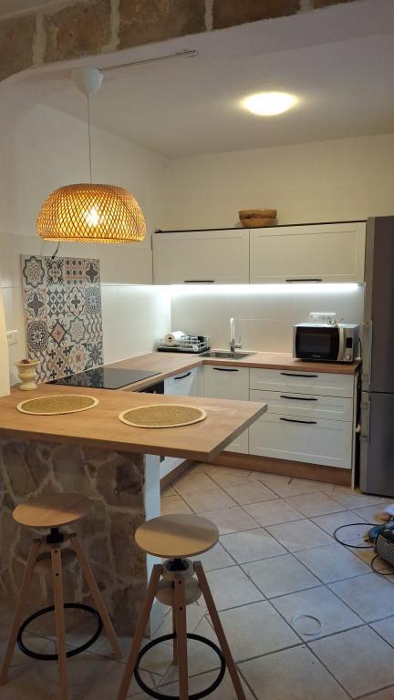 La maison est située juste en bord de mer. Elle comprend 4 appartements et peut accueillir jusqu'à 18 personnes. Chaque appartement dispose d'une grande terrasse offrant une vue imprenable sur la ville de Pag et le coucher du soleil.
