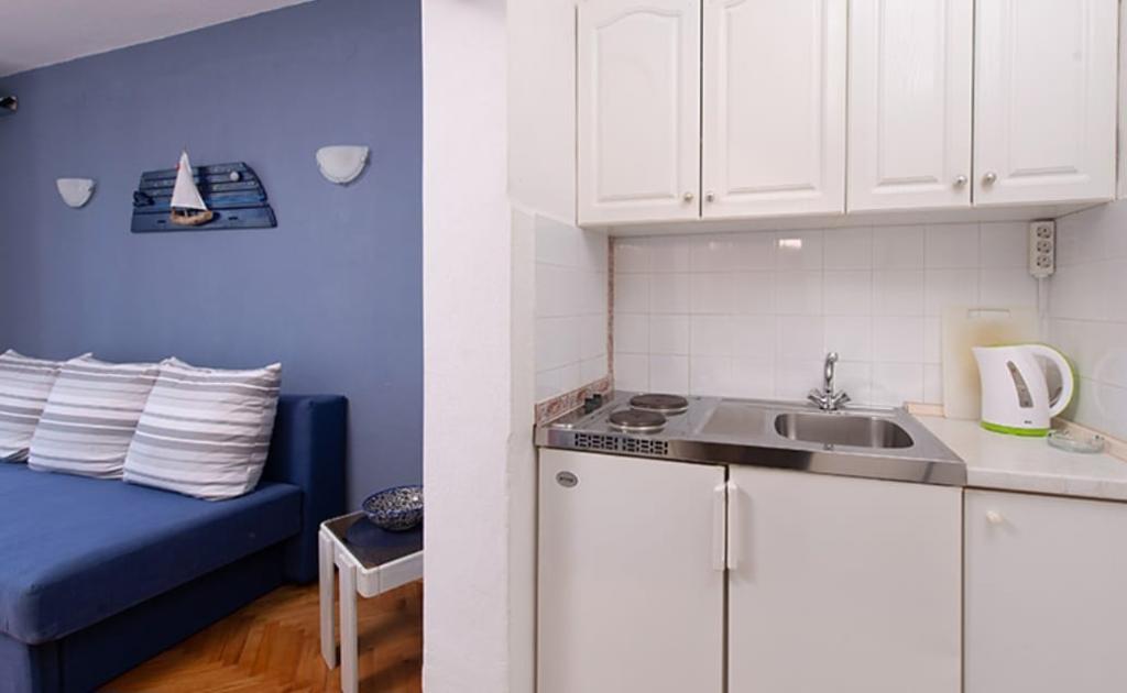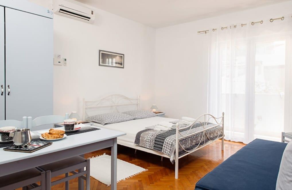 L'emplacement directement sur la plage et la vue sur la mer depuis la terrasse le soir sont inestimables. Diana était toujours disponible par téléphone et souvent sur place. Comme toujours, elle s'est montrée extrêmement aimable et serviable. La chambre était propre et équipée comme décrit, et la décoration a rendu le séjour plus agréable. Aucun frais supplémentaire, comme le parking, n'a été facturé. Le Wi-Fi était très performant ; il y avait un routeur dans la chambre. La kitchenette était équipée de tout le nécessaire pour deux personnes, y compris un réfrigérateur. Tous les commerces et restaurants nécessaires se trouvent à moins de 5 minutes à pied. C'est un endroit calme, parfois animé par de la musique live dans le centre-ville. Les clients peuvent profiter d'excursions sur deux bateaux vers les îles et les plages environnantes depuis le port local.