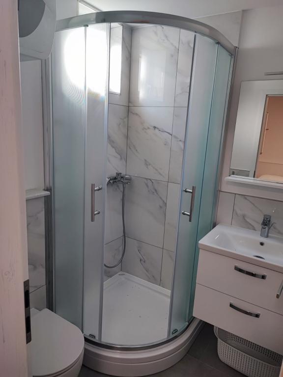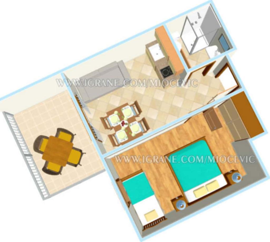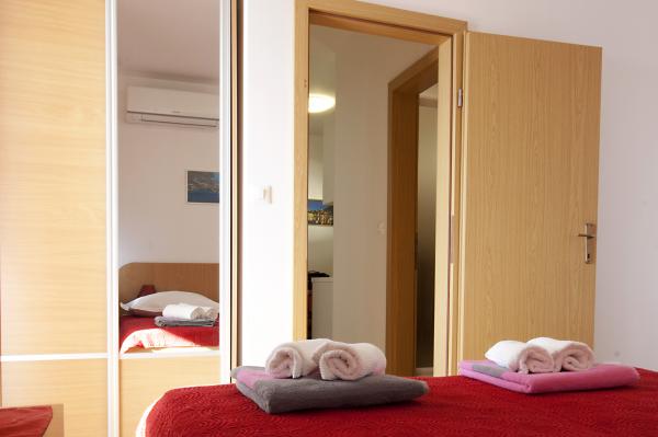Entièrement équipé et des appartements modernes Miočević sont situés dans un quartier calme de jeux, à seulement 20 mètres du centre et à 2 minutes à pied de la plage. Les appartements sont neufs, climatisation marque, Wi - Fi Zone, et avoir des espaces de stationnement à proximité. Le bâtiment dispose d'un grand jardin, entourée de fleurs et de verdure. La nuit, il est très calme car il n'y a pas de services de restauration dans les environs. Les hôtes ont le temps de svokom à votre service.