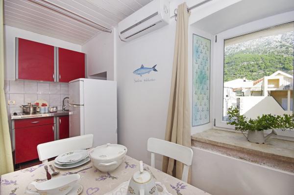 Notre maison fait partie de la maison baroque, construit en 1760. Monument protégé. La maison en face de vous une vue sur la mer et l'île de Hvar. Nous avons renouvelé en 2011. Les appartements sont bien équipés et conservés à l'esprit des temps passés. Joué un village de pêcheurs sur la Riviera Makarska, avec une église et un clocher distinctif sur le dessus du village et les plages de sable fin et ses eaux cristallines.