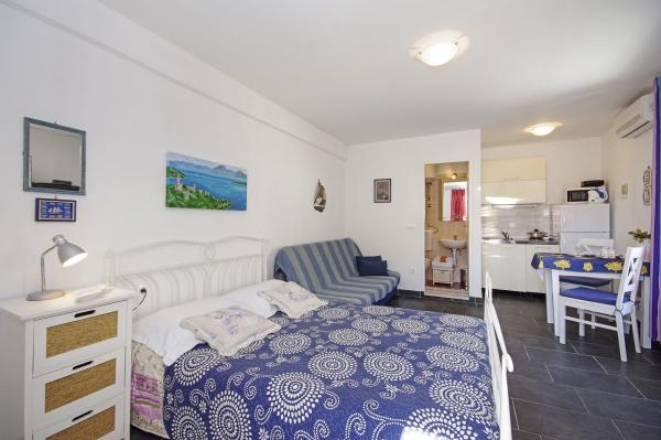 Nous avons séjourné confortablement à trois dans le Studio 1 avec vue sur la mer. Il est très proche de la plage et dispose d'une magnifique terrasse avec une pergola.