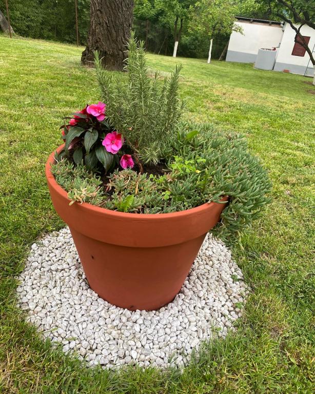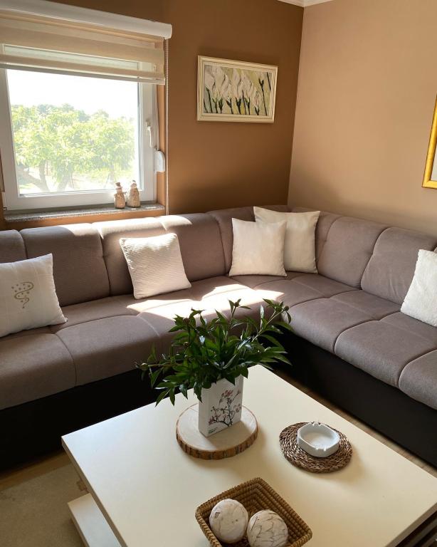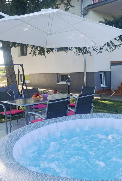 Sur les pentes de Fruška Gora, à 5 km de la ville viticole d'Ilok, en pleine nature et loin des événements quotidiens, se trouve une maison de vacances entièrement et modernement équipée qui dispose également d'un jacuzzi extérieur et vous offre calme et intimité sur un terrain de 1 600 m2. jardin où divers fruits et vignes.