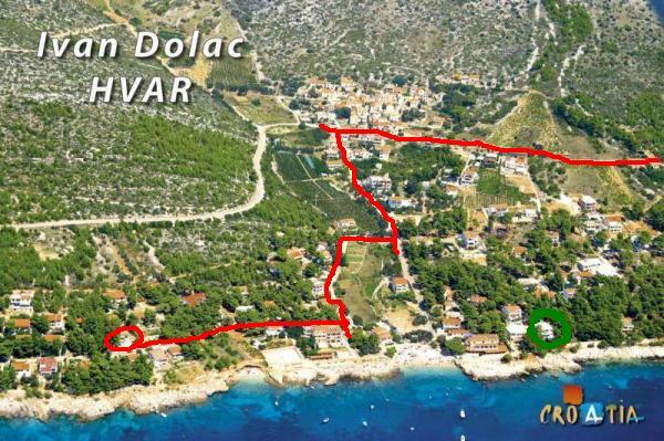 La maison est située à Ivan Dolac, au sud de l'île de Hvar. C'est un endroit calme et paisible avec une forêt de pins, idéal pour ceux qui recherchent un endroit pour se reposer. On y trouve de nombreuses plages de galets, trois restaurants, une petite épicerie et une boulangerie. La maison est située à 50m de la première plage. La rue est très calme et il y a rarement de circulation.