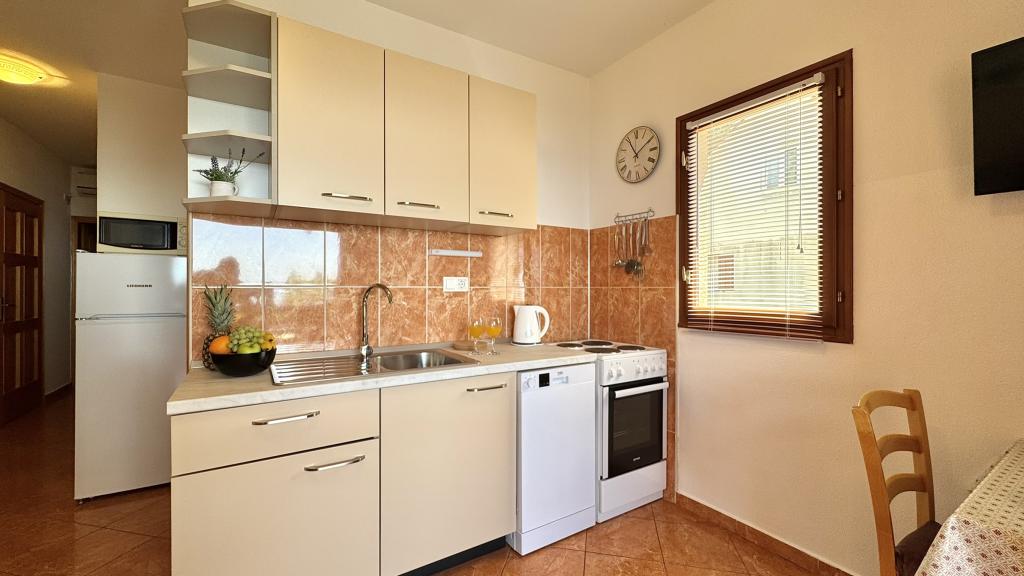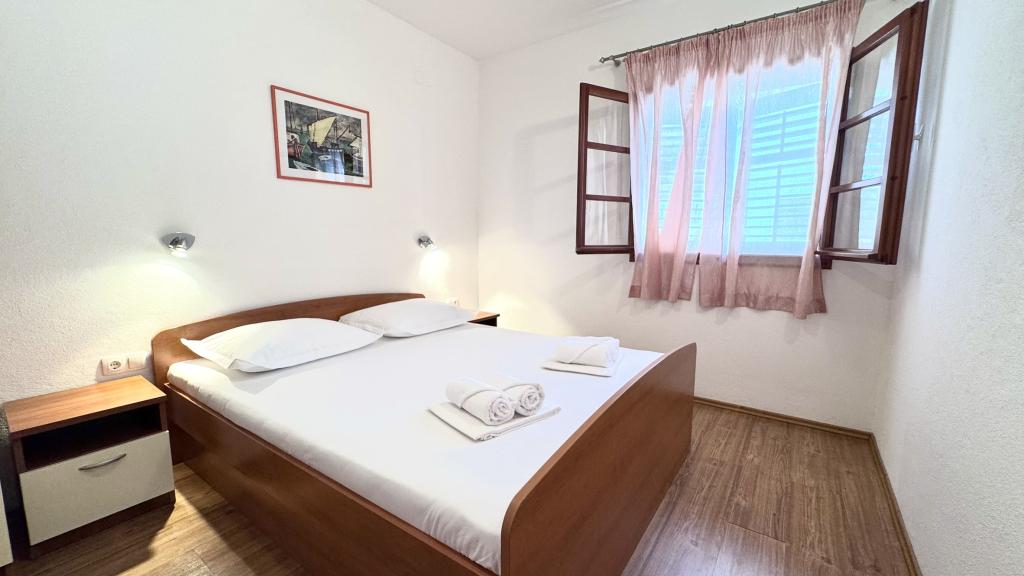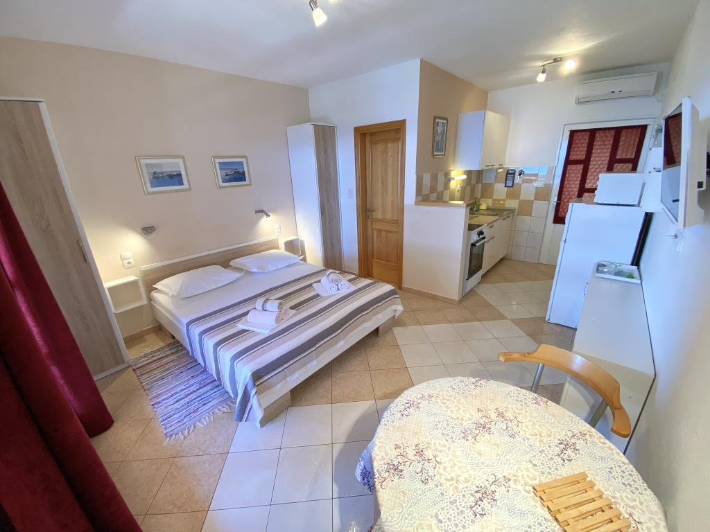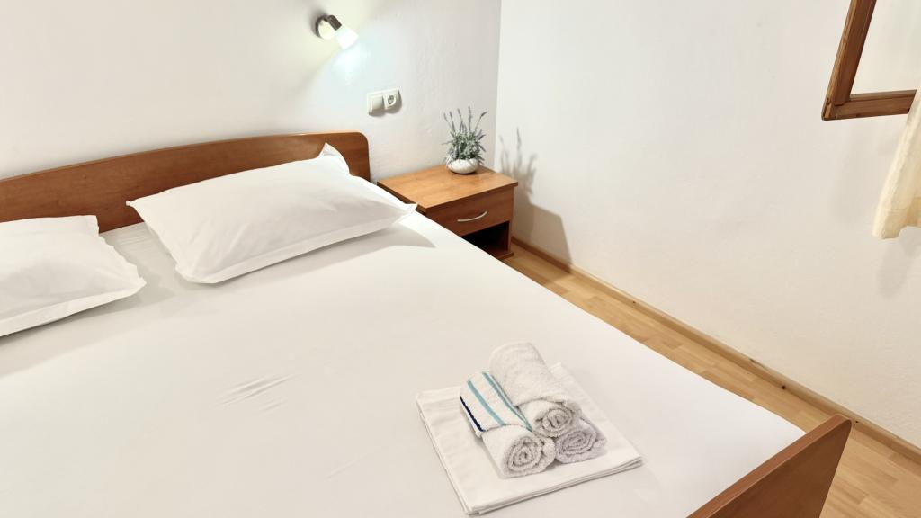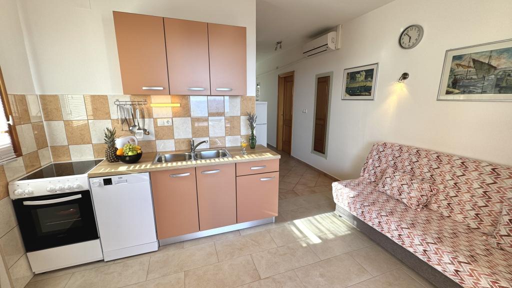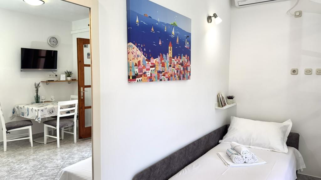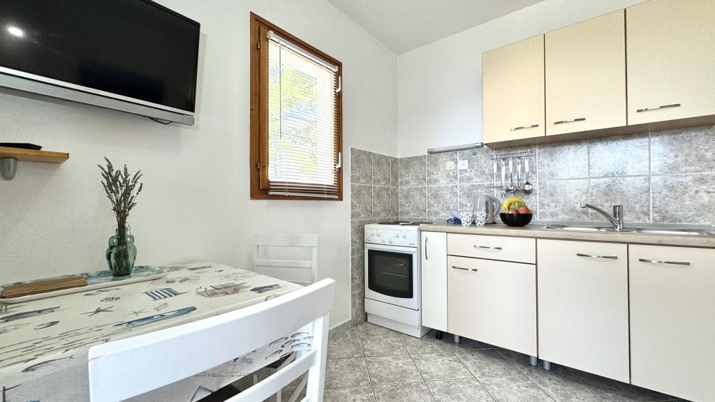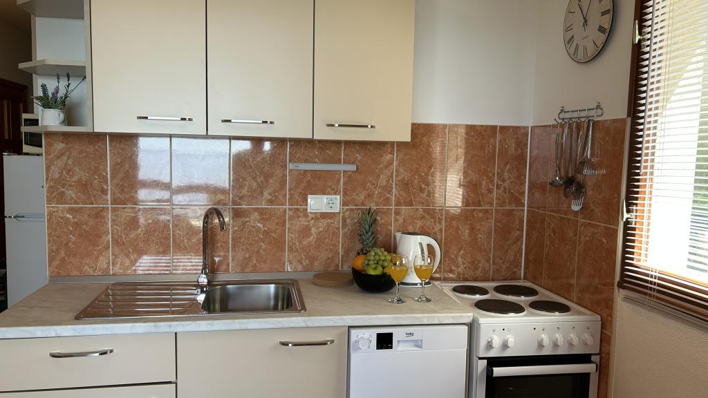 Appartement propre, confortable, air conditionné travail prix, barbecue et une table avec des bancs dans la cour. Pour prendre soin de tout et hôte utile. Très bien situé - 15 m de la mer - plateau en béton, 100 m de la plage de gravier, à côté d'un bon restaurant, à proximité de la boulangerie et délicieuse crème glacée. La possibilité de ponton d'amarrage. Nous y retournerons certainement.