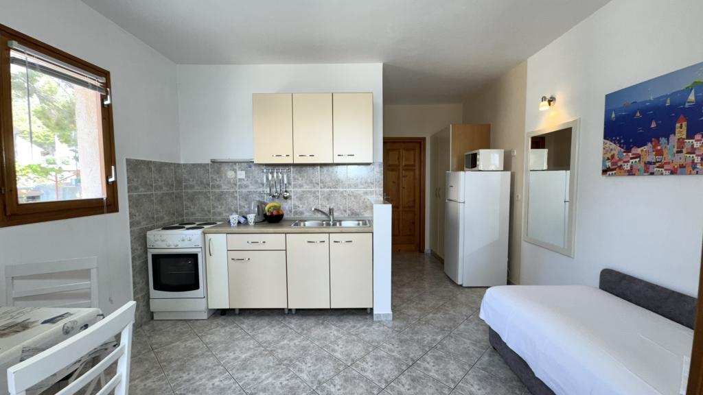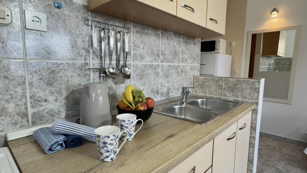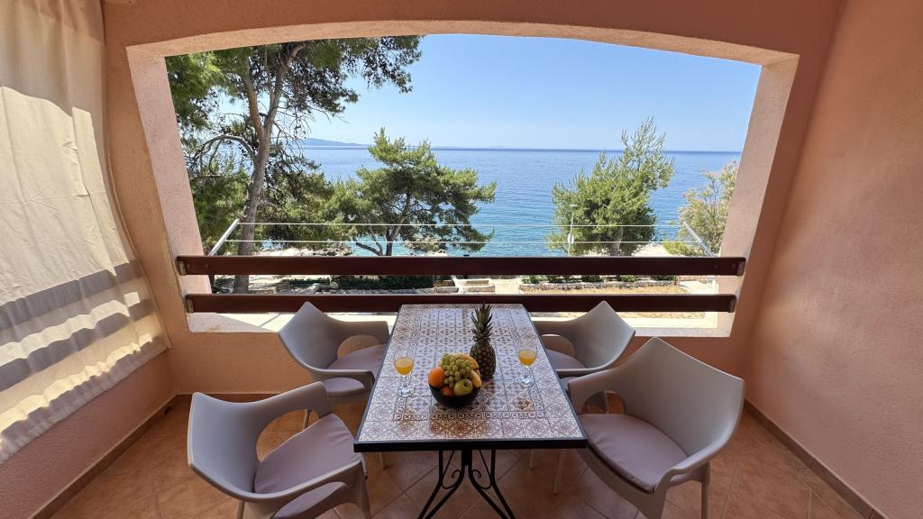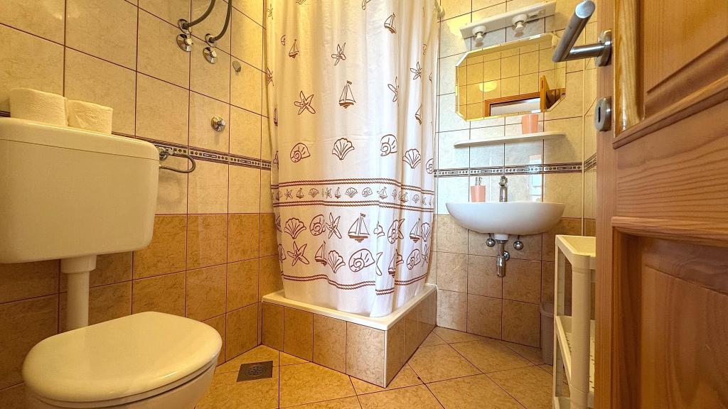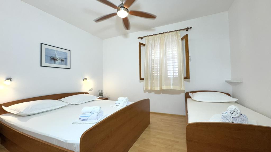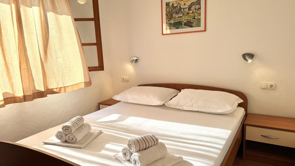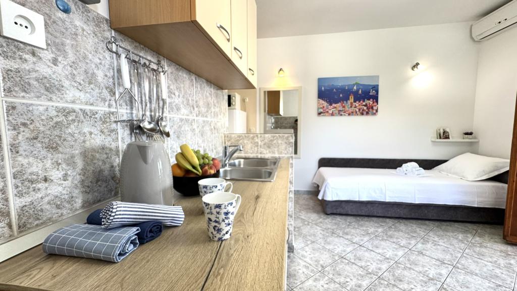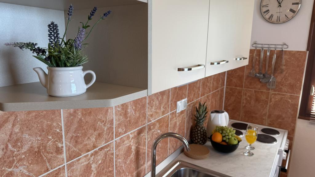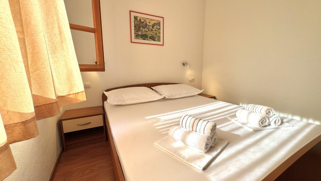 Appartement propre, confortable, air conditionné travail prix, barbecue et une table avec des bancs dans la cour. Pour prendre soin de tout et hôte utile. Très bien situé - 15 m de la mer - plateau en béton, 100 m de la plage de gravier, à côté d'un bon restaurant, à proximité de la boulangerie et délicieuse crème glacée. La possibilité de ponton d'amarrage. Nous y retournerons certainement.