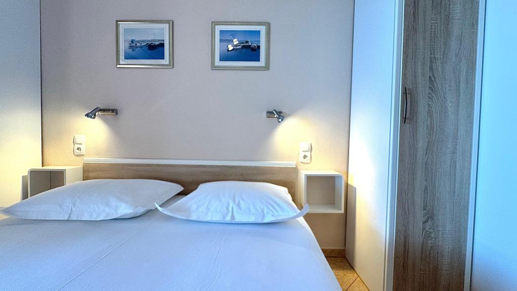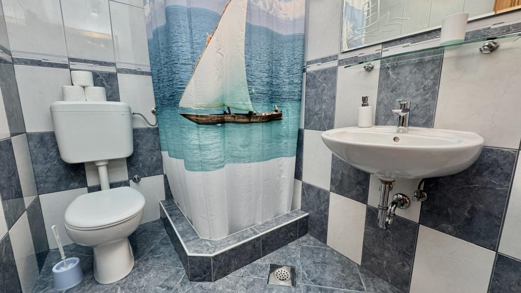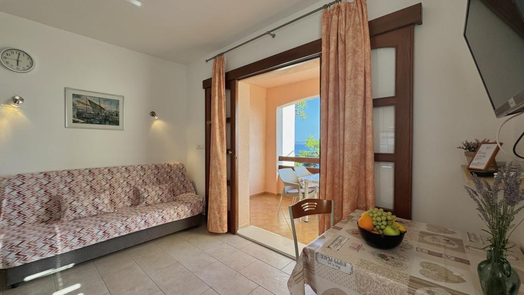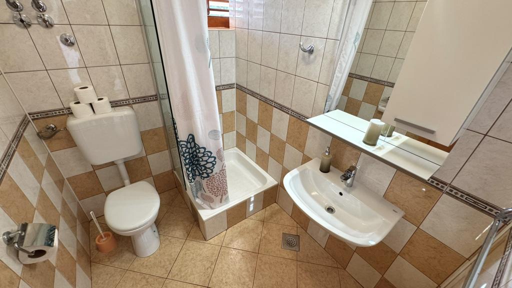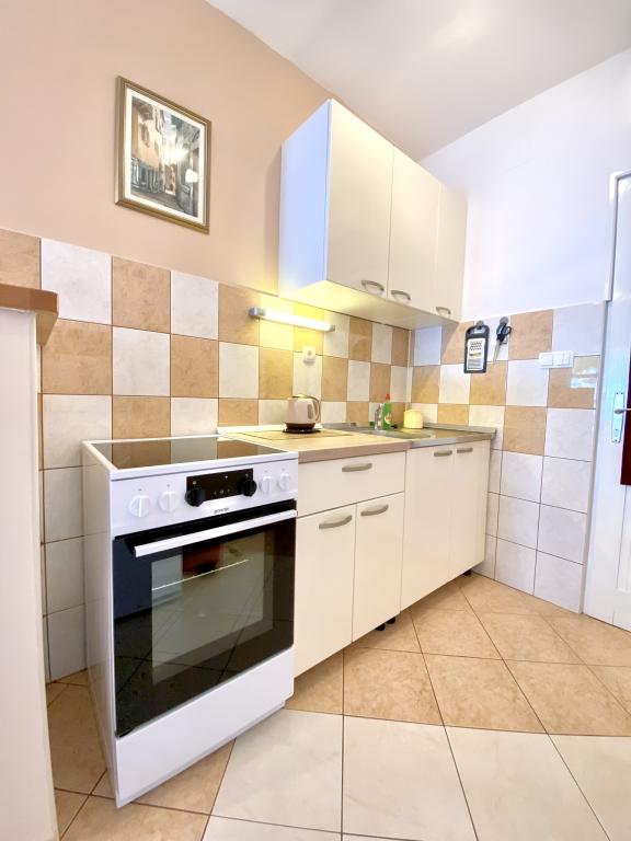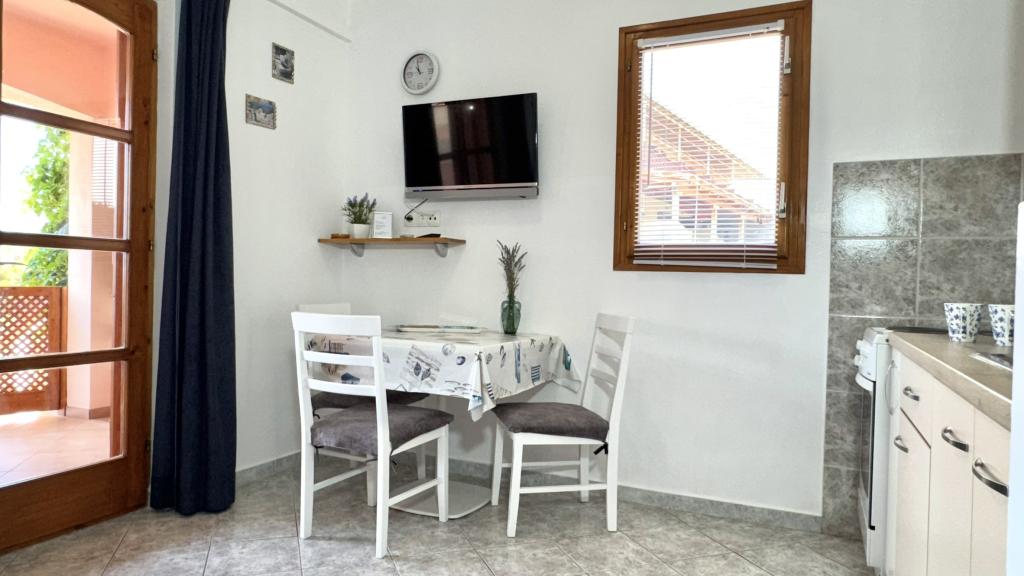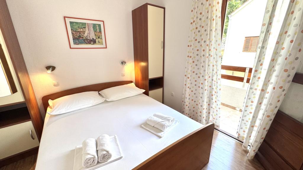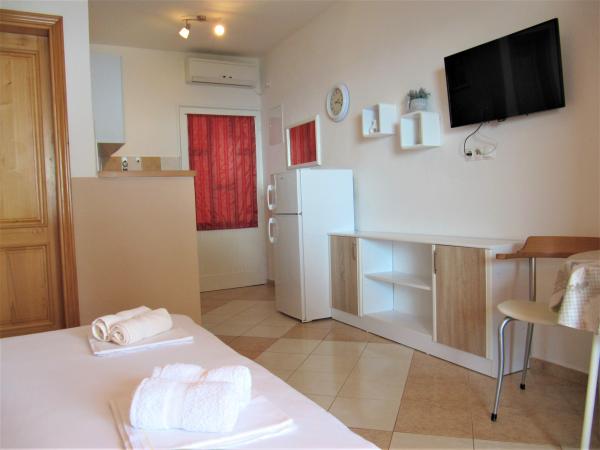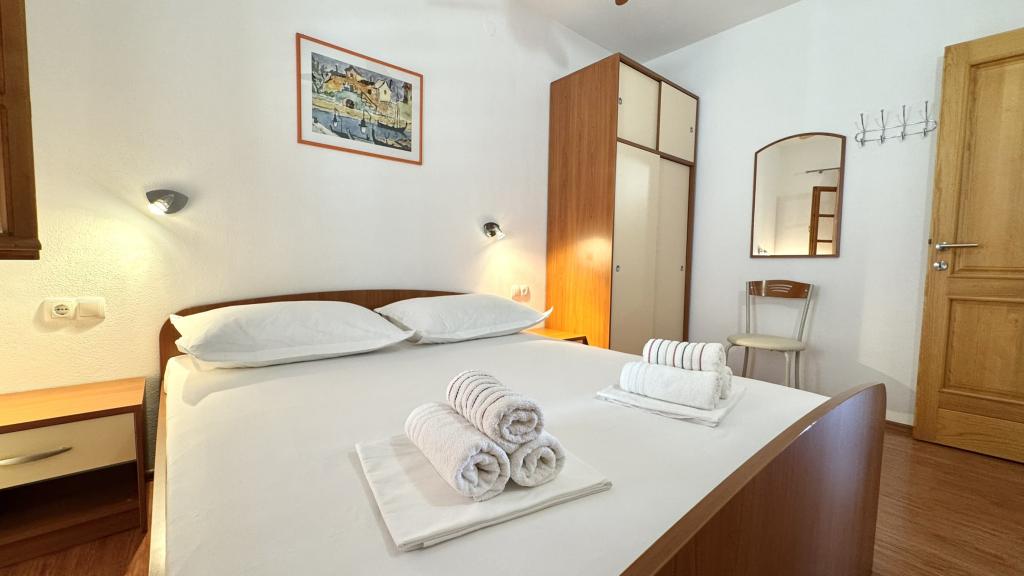 Appartement propre, confortable, air conditionné travail prix, barbecue et une table avec des bancs dans la cour. Pour prendre soin de tout et hôte utile. Très bien situé - 15 m de la mer - plateau en béton, 100 m de la plage de gravier, à côté d'un bon restaurant, à proximité de la boulangerie et délicieuse crème glacée. La possibilité de ponton d'amarrage. Nous y retournerons certainement.