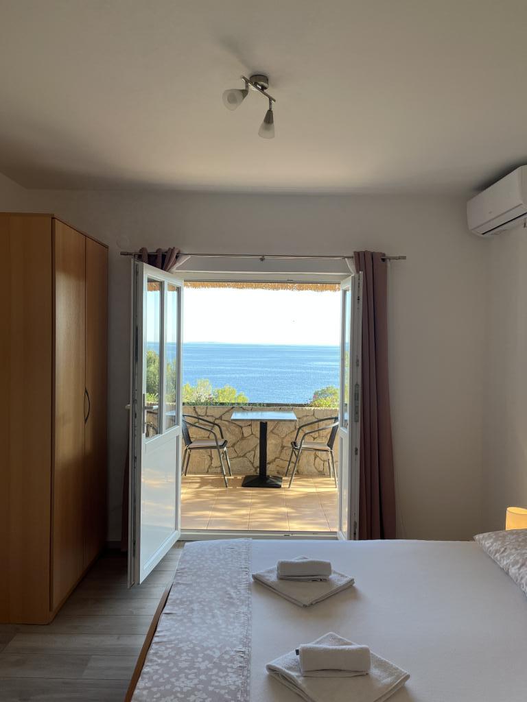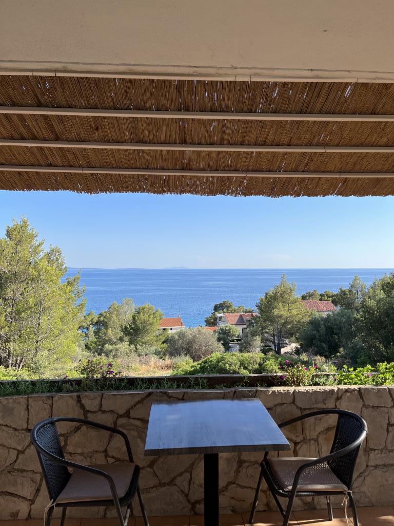 12 jours de festin.. belle vue depuis le balcon (mais aussi depuis le lit) sur la mer et les îles de Šćedro, Korčula, Sušac.. proche plages, galets, rocheux + ombre de pinède, mer cristalline, appartement entièrement équipé, nouvelle unité de climatisation, grand réfrigérateur, hôtes propres, bien rangés et très gentils, Mme Nataša et M. Toni, merci pour le délicieux dîner, tout le meilleur pour vous et les filles... et "notre" Loki