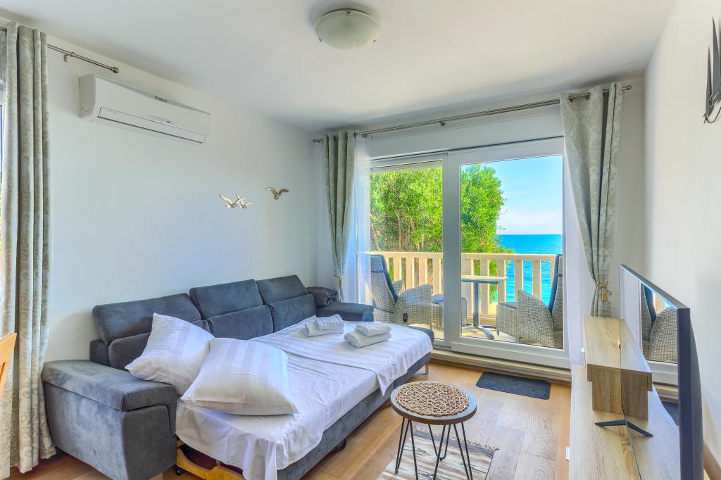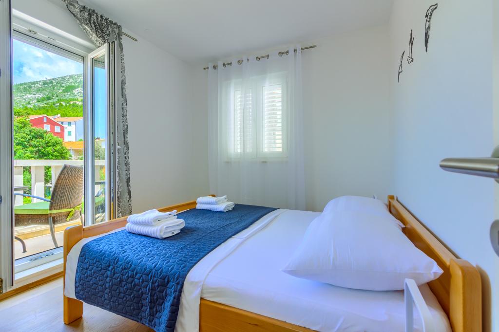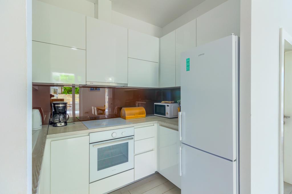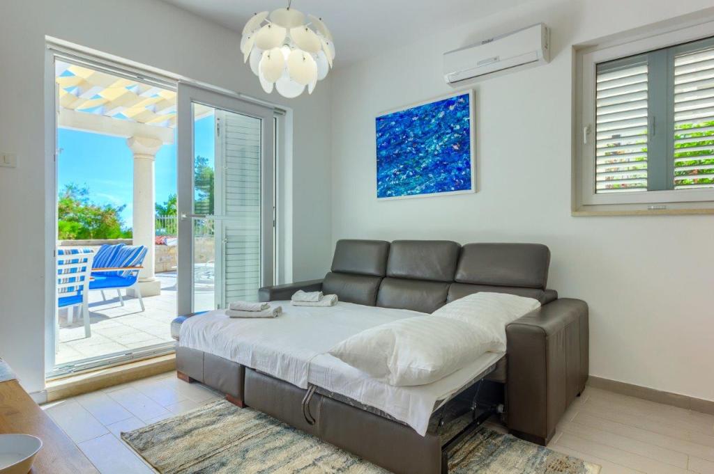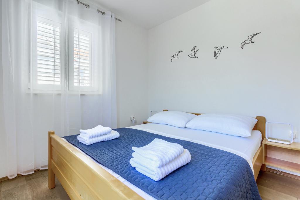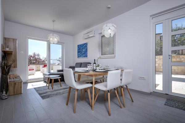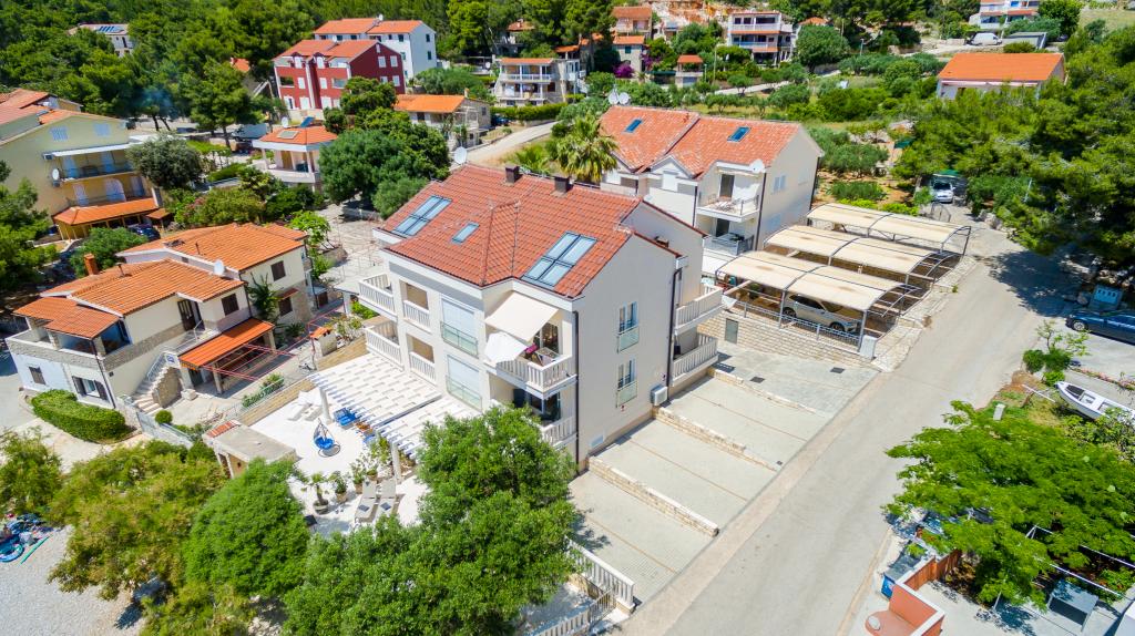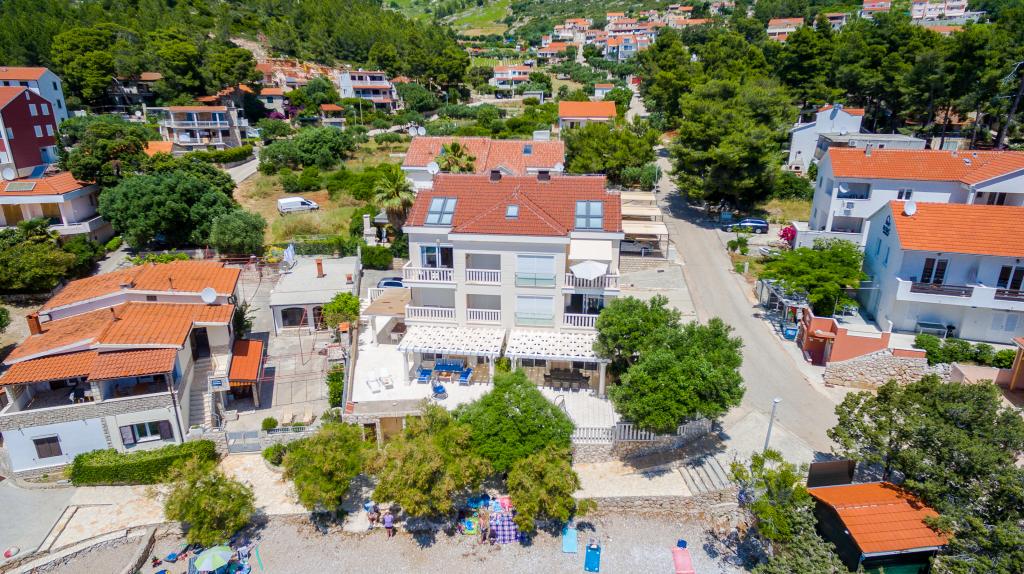 Des appartements nouvellement construits et équipés de façon moderne sont situés juste à côté de la plage dans la paisible ville d'Ivan Dolac. Les appartements Unit 1 et Unit 6 sont pour 4 personnes, ils se composent d'une chambre avec un lit double 160 x 200, une salle de bain avec douche, une cuisine et une salle à manger, et un salon avec SAT-TV et un canapé-lit, et une terrasse avec une belle vue sur la plage, la mer et les îles. Les appartements P1 et P2 sont pour 8 personnes, ils se composent de 3 chambres et un canapé-lit dans le salon, 2 salles de bain, une cuisine entièrement équipée avec un lave-vaisselle, une salle à manger et une table à manger sur la grande terrasse devant avec vue de la mer. L'appartement P2 a une superficie plus grande que P1, car il a une chambre entière et une salle de bain à l'étage inférieur. Un restaurant et des cafés sont à seulement 20 mètres et une boutique à 100 mètres de l'appartement. Bien que la maison soit située en plein centre de cette petite ville touristique, elle offre une tranquillité et une intimité totales car les clients sont principalement des familles avec de jeunes enfants qui profitent des belles plages et de la mer cristalline.