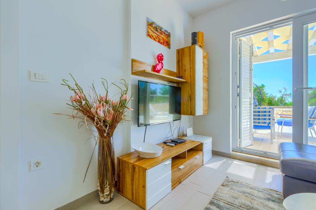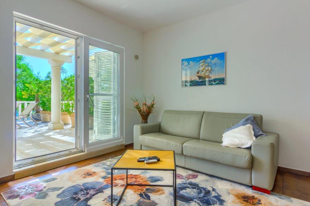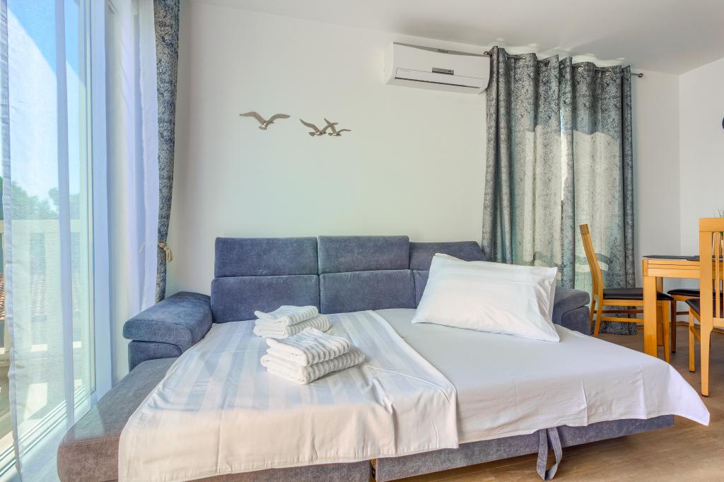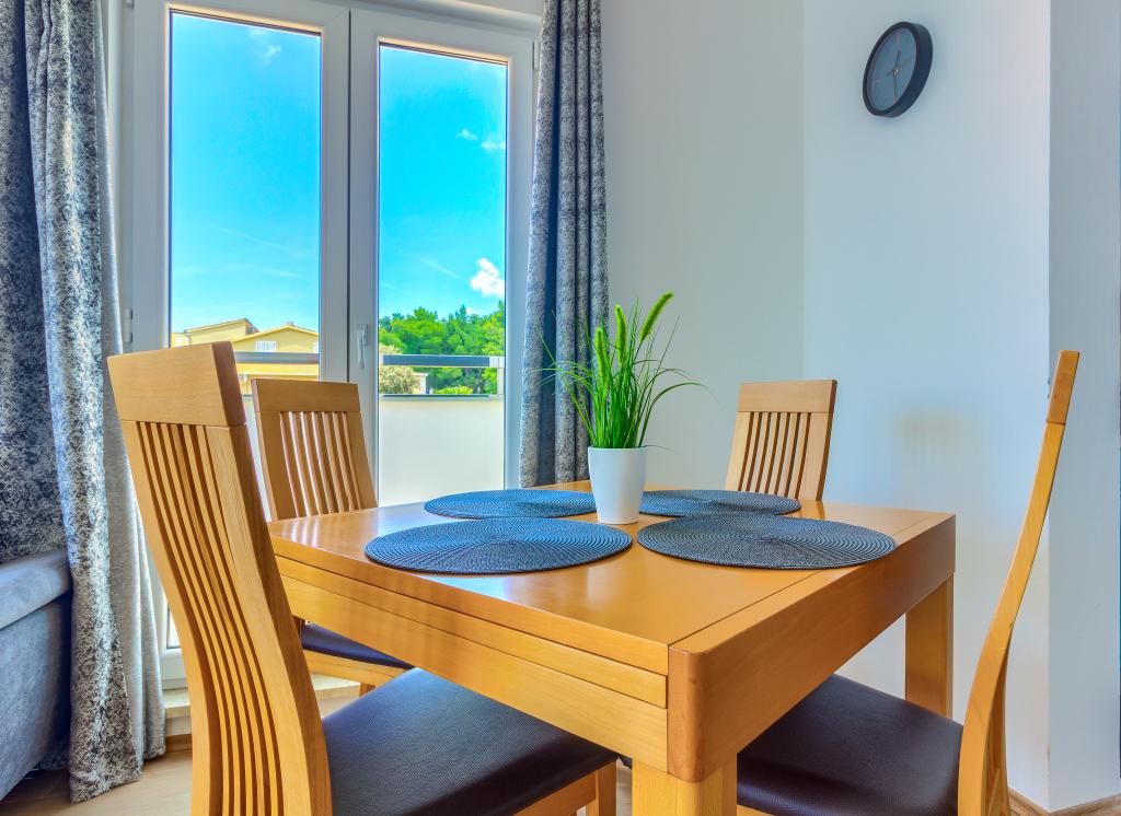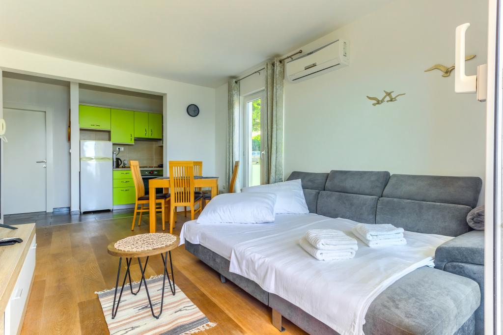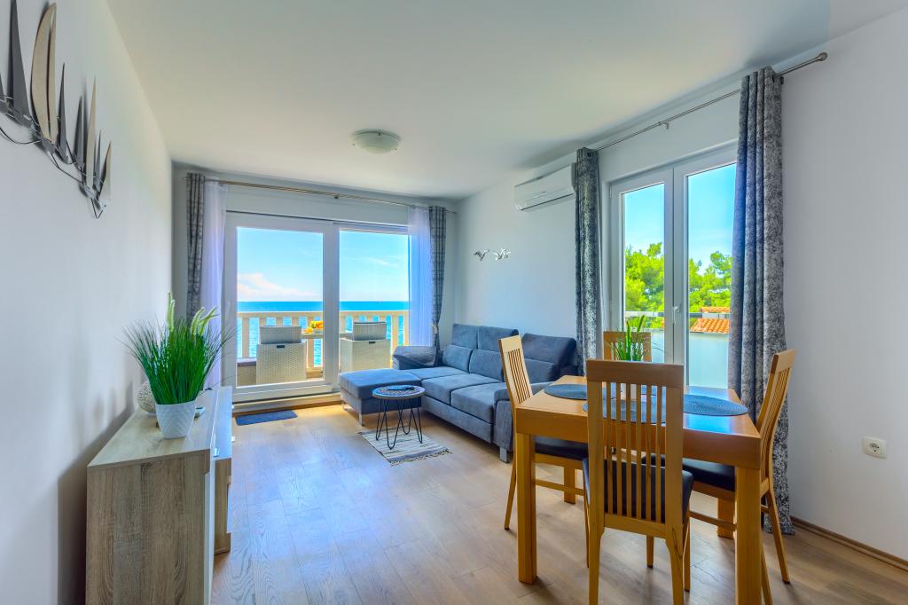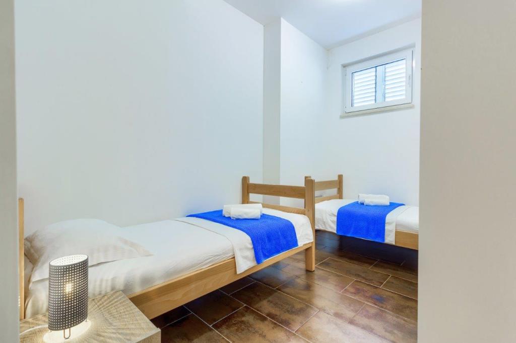 Des appartements nouvellement construits et équipés de façon moderne sont situés juste à côté de la plage dans la paisible ville d'Ivan Dolac. Les appartements Unit 1 et Unit 6 sont pour 4 personnes, ils se composent d'une chambre avec un lit double 160 x 200, une salle de bain avec douche, une cuisine et une salle à manger, et un salon avec SAT-TV et un canapé-lit, et une terrasse avec une belle vue sur la plage, la mer et les îles. Les appartements P1 et P2 sont pour 8 personnes, ils se composent de 3 chambres et un canapé-lit dans le salon, 2 salles de bain, une cuisine entièrement équipée avec un lave-vaisselle, une salle à manger et une table à manger sur la grande terrasse devant avec vue de la mer. L'appartement P2 a une superficie plus grande que P1, car il a une chambre entière et une salle de bain à l'étage inférieur. Un restaurant et des cafés sont à seulement 20 mètres et une boutique à 100 mètres de l'appartement. Bien que la maison soit située en plein centre de cette petite ville touristique, elle offre une tranquillité et une intimité totales car les clients sont principalement des familles avec de jeunes enfants qui profitent des belles plages et de la mer cristalline.