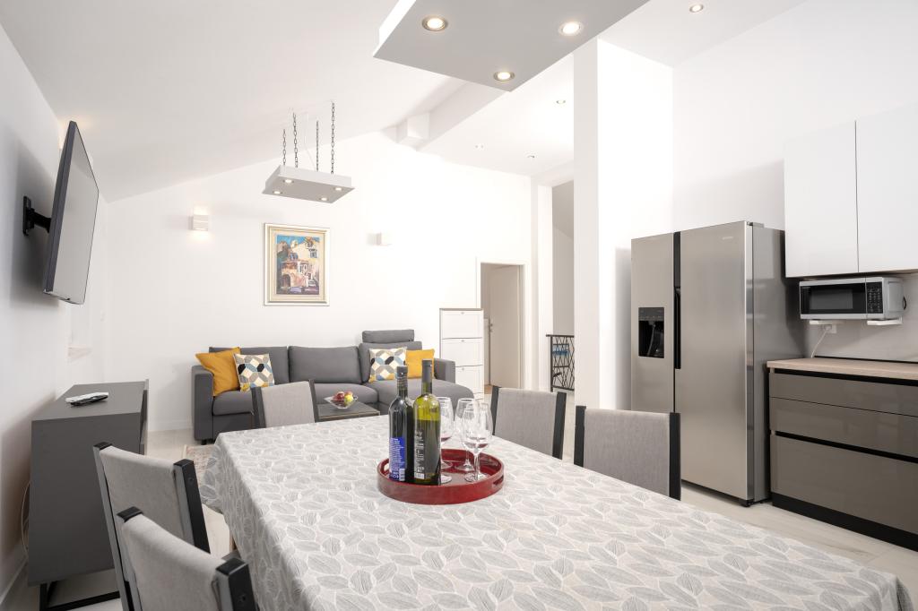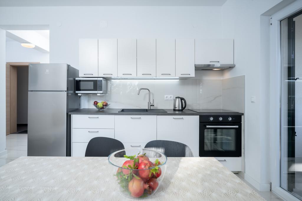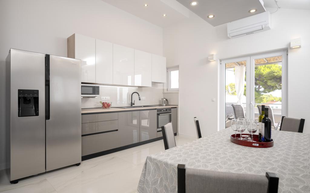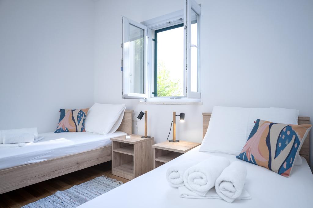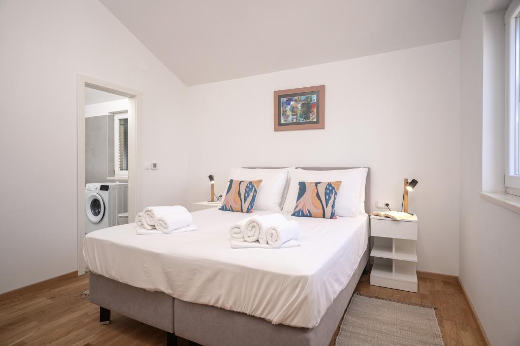 Après plus de 30 ans, j'ai de nouveau visité la côte croate avec ma femme et un autre couple. Nous étions à Ivan Dolac, une jolie petite ville idéale pour des vacances tranquilles et reposantes. Le soir, nous sommes allés à Jelsa, la vieille ville et Hvar. Nous avons particulièrement apprécié la vieille ville et Hvar, notamment leur architecture et la préservation des bâtiments anciens. Je tiens à souligner l'hospitalité et la gentillesse de nos voisins. Parlons maintenant de notre hébergement, qui est la raison de ce commentaire. Nous étions logés dans l'appartement « Matija », au rez-de-chaussée, d'une superficie de 50 m² pour 4 personnes. En un mot, l'appartement est parfait. Je ne sais pas par où commencer : l'appartement dispose de trois climatiseurs Mitsubishi (un dans chaque chambre et un dans le salon), de lits confortables, d'une grande terrasse meublée, d'une grande salle de bain (savoureuse et bien agencée), et que dire de la cuisine (grand réfrigérateur avec congélateur, cuisinière avec four et plaques à induction, four à micro-ondes, cafetière, bouilloire, plusieurs types de verres, mugs, assiettes, poêles, casseroles, épices, café, thé, papier aluminium…), parfaite. Dans le couloir, il y a même un lave-linge, de la lessive et de l'adoucissant, incroyable. Les appartements ont ouvert en 2023 et sont flambant neufs. Je tiens également à souligner que les appartements sont aménagés avec style et goût, et qu'un soin particulier a été apporté à la qualité des éléments intégrés, ainsi qu'au mobilier lui-même. Enfin, je tiens à féliciter notre hôte Stjepko (un vieux loup de mer), très agréable, discret et hospitalier. Nous avons reçu du vin blanc maison de Stjepko, ainsi que du raisin maison de son vignoble. Merci Stjepko pour tout. Je recommande vivement cet appartement.