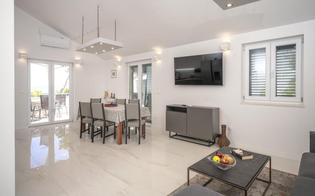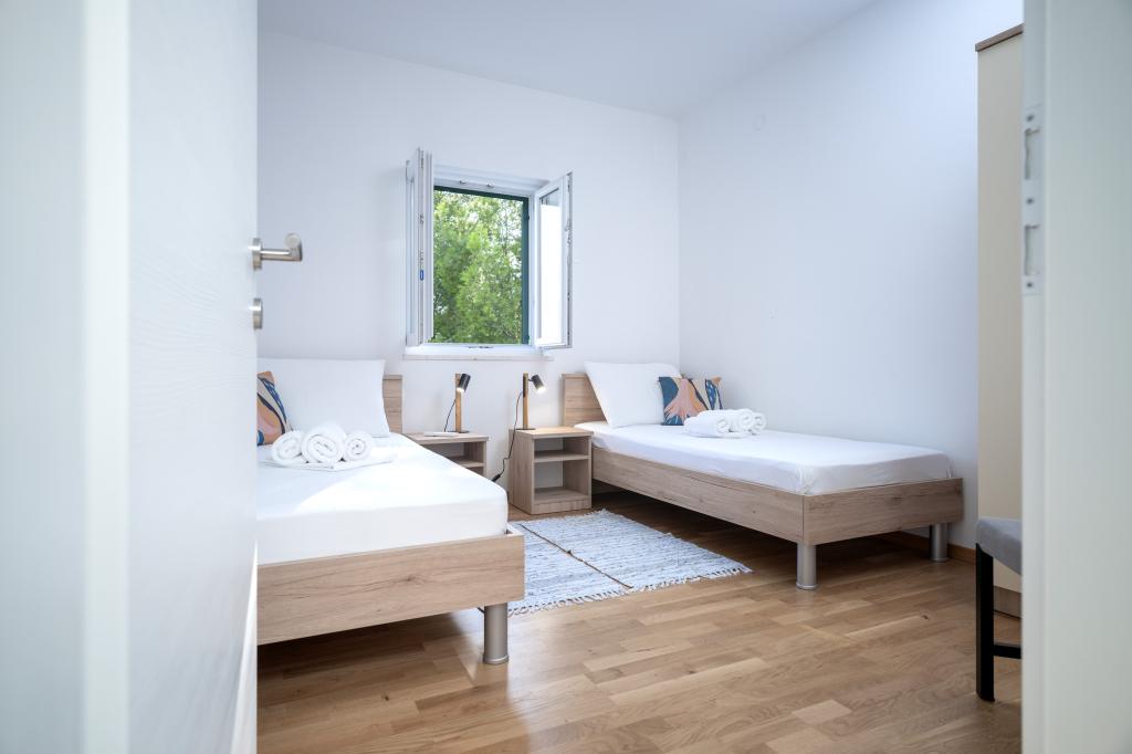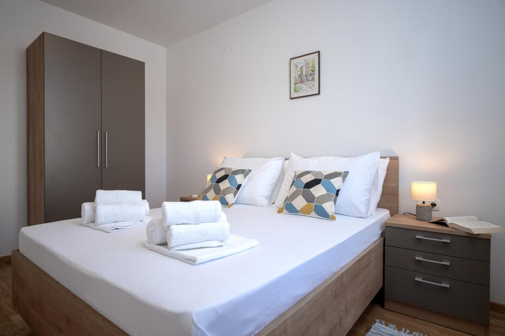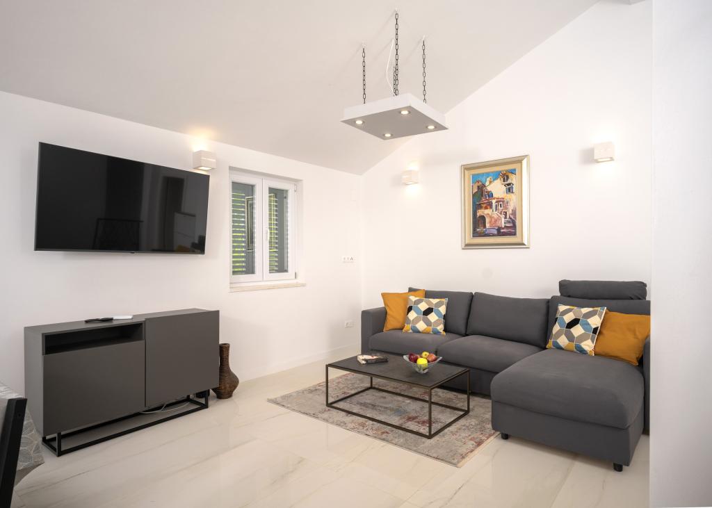 Après plus de 30 ans, j'ai de nouveau visité la côte croate avec ma femme et un autre couple. Nous étions à Ivan Dolac, une jolie petite ville idéale pour des vacances tranquilles et reposantes. Le soir, nous sommes allés à Jelsa, la vieille ville et Hvar. Nous avons particulièrement apprécié la vieille ville et Hvar, notamment leur architecture et la préservation des bâtiments anciens. Je tiens à souligner l'hospitalité et la gentillesse de nos voisins. Parlons maintenant de notre hébergement, qui est la raison de ce commentaire. Nous étions logés dans l'appartement « Matija », au rez-de-chaussée, d'une superficie de 50 m² pour 4 personnes. En un mot, l'appartement est parfait. Je ne sais pas par où commencer : l'appartement dispose de trois climatiseurs Mitsubishi (un dans chaque chambre et un dans le salon), de lits confortables, d'une grande terrasse meublée, d'une grande salle de bain (savoureuse et bien agencée), et que dire de la cuisine (grand réfrigérateur avec congélateur, cuisinière avec four et plaques à induction, four à micro-ondes, cafetière, bouilloire, plusieurs types de verres, mugs, assiettes, poêles, casseroles, épices, café, thé, papier aluminium…), parfaite. Dans le couloir, il y a même un lave-linge, de la lessive et de l'adoucissant, incroyable. Les appartements ont ouvert en 2023 et sont flambant neufs. Je tiens également à souligner que les appartements sont aménagés avec style et goût, et qu'un soin particulier a été apporté à la qualité des éléments intégrés, ainsi qu'au mobilier lui-même. Enfin, je tiens à féliciter notre hôte Stjepko (un vieux loup de mer), très agréable, discret et hospitalier. Nous avons reçu du vin blanc maison de Stjepko, ainsi que du raisin maison de son vignoble. Merci Stjepko pour tout. Je recommande vivement cet appartement.