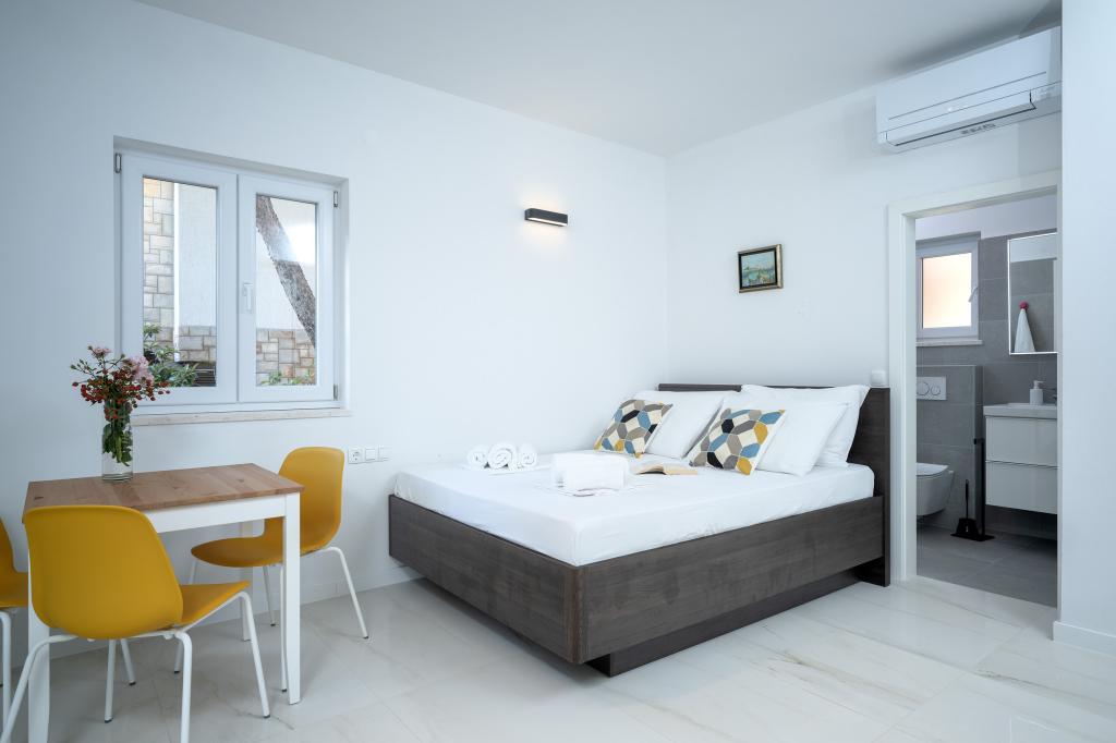 Que dire, sinon qu'en un mot, c'est parfait ! L'appartement est magnifique, propre, la terrasse est assez grande pour deux. On nous a accueillis avec de l'eau fraîche et des ustensiles de cuisine de base. Les propriétaires sont gentils et prêts à nous aider à découvrir l'île. La plage est superbe et ombragée. L'endroit est petit, avec une boutique, une boulangerie et un stand de fruits et légumes. Il y a un restaurant et un café sur la plage. Hvar est à environ 30 km, Jelsa 8, Stari Grad 15. Les plages des environs valent également le détour, toutes plus belles les unes que les autres. Nous avons adoré. Nos recommandations.