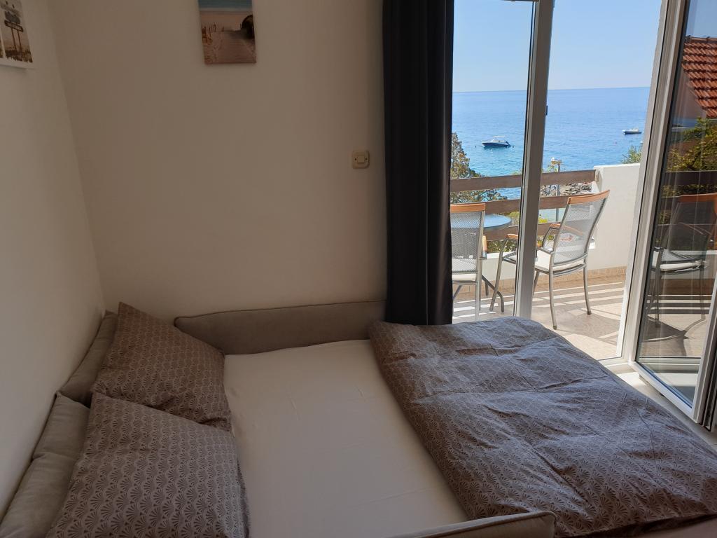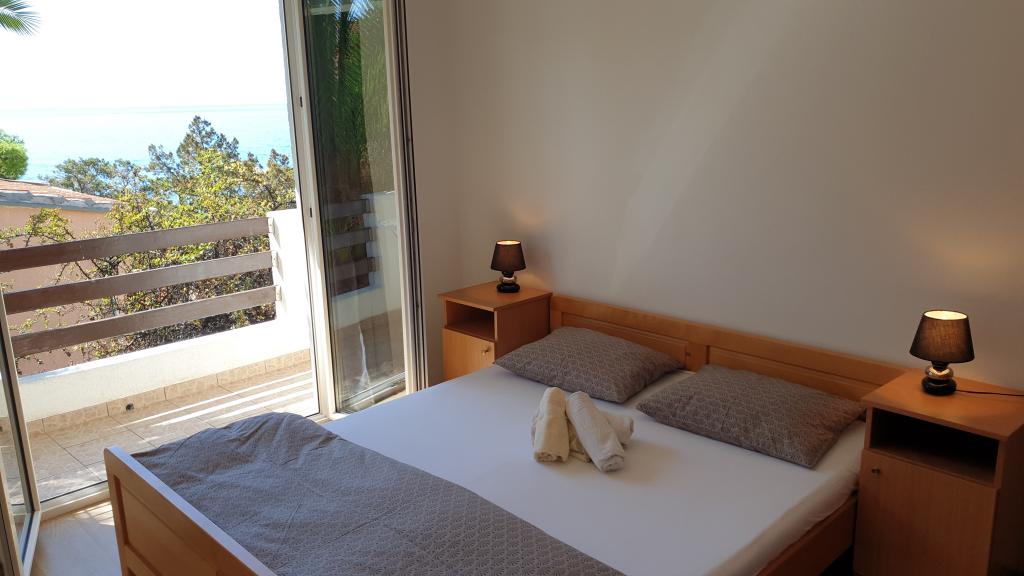 Les appartements avec une belle vue sur la mer sont situés juste à côté de la plage d'Ivan Dolac. C'est aussi le centre même d'une ville touristique tranquille idéale pour les familles avec enfants en raison de la proximité de la plage, à seulement 10 mètres de la maison, boulangerie à 40 m, magasin à 100 m, café et restaurant à 20 m. de la maison il y a notre boutique de souvenirs et notre caviste. - Le petit appartement A3 se compose d'une cuisine avec une table à manger et un canapé-lit, une chambre avec un lit double, une salle de bain avec douche, un hall d'entrée et une terrasse. Une belle vue sur la mer et la plage peut être vue depuis presque tout l'appartement. L'appartement est situé au 1er étage de la maison, tout comme l'appartement. A4. - Le grand appartement A4 se compose d'une cuisine avec une table à manger et un canapé-lit, de deux chambres avec un lit double, d'une salle de bain avec douche, d'un hall d'entrée et d'une terrasse. Il y a une vue sur la mer depuis la cuisine, une chambre et la terrasse.