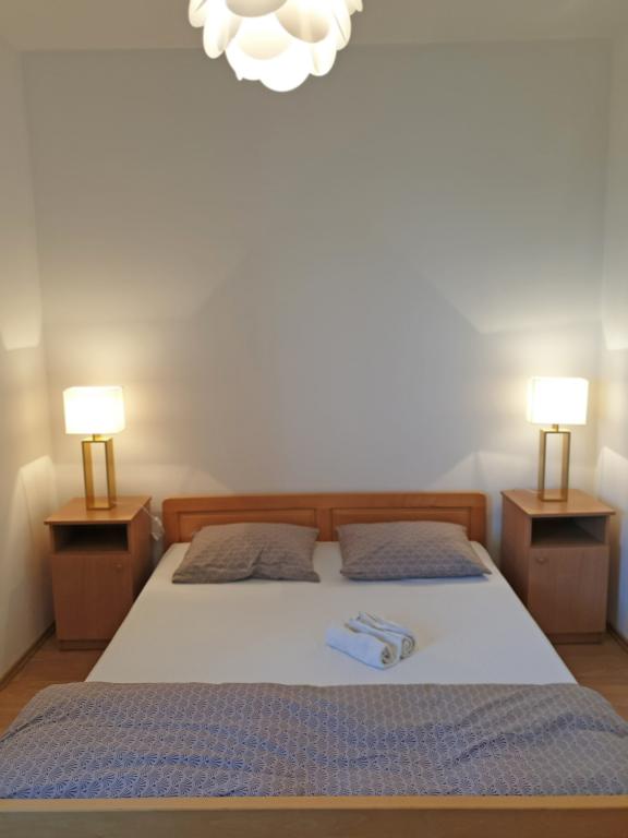 Taxe de sejour est inclus dans le prix.Équipements et électroménagers supplémentaires inclus dans le prix : - climatisation, TV satellite, internet, sèche-cheveux. - le parking est gratuit, il est situé derrière la maison à l'ombre. - les draps sont changés 1 fois par semaine, les serviettes 3 fois par semaine si nécessaire et plus souvent La cuisine est équipée d'un four, réfrigérateur, congélateur, bouilloire, batteur à main. Les chambres disposent de lits en bois de qualité (160x200cm), de tables de chevet, d'un bureau et d'une armoire. Des lits supplémentaires sont dans la cuisine - canapé-lit (140x200) cm. Nous offrons à nos clients une remise d'un montant de 10% sur nos produits nationaux dans notre magasin situé dans la maison.