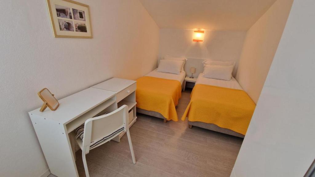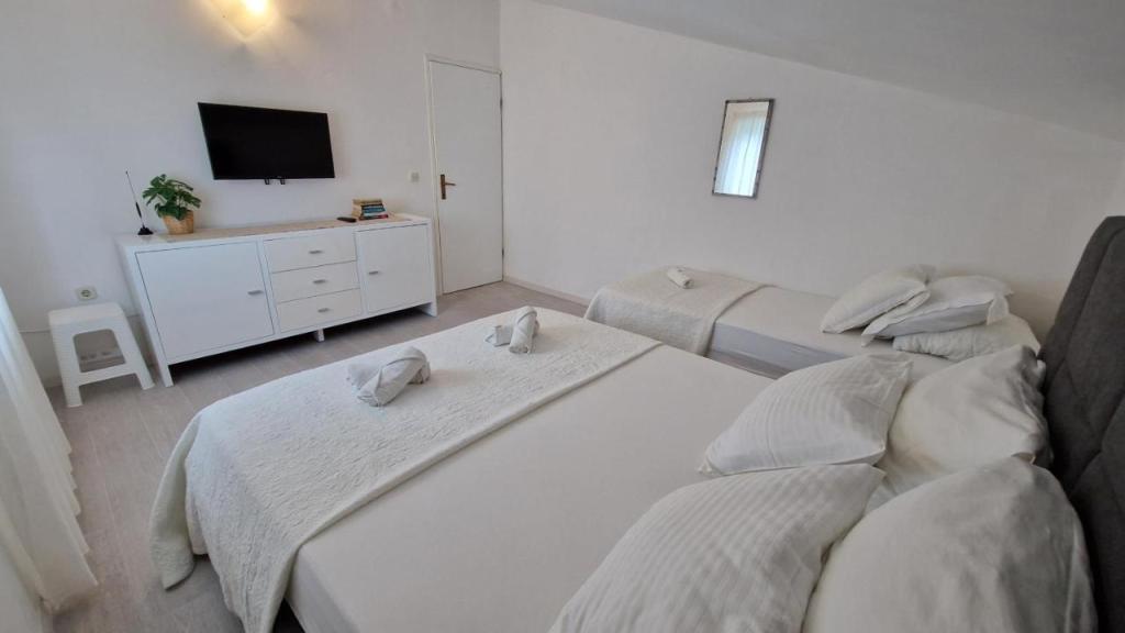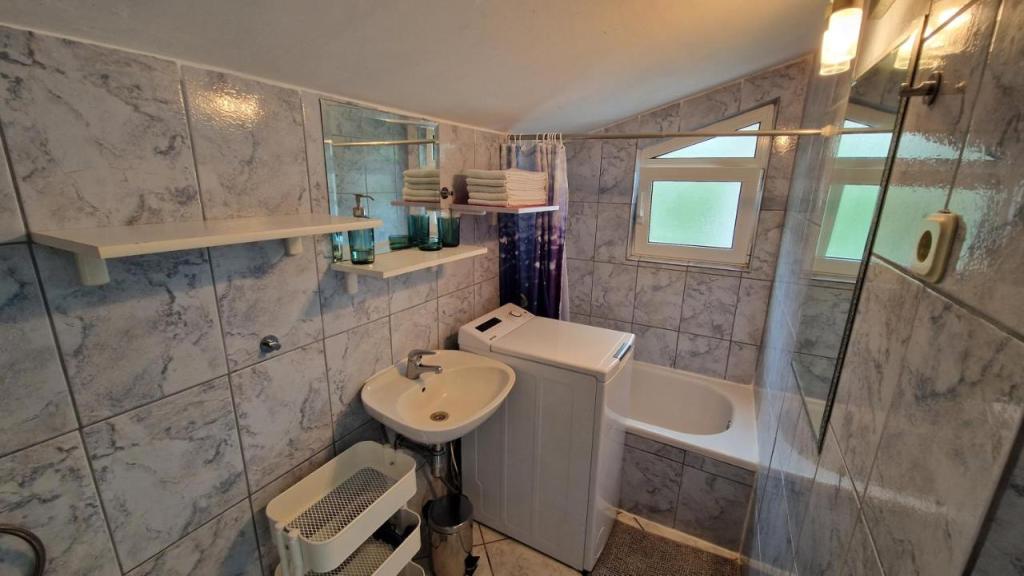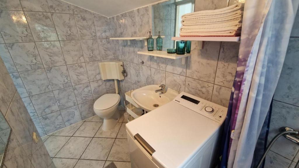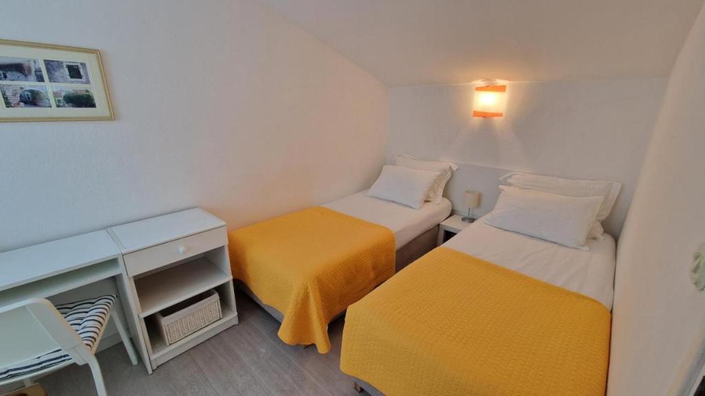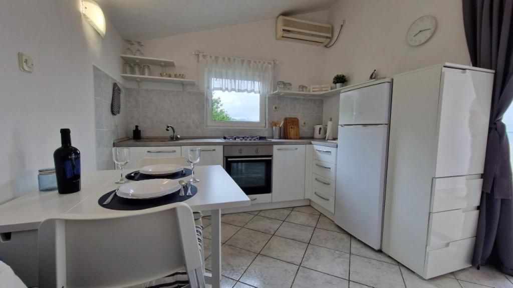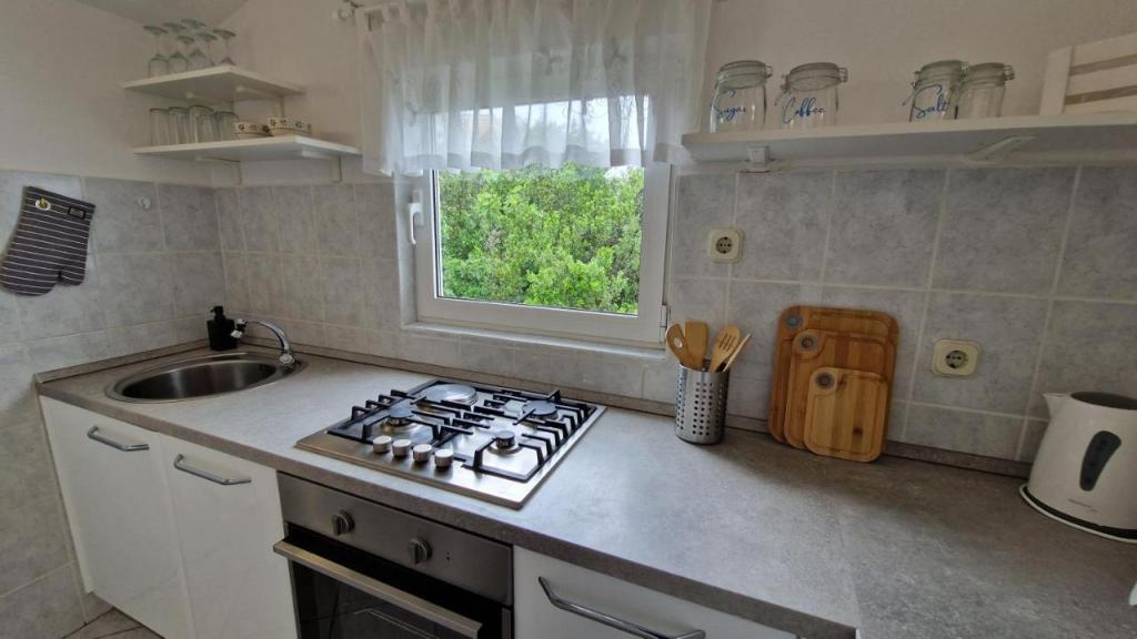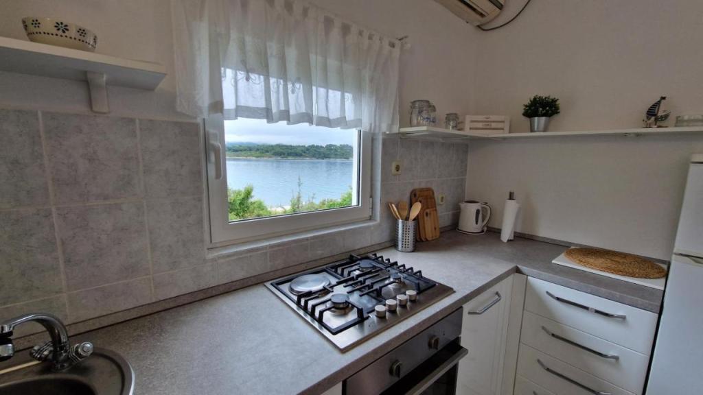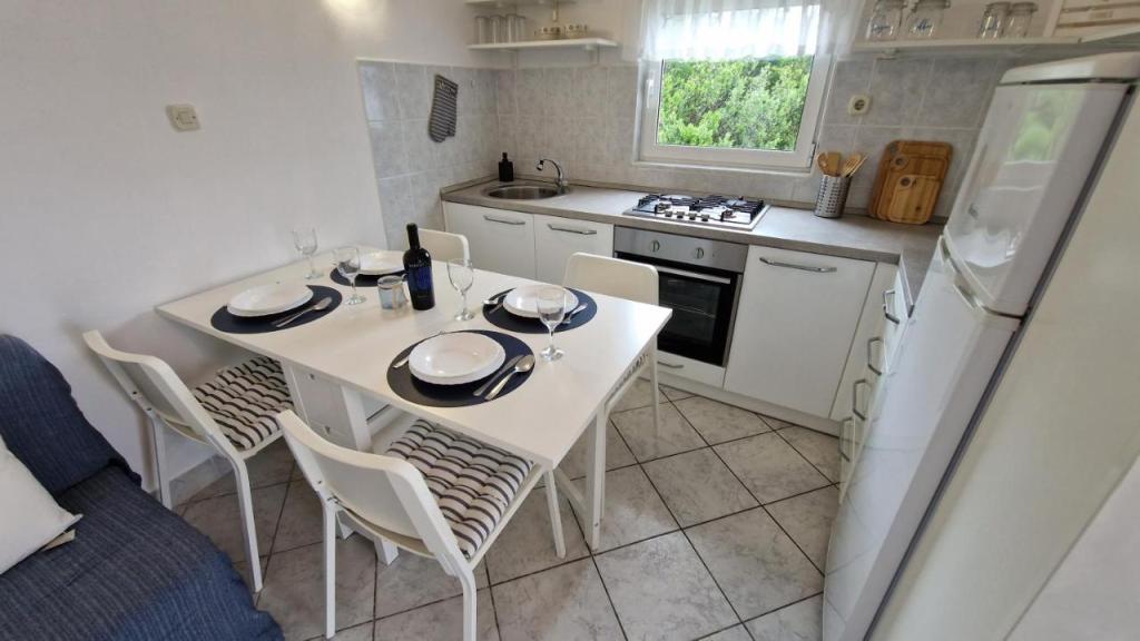 Passez des vacances inoubliables à seulement 5 mètres de la mer, dans la paisible baie de Knež, sur l'île d'Iž. Ce confortable appartement de deux chambres dispose d'une terrasse spacieuse offrant une vue imprenable sur la mer et l'archipel de Zadar – idéale pour savourer un café le matin ou se détendre en soirée. Climatisé et entièrement équipé pour un séjour tout confort, l'appartement comprend une cuisine avec tous les ustensiles nécessaires, un lave-linge, une connexion Wi-Fi gratuite, une télévision, un bureau, un salon confortable et une salle de bains privative. Un parking gratuit est également disponible à proximité. Un barbecue est à votre disposition sur la terrasse arrière. Situé dans un environnement calme et reposant, cet appartement est le choix idéal pour les familles et tous ceux qui recherchent des vacances paisibles au bord d'une mer cristalline.