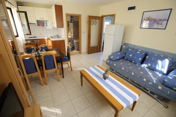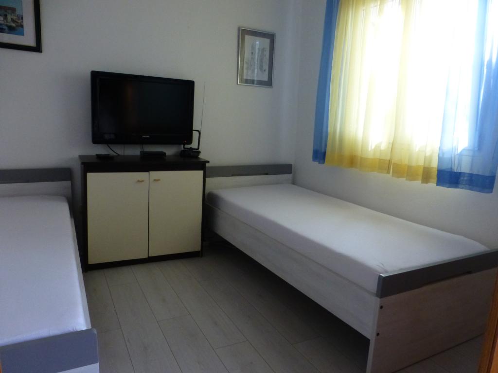 Appartement comme une maison d'habitation séparée dans un quartier calme de Mali Iž, à 200 mètres du quai du traversier avec place de parking séparée. L'appartement du rez-de-chaussée dispose d'une salle de séjour avec cuisine et salle de bains, qui peut être utilisé comme une pièce séparée ou un studio, et au rez-de-chaussée il y a 2 chambres et une salle de bains. Une cour séparée avec un barbecue pour une journée complète. Distance de la plage est à 5 minutes à pied. Place sécurisée pour bateau et parking pour les sentiers, internet wifi.