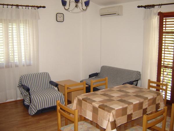 La maison est située dans un endroit calme et isolé à seulement 150 mètres de la mer, du centre et du magasin. Par la porte de la maison est l'accès en voiture et un parking est prévu dans la cour. Des appartements modernes avec toutes les commodités nécessaires pour un séjour agréable et des vacances agréables. Il y a trois appartements séparés et une plus grande entreprise. Les deux appartements sont composés de deux pièces avec cuisine et salon (A-1 et A-2), tandis que le troisième (A-3) est un appartement à trois lits. Pour votre véhicule, stationnement gratuit dans la cour.