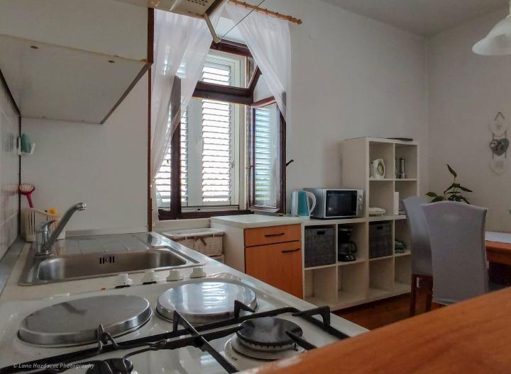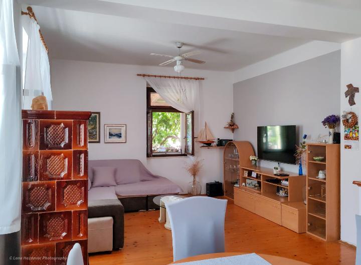 La maison Branka est une ancienne maison en pierre rénovée, elle est confortable et confortable pour une famille de cinq personnes. La maison est un bâtiment d'un étage, dans la partie supérieure il y a trois chambres confortables et une toilette avec lavabo, au rez-de-chaussée il y a une cuisine avec une salle à manger, un salon et une salle de bain. Devant l'entrée de la maison se trouve un parking privé et une grande terrasse - cour - et cheminée - grill -. Les plages de l'île d'Iž sont rocheuses, sablonneuses et bétonnées. Si le client a un bateau, le propriétaire de la maison peut fournir un amarrage gratuit, le client ne paie pas la taxe de séjour dans le prix de la maison.