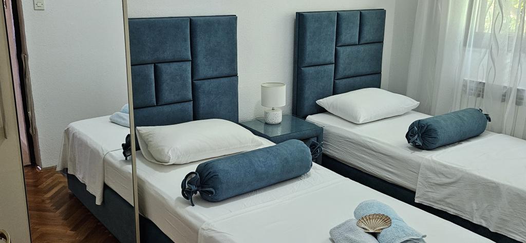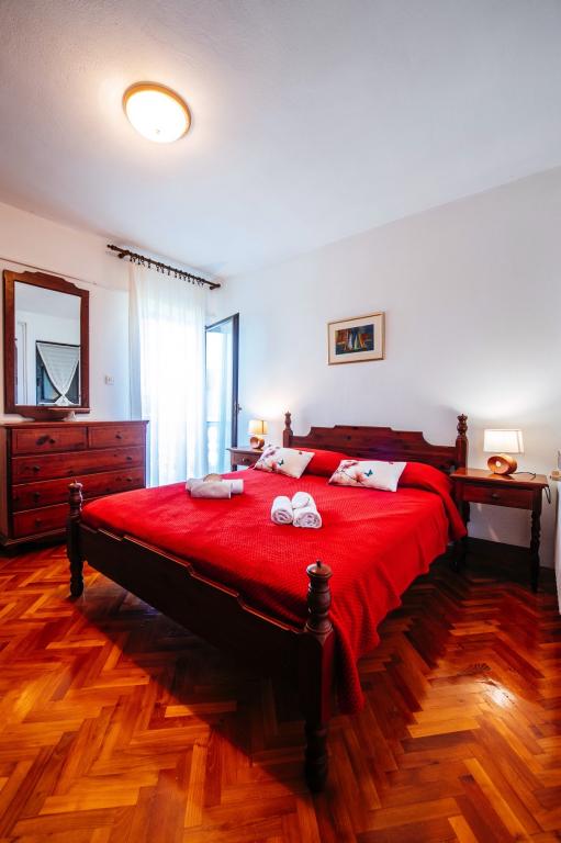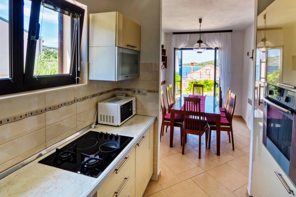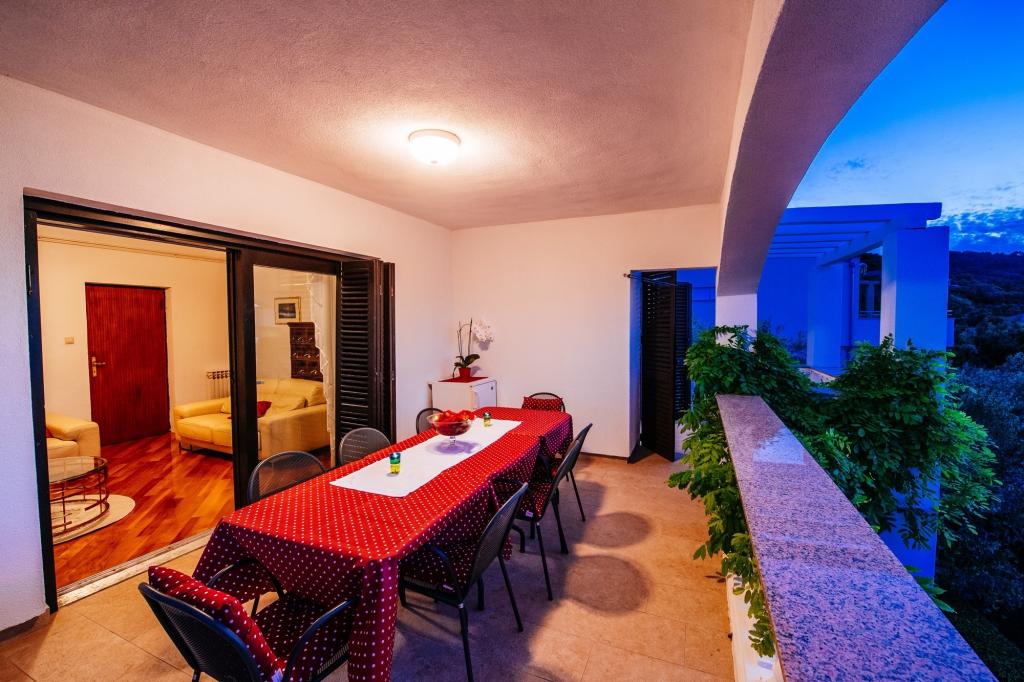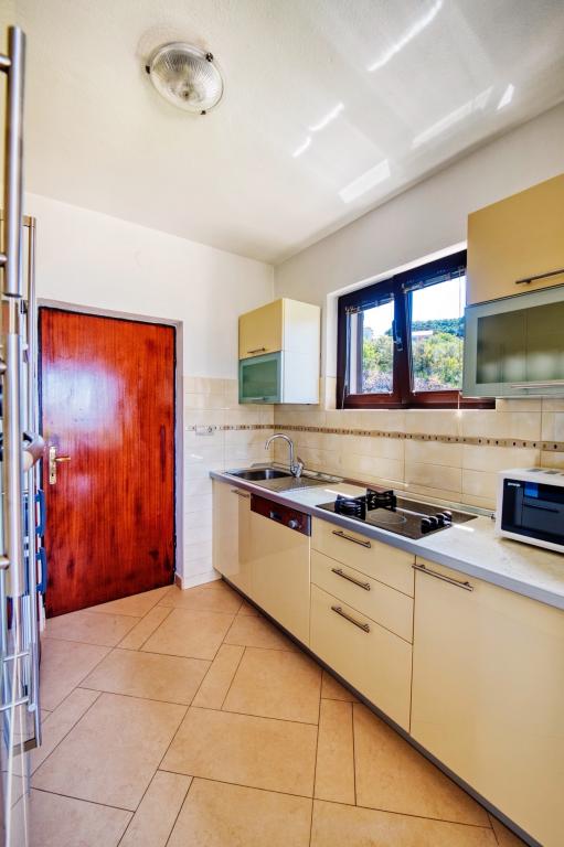 La maison familiale Malinina est située à Mali Iž, très proche de la mer. Dans la maison il y a une taverne séparée avec barbecue, table et chaises et un garage. Deux terrasses, avec vue sur la mer, Il se compose de 2 étages. À l'étage inférieur: 1 chambre avec 1 lit (90 cm, longueur 190 cm), 1 franc. lit (160 cm, longueur 200 cm). Salle à manger. Cuisine ouverte (4 plaques de cuisson, four, congélateur). Bain / WC. À l'étage supérieur: (escalier extérieur) séjour / salle à manger 45 m2 avec TV (satellite). destinataire. Sortez sur la terrasse. 1 chambre avec 1 franc. lit (160 cm, longueur 200 cm). Sortez sur le balcon. 2 chambres avec 2 lits (90 cm, longueur 190 cm). Cuisine ouverte (4 plaques de cuisson, four, lave-vaisselle, congélateur). Douche / WC. Parking près de la maison sur le terrain, les animaux ne sont pas admis.