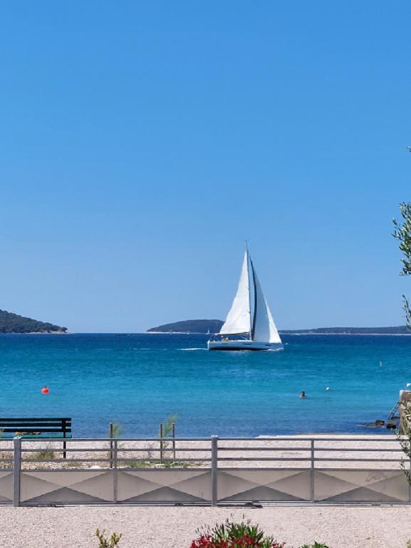 Appartement avec vue magnifique sur la mer depuis la terrasse. La villa est un seul appartement et offre la paix et la tranquillité, les conditions pour le vrai repos. Situé à l'extrémité de la plage, peu de gens vous donnent la paix. Appartement propre, bien équipé, très sympathiques propriétaires. Pour ceux qui veulent explorer, à 100 km nous Zadar, Split, Trogir et Sibenik plus proche de l'endroit où vous pouvez aller tous les soirs pour le café et le vin. Pour ceux qui veulent entrer en contact avec l'atmosphère de la station et un plus grand groupe de touristes pub environ 500 m. Prochaines vacances ici, nous voulons trop dépenser.