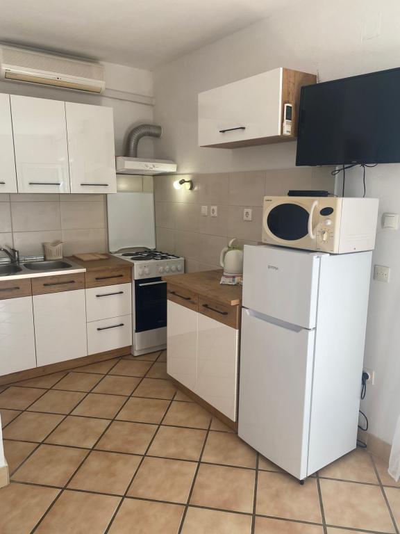 Les appartements Lazaneo sont situés dans une maison familiale à 300 mètres du centre et de la mer. Il se trouve à 500 mètres de la plage la plus proche. La maison dispose de 2 appartements. Au rez-de-chaussée de la maison se trouve un appartement pour deux personnes. Il se compose d'une chambre, d'une salle de bain avec WC, d'une cuisine et d'une spacieuse terrasse. L'appartement dispose d'une cheminée intérieure et extérieure, d'une connexion Wi-Fi, d'une télévision et d'une place de parking sécurisée devant la maison. Au premier étage de la maison familiale se trouve un appartement pour 4 personnes. Il se compose de deux chambres, d'une cuisine avec salle à manger, d'une salle de bain avec WC et d'un balcon. L'appartement dispose d'une télévision, d'une connexion Wi-Fi, de la climatisation et d'une place de parking sécurisée devant la maison. Les animaux de compagnie sont les bienvenus !