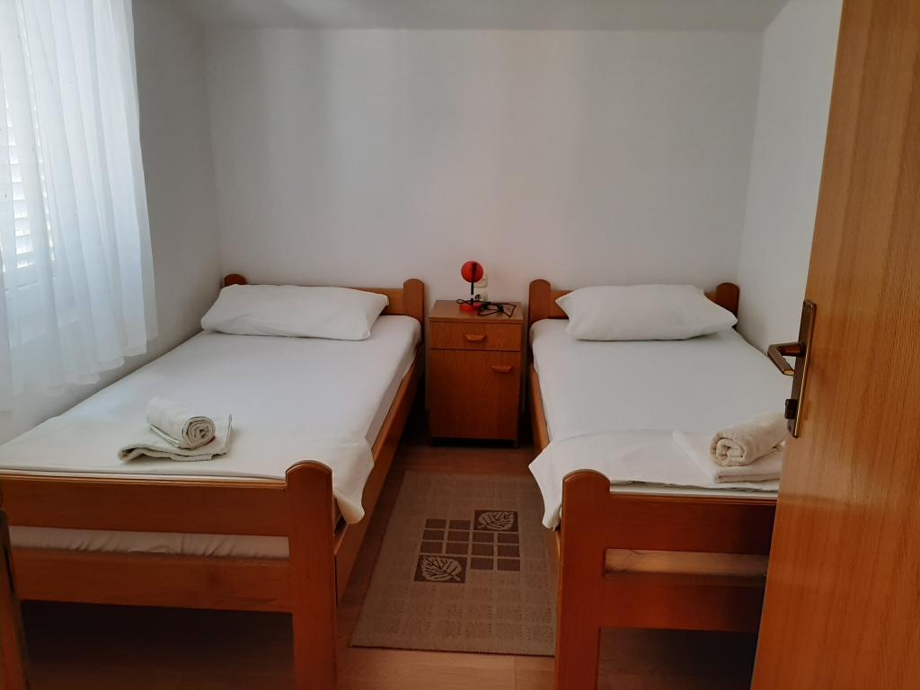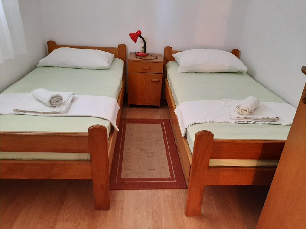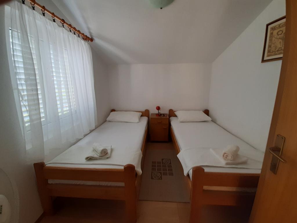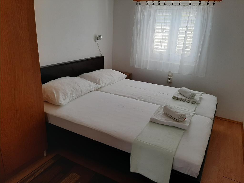 Les appartements Cvrčak se composent de deux studios au premier et au deuxième étage. Tous deux ont la même répartition des pièces et se composent de deux chambres dont une avec un lit double, d'une cuisine reliée au salon et d'une salle de bain. On entre dans une pièce par le rez-de-chaussée. salon, et dans la seconde depuis l'escalier. Les deux séjours ouvrent sur de spacieuses terrasses avec vue sur la mer, la ville et le port. Derrière la maison se trouve une terrasse avec barbecue à la disposition des hôtes. À proximité de l'appartement se trouvent une plage avec des installations pour les enfants, à 3 minutes à pied, un magasin à 10 minutes à pied, tandis que l'ACI Marina Jezera et une école de voile sont à 1 minute à pied. Il y a plusieurs plages de galets et de béton à proximité, et l'île possède également la célèbre plage de sable Slanica. Une belle promenade reliant Jezera et Tisno se trouve à 10 minutes à pied, recommandée pour la marche ou le vélo. Près de l'appartement se trouvent les parcs nationaux de Kornati et de Krka. Recommandation d'hébergement pour les participants à l'école de voile. Les appartements sont entièrement équipés et un parking est prévu devant le bâtiment.