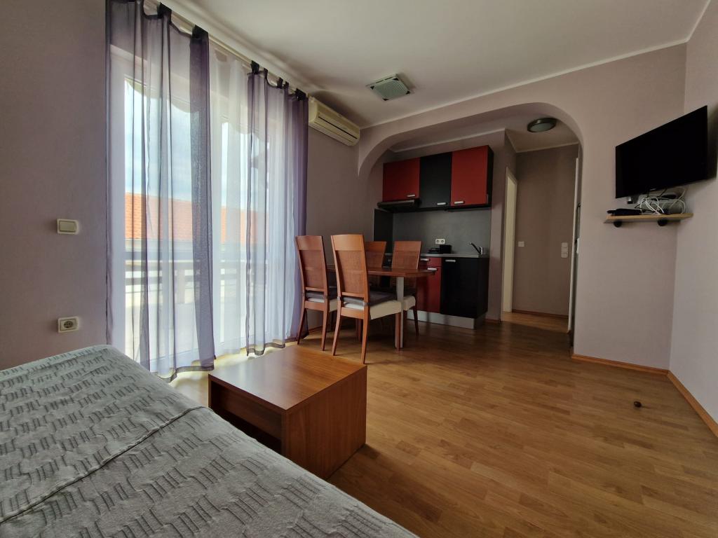 Meublées avec goût et des appartements entièrement équipés dans la zone calme, à environ 400 mètres de la plage et à 200 m du centre. La maison dispose de 2 appartements, deux au premier étage. Chacun a un salon de chambre (2 de 2 lits), cuisine, salle de bains et terrasse. Les clients ont accès à une machine à laver, four à micro-ondes, cafetière, télévision par satellite, internet, barbecue et un parking. Les appartements sont climatisés, très confortables, avec de grandes terrasses et de beaux meubles. Rester dans cette maison saura vous ravir.