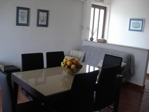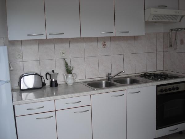 Nous avons des vacances dont nos propriétaires extrêmement gentils se souviendront. Absolument discrètement, on nous a offert tout le séjour. Pour la première fois en 20 ans, une boisson fraîche nous attendait à notre arrivée. Avant notre départ, nous avons mangé un délicieux repas de fruits de mer, une tasse de figues le matin et même un dessert composé d'une délicieuse tarte aux pommes. Les incroyables propriétaires. L'appartement est très spacieux, très propre, avec de nombreux accessoires, par exemple. assez de serviettes, serviettes, ustensiles de cuisine, nettoyant lave-vaisselle, poudre lave-vaisselle, grand réfrigérateur avec congélateur, terrasse spacieuse. Internet ne fonctionne que sur la terrasse, réception de la télévision n'était pas le meilleur. Application de localisation est adapté à quelqu'un qui veut passer des vacances paisibles. Sur la plage (à quelques mètres) se trouve un super bar avec des prix très modérés (bonne bière 17kun, pizza de 43 à 50 kunas), un inconvénient mineur est que le magasin se trouve à 800 m en haut de la colline. Vous avez besoin d'un vélo ou d'une voiture pour aller chercher du pain. La plage est dégagée, avec suffisamment d'ombre et de soleil. Cependant, le fond marin descend rapidement, après seulement quelques mètres. En fin de compte: grands propriétaires, beaux fruits de mer grillés, vacances tranquilles en famille,