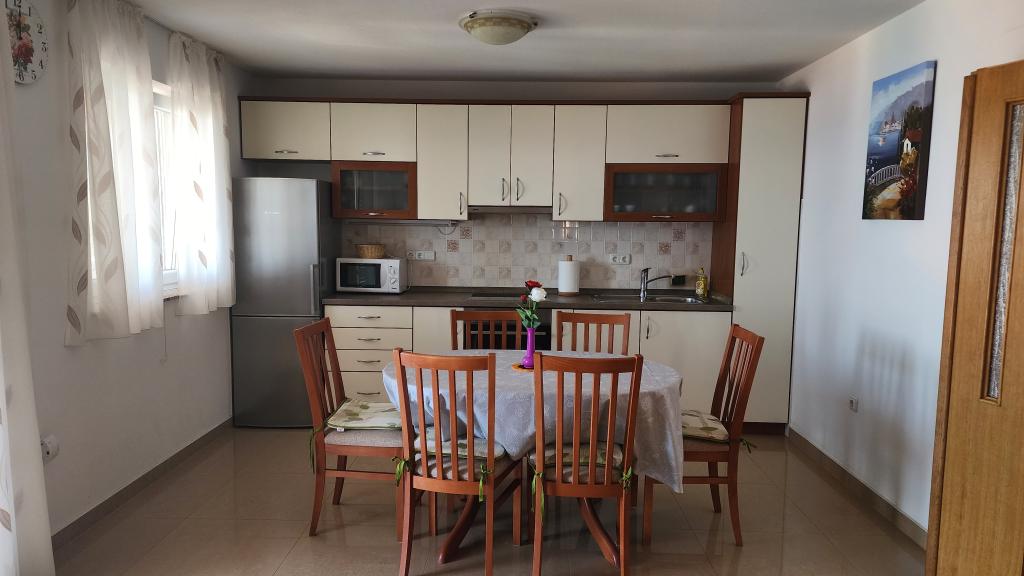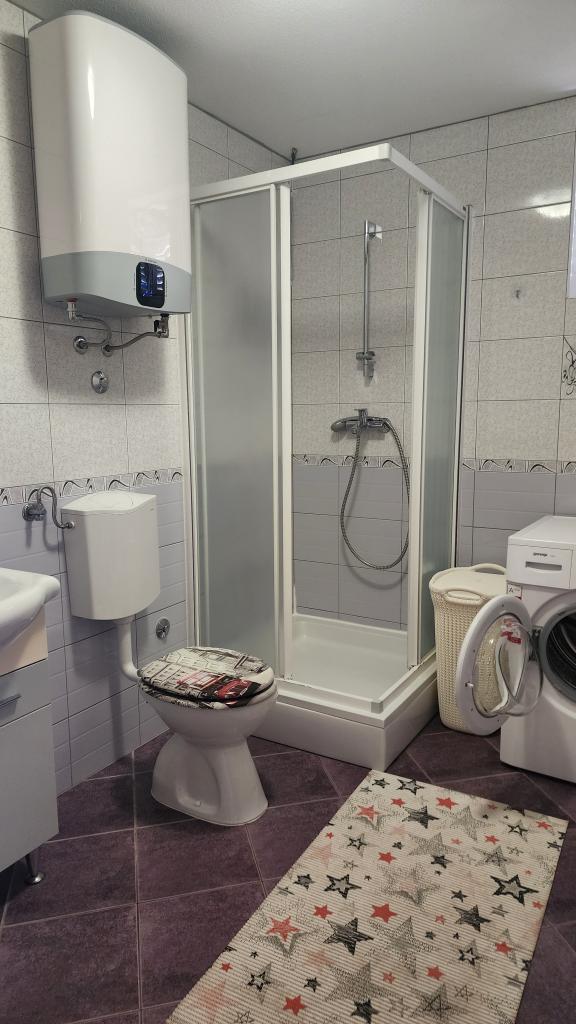Nous avons séjourné dans un studio avec la plus belle vue. La terrasse est vraiment immense et a une partie couverte (toit), mais sinon il n'y a pas de soleil direct. Le studio est situé tout en haut, ce qui est un gros avantage lors du "déménagement" de et vers l'appartement - il y a des garages et des places de parking pour les voitures en haut. L'appartement est situé juste à côté de la route principale, qui n'est pas passante même en haute saison. Vous pouvez rejoindre le magasin en voiture en 2 minutes. Le studio dans lequel nous avons séjourné 10 jours était magnifique. Tout est très propre et prêt pour votre arrivée. Très joliment meublé, vous pouvez y trouver tout ce dont vous avez besoin! Tous les équipements sont de grande qualité et neufs, ou très, très peu utilisés. Tous les frais (nettoyage, frais d'inscription, taxes et autres) sont inclus dans le prix du séjour. Une douche extérieure et une cheminée barbecue sont également disponibles pour une utilisation commune. Sur la terrasse commune, vous pouvez jouer au ping-pong, aux fléchettes, vous pouvez emprunter un sup. Les propriétaires sont vraiment très gentils et gentils, ils sont merveilleux ! Je leur ai écrit par e-mail et ils m'ont répondu immédiatement et dans ma langue ! Il est arrivé que deux familles demandent le même appartement en même temps (une par téléphone, une par mail). Par conséquent, le propriétaire a demandé à son fils s'il pouvait nous donner son appartement (studio), pour lequel je suis vraiment très très reconnaissant ! La plage est très proche, à seulement quelques mètres, mais il y a des marches, mais ce n'est pas aussi mauvais qu'il n'y paraît sur les photos. La première plage immédiate est en béton, bien entretenue, et 10 mètres plus loin, vous avez des galets de sable, également une plage bien entretenue et propre. La plage n'est pas si bondée, parfois nous étions seuls, ce qui m'a vraiment surpris. Il est également accessible en voiture ! La mer est vraiment propre, de couleur turquoise, on peut voir à 15 mètres de profondeur ! L'eau est chaude, il faisait 25-26 degrés. Nous sommes très satisfaits des vacances et du choix, et nous reviendrons ! Si vous voulez des propriétaires au top, un appartement impeccable, du calme et une mer propre, cet appartement est le meilleur choix !