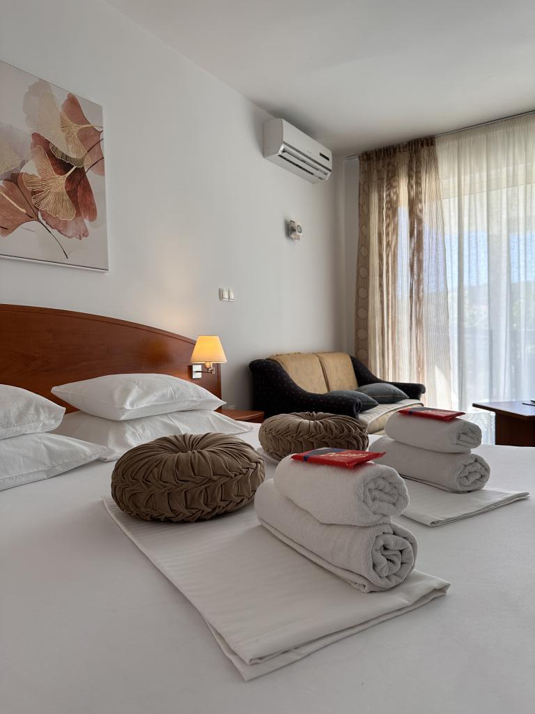 Appartements et chambres équipés de façon moderne directement sur la mer, la plage. Notre tradition de traiter avec le tourisme est de plus de 50 ans. Nous vous offrons de vraies vacances dans un endroit magnifique directement sur la plage. Au sein de l'établissement, nous avons un restaurant familial où nous proposons, entre autres, du poisson de notre propre pêche. L'hébergement est situé à Kampor sur l'île de Rab. Toutes les installations nécessaires telles qu'un centre de plongée, un coiffeur, des magasins, un bureau de change, un parc pour enfants, un café et de nombreux restaurants se trouvent à moins de 300 mètres de la propriété. Non loin du bâtiment se trouvent le célèbre parc forestier de Dundovo et la péninsule de Frkanj, où se trouve la célèbre plage nudiste de Kandarola. Devant le bâtiment se trouve une belle plage de sable fin, particulièrement adaptée aux familles avec de jeunes enfants.