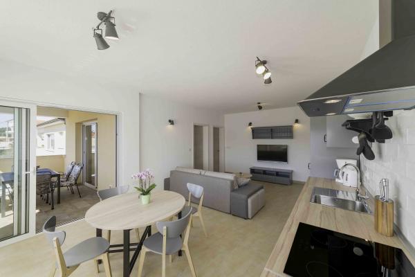 Appartements avec vue sur la mer avec possibilité d'utiliser un barbecue. Une option est un amarrage hors-bord à proximité. Des locations de hors-bord sont également disponibles à proximité (nécessite un permis pour exploiter un bateau). Parking disponible à côté de l'appartement. La distance de la mer est de 100m à vol d'oiseau, ou 300m à pied ou en voiture. 6 minutes à pied. Une aire de jeux pour enfants avec une plage se trouve également à 300m de la maison. À moins d'1 km, vous trouverez des restaurants, un marché, des cafés et une base de plongée. La location de vélos peut être organisée au service local - magasin de vélos, et l'emplacement de l'appartement convient à ceux qui aiment marcher ou courir dans la nature.