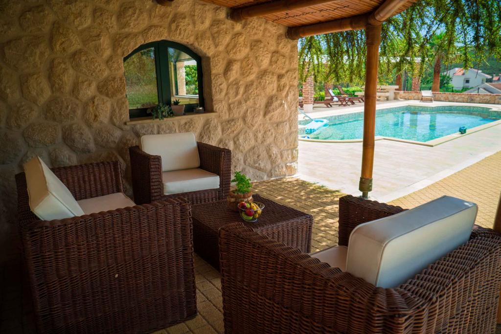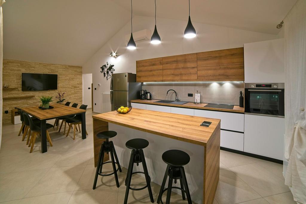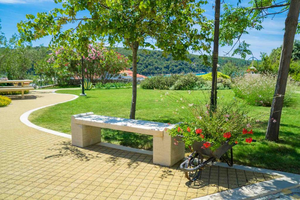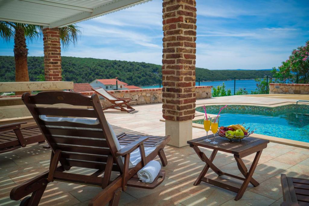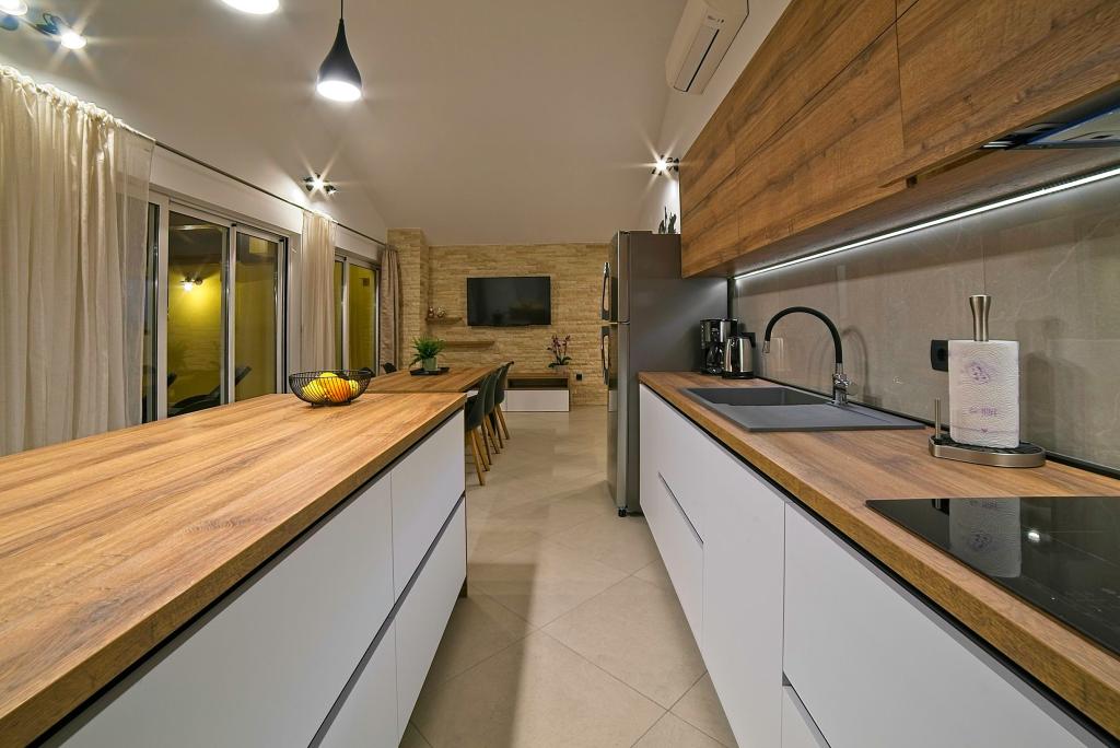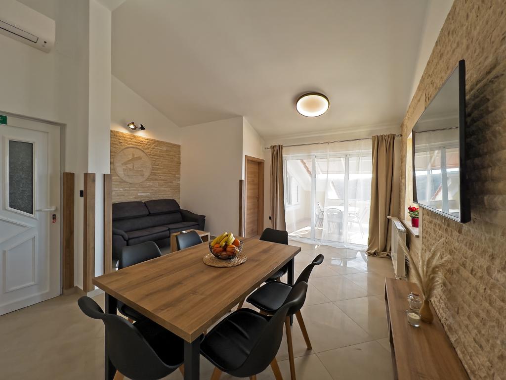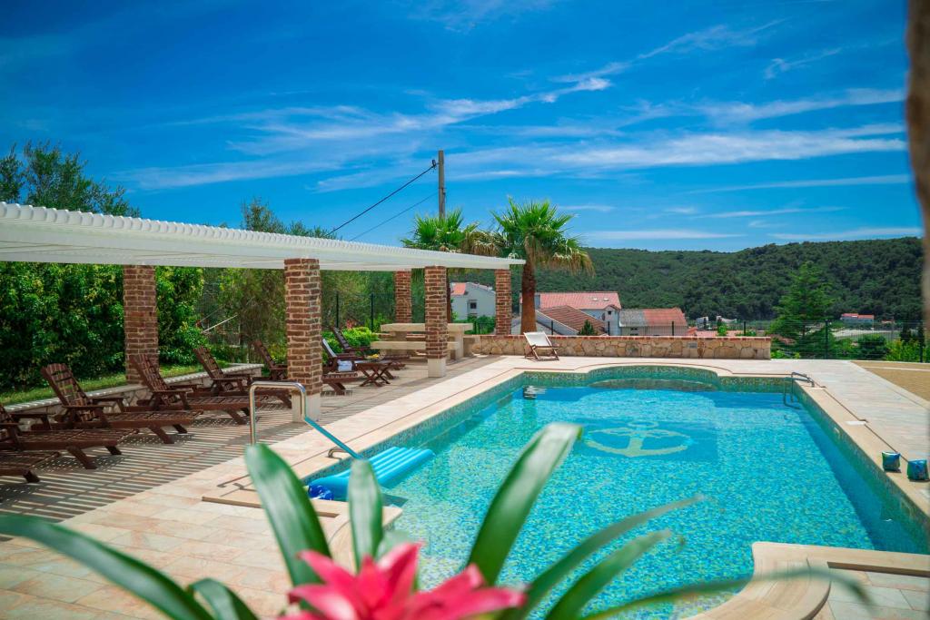 Taxe de sejour est inclus dans le prix.Sur une grande surface au dessus de la maison s'étend un beau jardin pour un séjour plus long le soir et l'après-midi. Il y a une salle de jeux pour enfants, une table somptueuse et un grill somptueux et bien aménagé, une kitchenette équipée avec toilettes et plusieurs tables et chaises de jardin. Piscine extérieure moderne équipée, de taille 9, 50 x 5, 20 mètres, profondeur 1, 50 mètres, équipée de transats et parasols et snack-piscine. Vous serez étonné par la vue sur la mer depuis le magnifique jardin et le solarium autour de la piscine. Possibilité d'excursions en bateau autour de l'île de Rab, pique-nique, excursions panoramiques, excursions en bateau vers les îles voisines de Pag, Lošinj et Krk. Nous fournissons l'amarrage de bateaux pour les plaisanciers et pour nos plus jeunes, fléchettes, baby-foot et air hockey.
