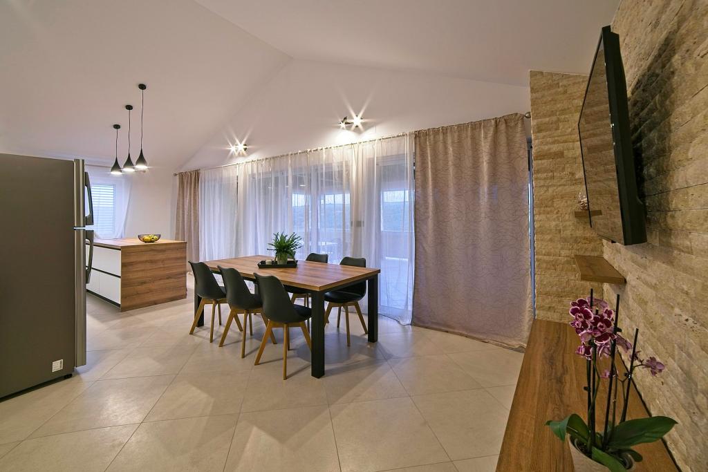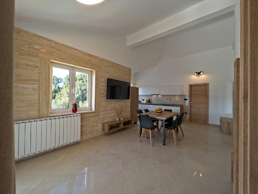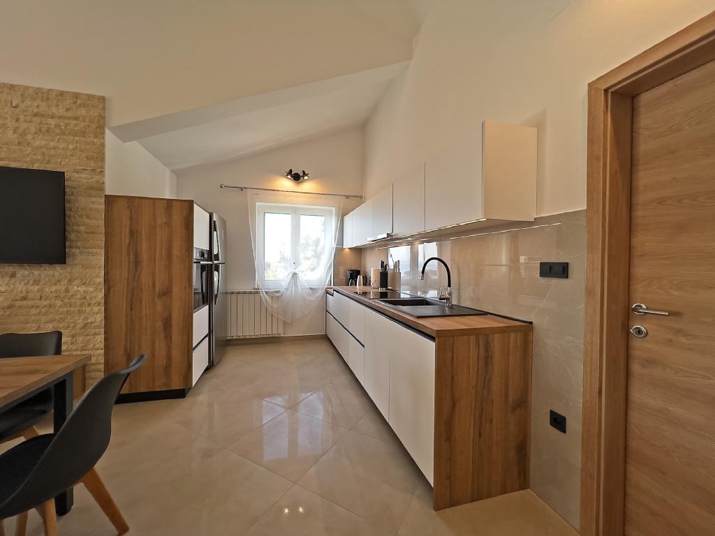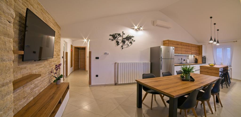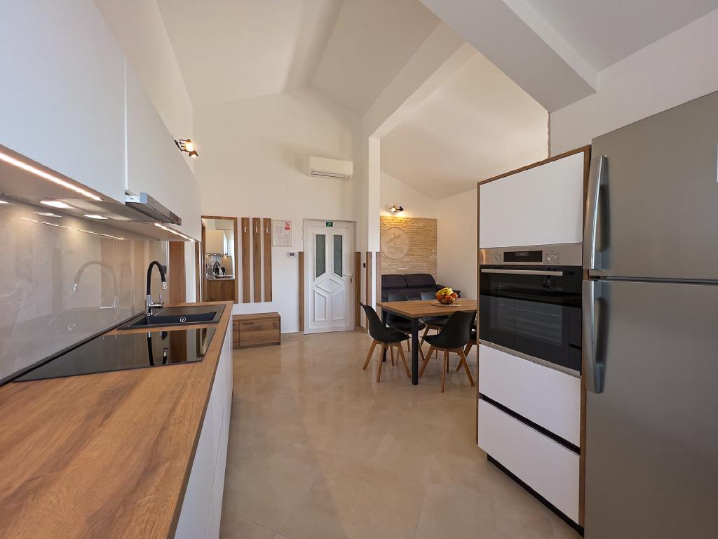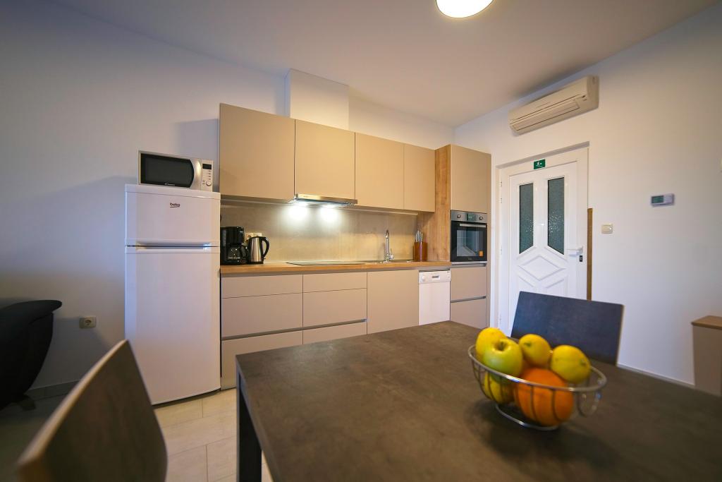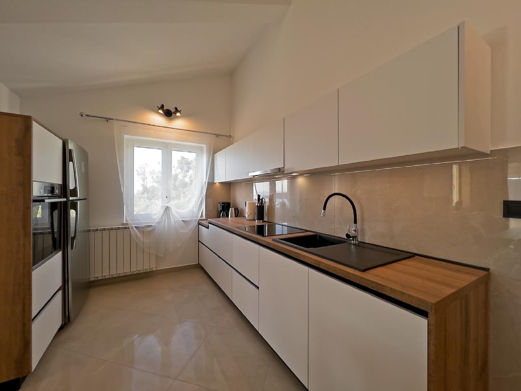 A Kampor sur l'île de Rab, à 400 mètres de la mer et une belle plage de sable, une maison de vacances moderne et récemment meublée et équipée avec une vue spéciale sur la mer et toute la baie de Kampor. La maison de vacances Villa Milena sur l'île de Rab dispose d'un total de 5 appartements pour 2 à 6 personnes. La maison est située dans un bel endroit calme et surélevé. Il se trouve à 400 mètres de la plage de sable visible depuis la terrasse et le jardin de la maison, à 500 mètres du centre-ville et à 5000 mètres de la ville de Rab, vieille de 2000 ans. La plage de sable, avec sa mer peu profonde, ses couleurs émeraude, offre une spécialité pour les familles avec enfants, et les curieux et les historiens pourront se promener dans la vieille ville, surtout le soir. Kampor offre également de nombreuses possibilités sportives, en mer comme sur terre, et surtout un air propre et confortable, adapté aux patients cardiaques et asthmatiques.