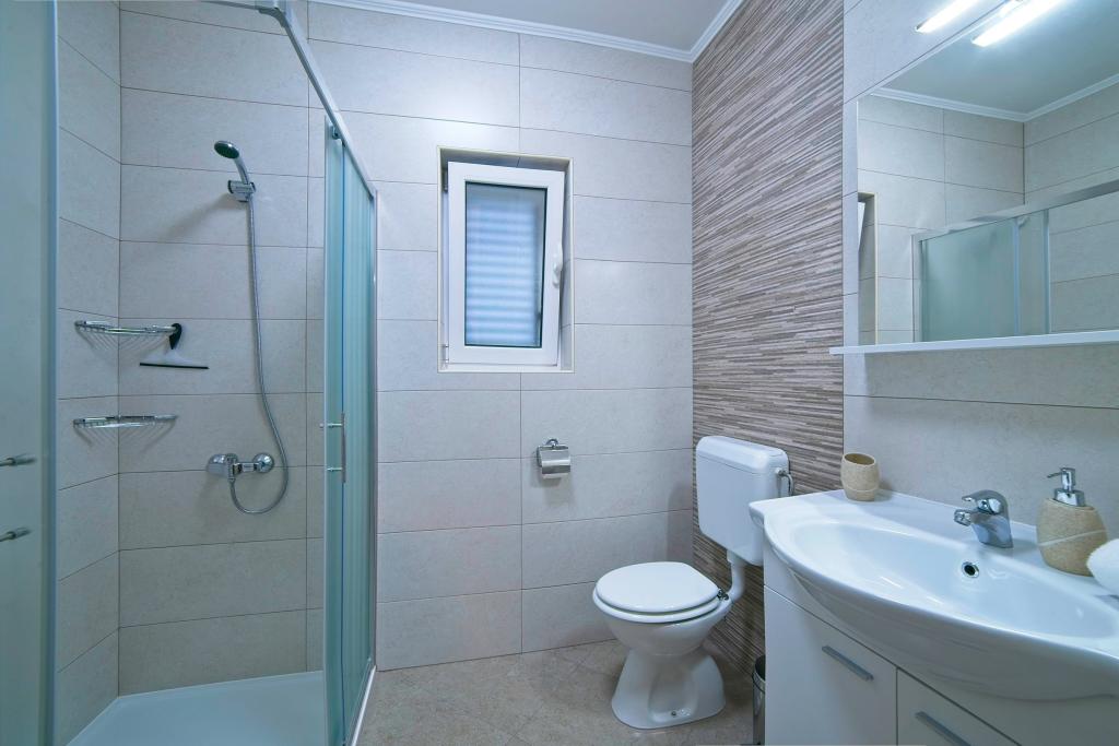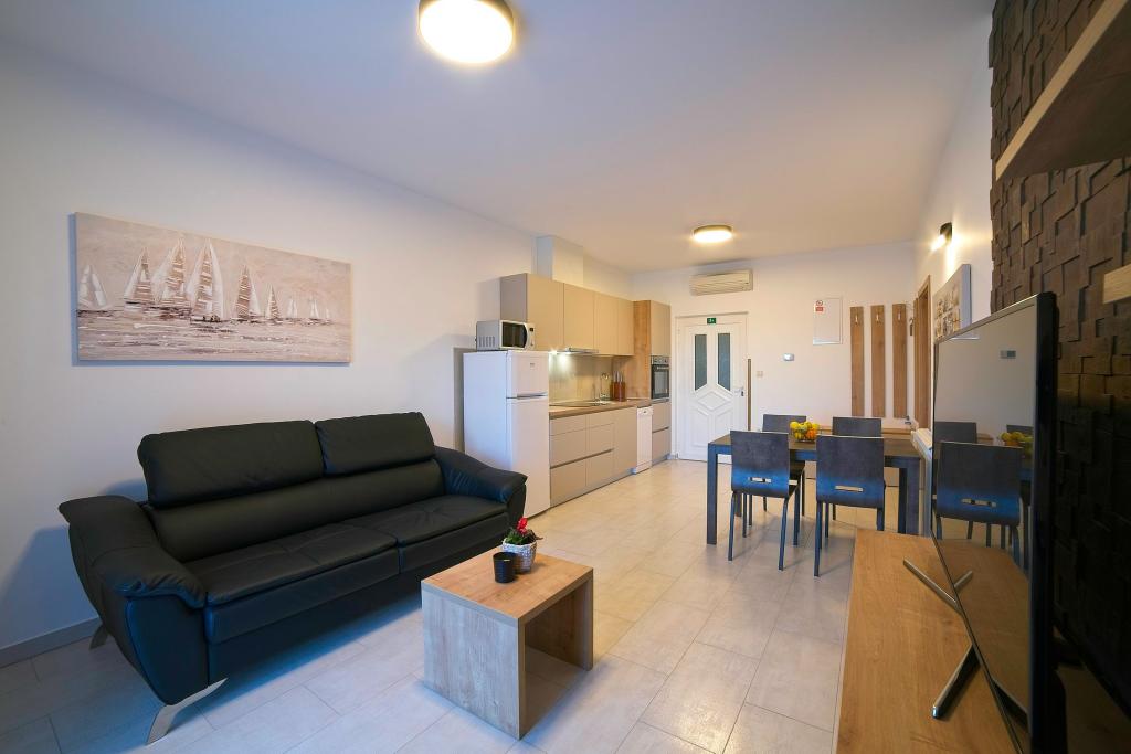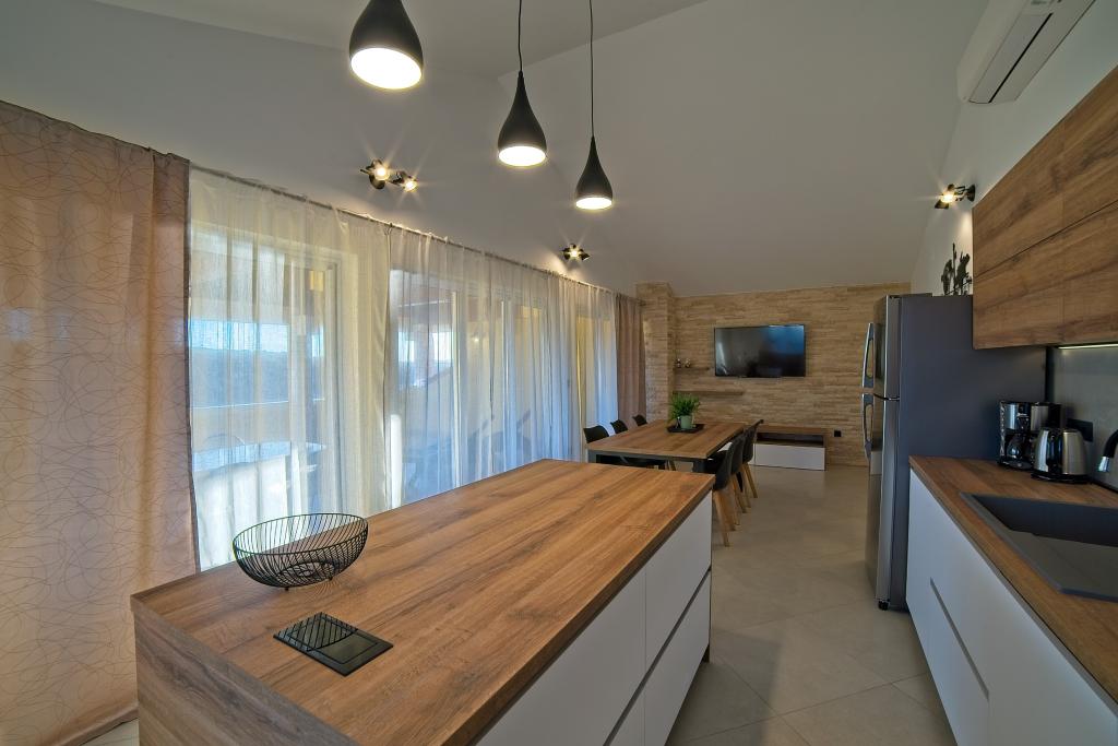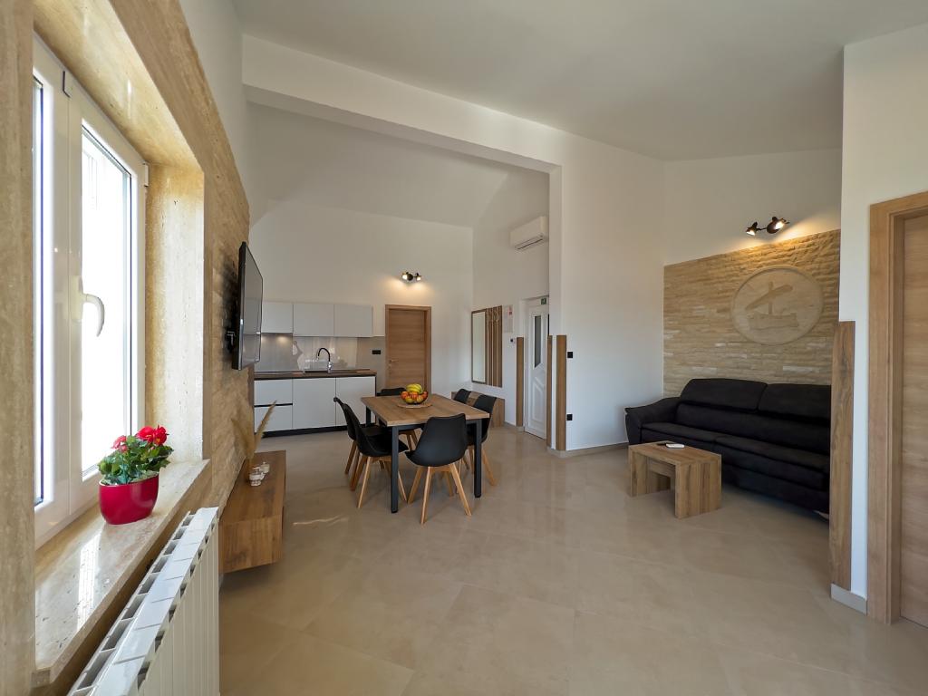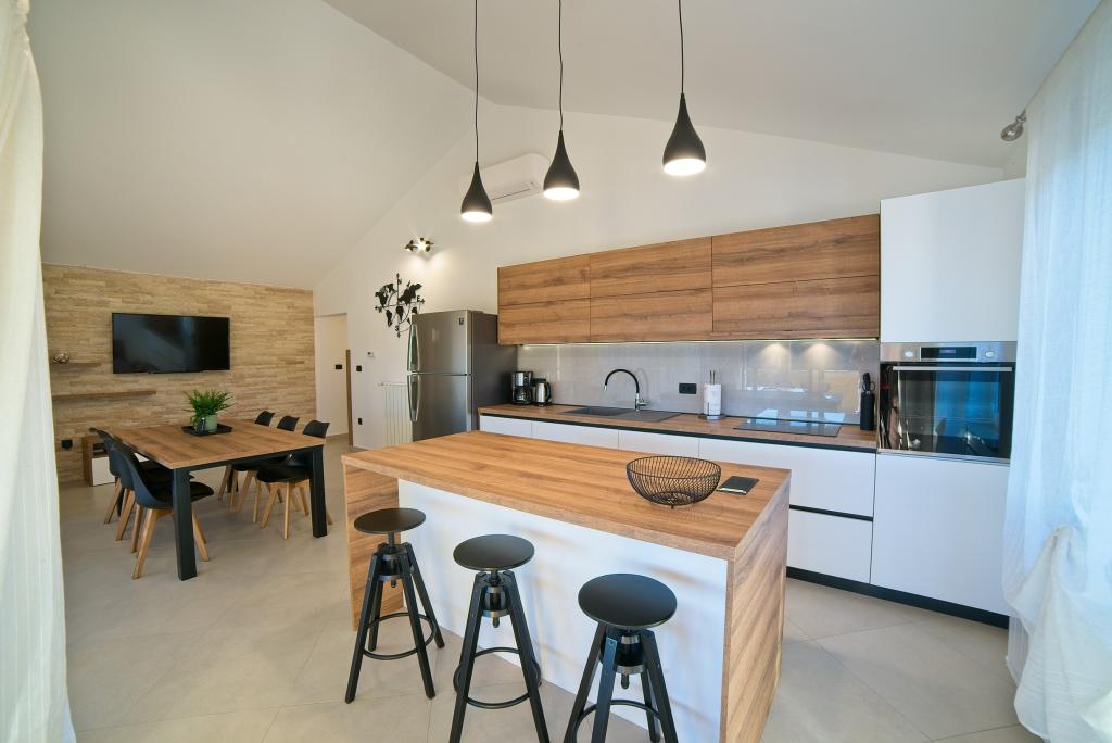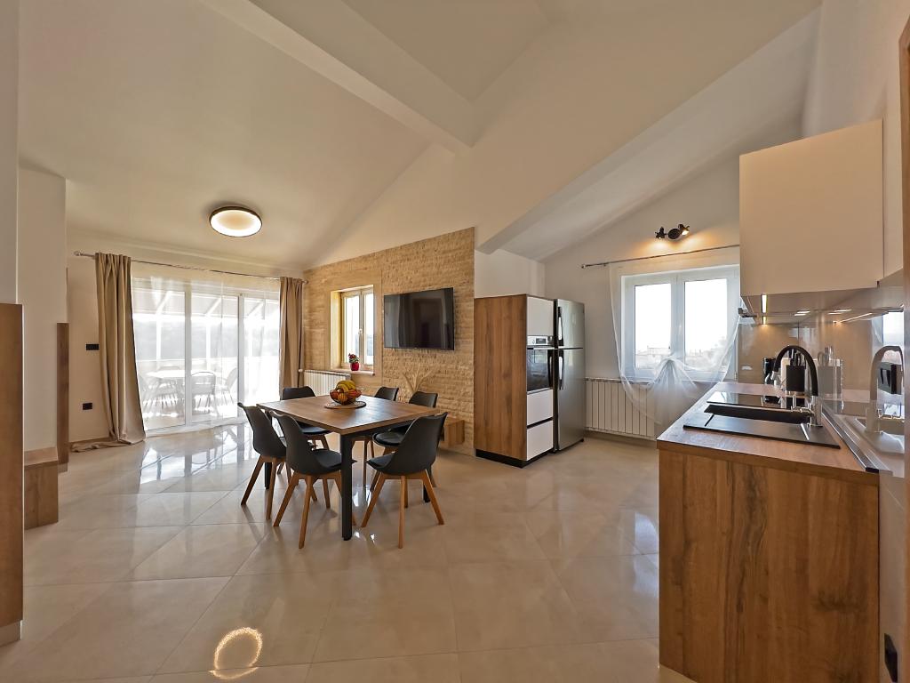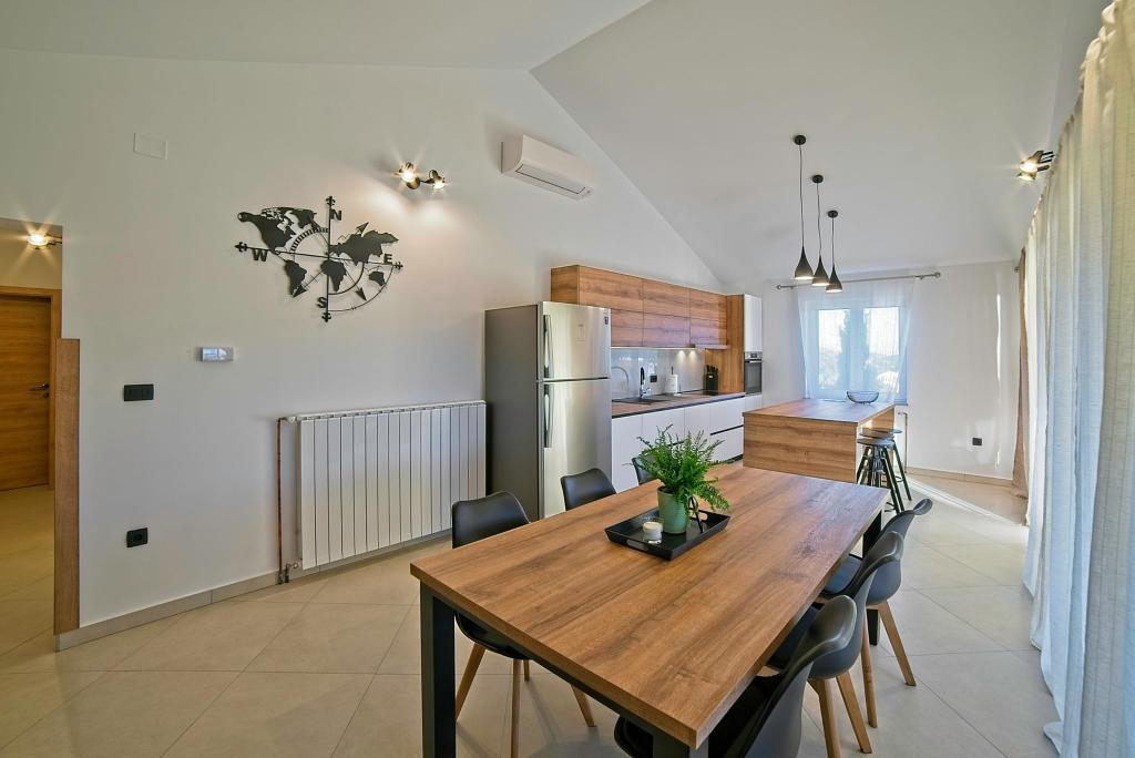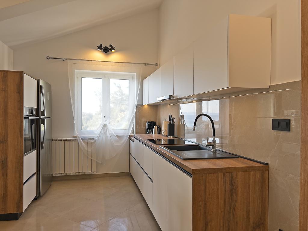 A Kampor sur l'île de Rab, à 400 mètres de la mer et une belle plage de sable, une maison de vacances moderne et récemment meublée et équipée avec une vue spéciale sur la mer et toute la baie de Kampor. La maison de vacances Villa Milena sur l'île de Rab dispose d'un total de 5 appartements pour 2 à 6 personnes. La maison est située dans un bel endroit calme et surélevé. Il se trouve à 400 mètres de la plage de sable visible depuis la terrasse et le jardin de la maison, à 500 mètres du centre-ville et à 5000 mètres de la ville de Rab, vieille de 2000 ans. La plage de sable, avec sa mer peu profonde, ses couleurs émeraude, offre une spécialité pour les familles avec enfants, et les curieux et les historiens pourront se promener dans la vieille ville, surtout le soir. Kampor offre également de nombreuses possibilités sportives, en mer comme sur terre, et surtout un air propre et confortable, adapté aux patients cardiaques et asthmatiques.