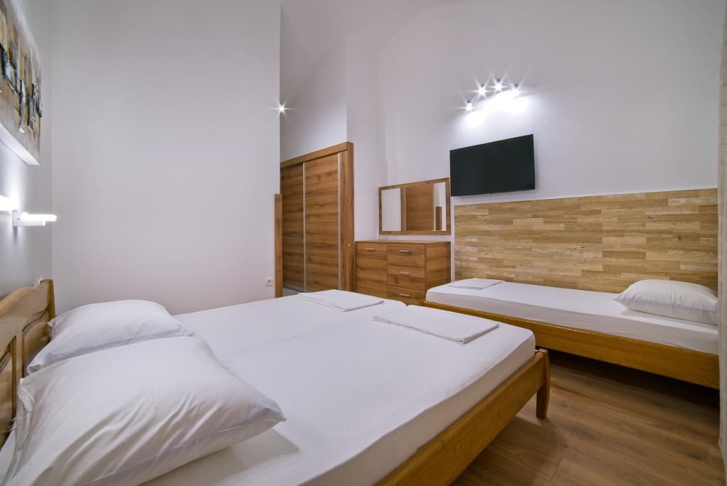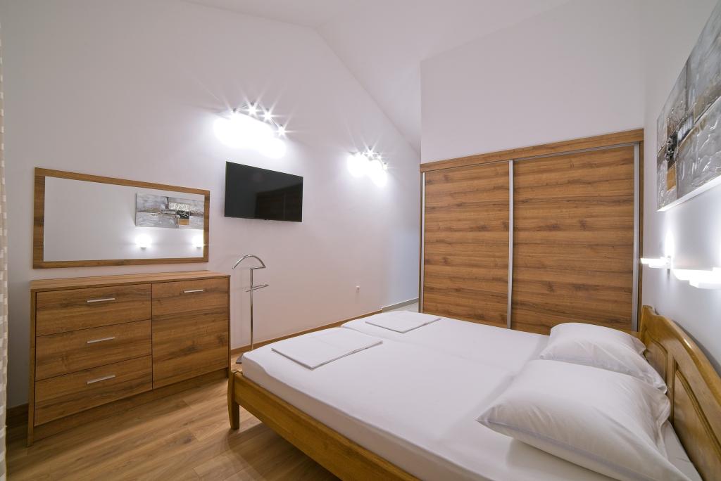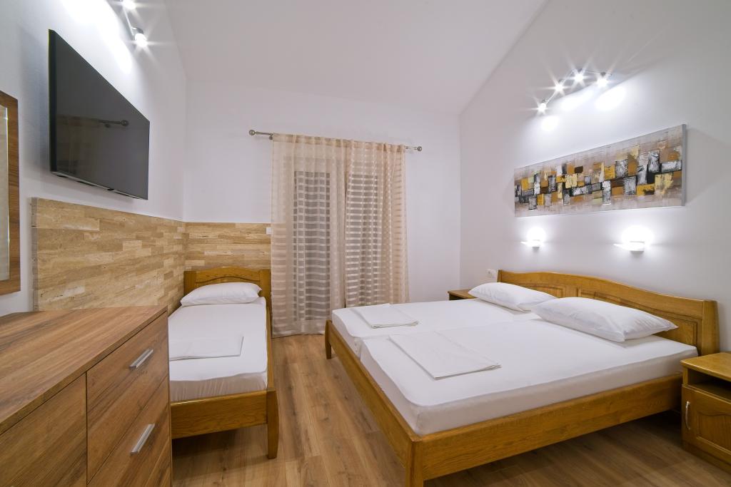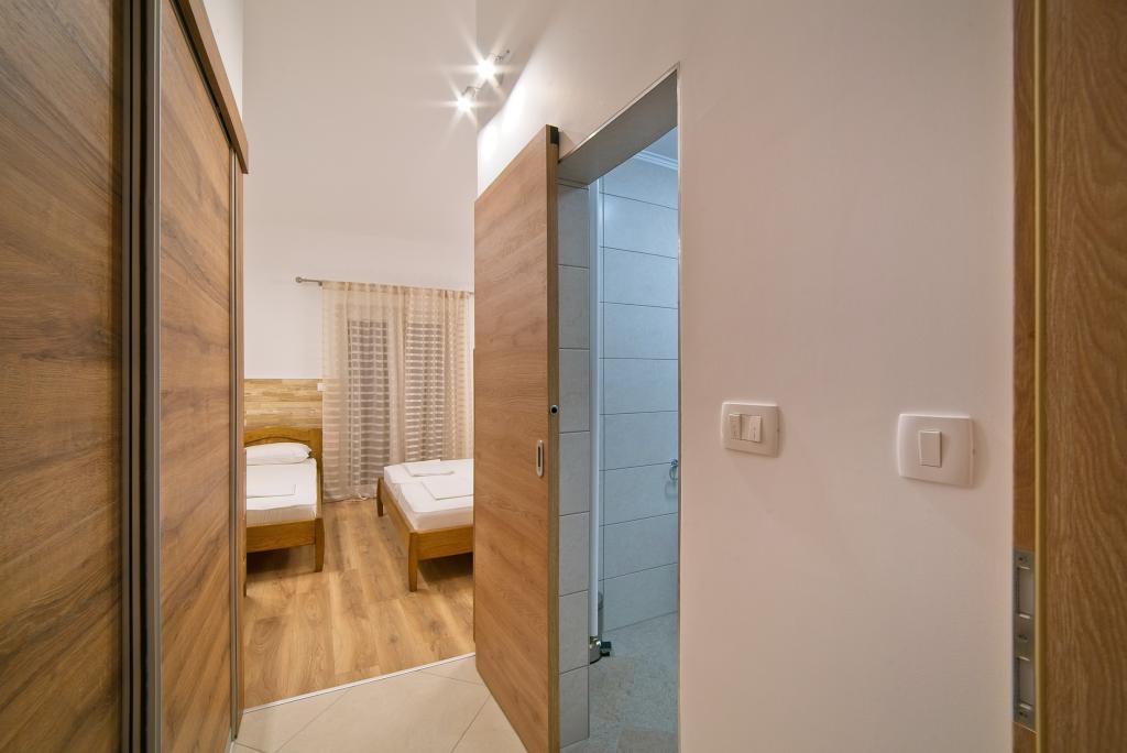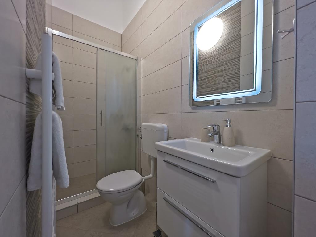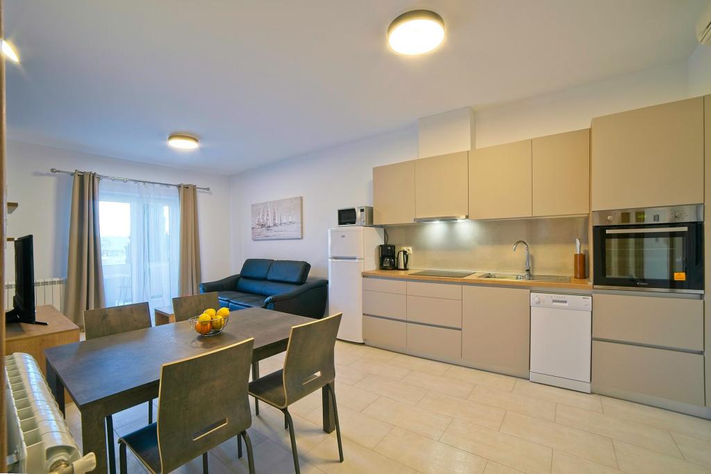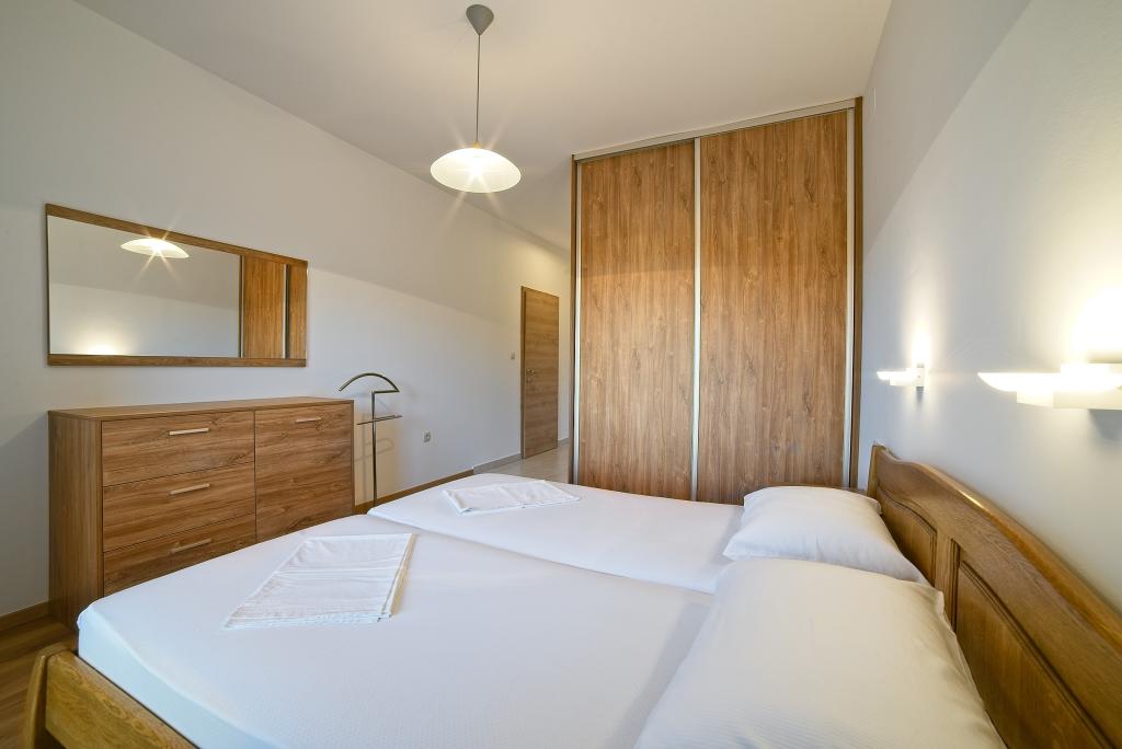 A Kampor sur l'île de Rab, à 400 mètres de la mer et une belle plage de sable, une maison de vacances moderne et récemment meublée et équipée avec une vue spéciale sur la mer et toute la baie de Kampor. La maison de vacances Villa Milena sur l'île de Rab dispose d'un total de 5 appartements pour 2 à 6 personnes. La maison est située dans un bel endroit calme et surélevé. Il se trouve à 400 mètres de la plage de sable visible depuis la terrasse et le jardin de la maison, à 500 mètres du centre-ville et à 5000 mètres de la ville de Rab, vieille de 2000 ans. La plage de sable, avec sa mer peu profonde, ses couleurs émeraude, offre une spécialité pour les familles avec enfants, et les curieux et les historiens pourront se promener dans la vieille ville, surtout le soir. Kampor offre également de nombreuses possibilités sportives, en mer comme sur terre, et surtout un air propre et confortable, adapté aux patients cardiaques et asthmatiques.