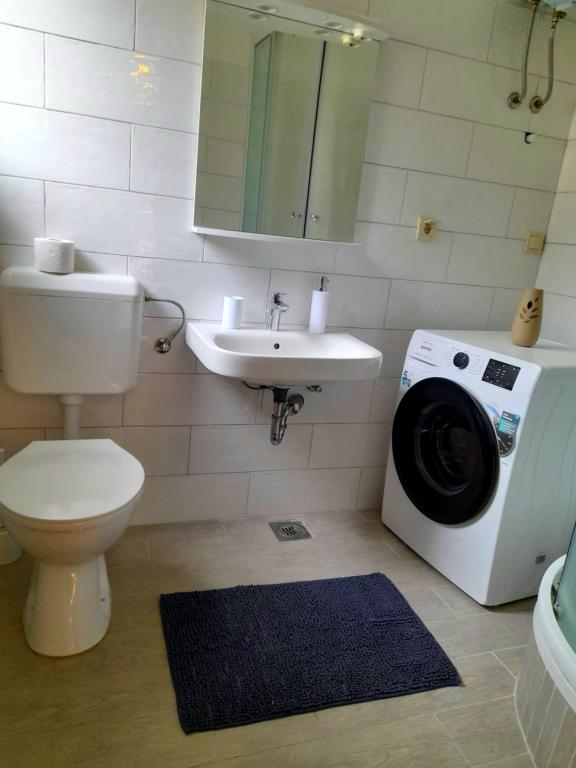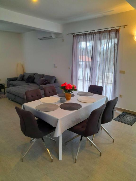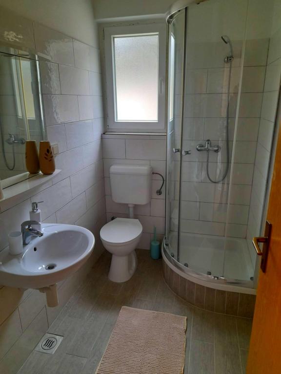 Cet appartement est situé dans une zone forestière et à proximité immédiate de la plage et de la mer. C'est un endroit idéal pour passer des vacances reposantes en toute tranquillité. L'appartement A4+2 (jusqu'à 6 personnes) est situé au premier étage et mesure environ 100 m² et se compose des pièces suivantes : une cuisine entièrement équipée avec un salon avec air conditionné, une télévision à écran plat avec programmes satellite et un canapé-lit pour deux personnes (où ils peuvent accueillir 2 personnes), 2 chambres avec lits doubles (largeur 1,80 m) et 2 salles de bains avec douche. L'appartement dispose d'un balcon, d'une terrasse à l'entrée, d'une terrasse sur le toit, de son propre barbecue et d'un parking. La plage la plus proche est à environ 700 mètres et peut être atteinte à pied pour seulement 10 minutes (le plus rapide est un raccourci forestier).