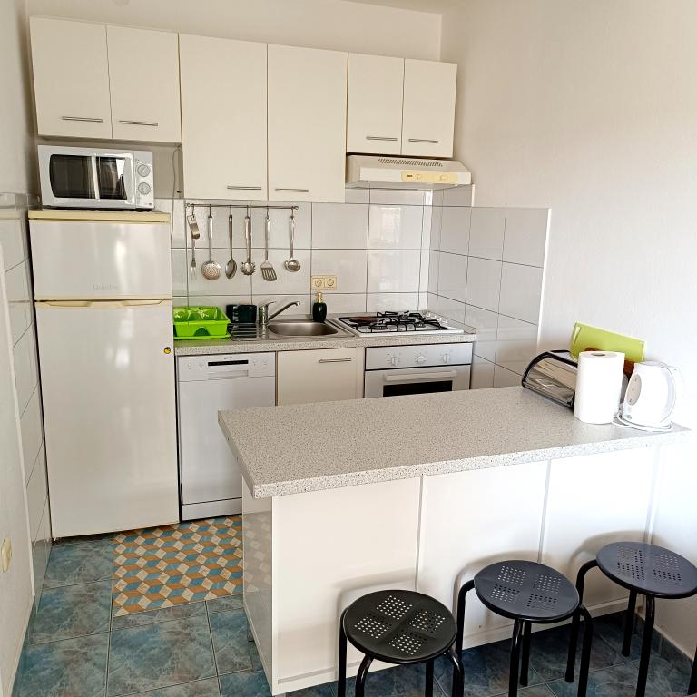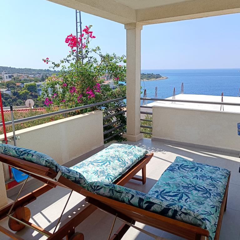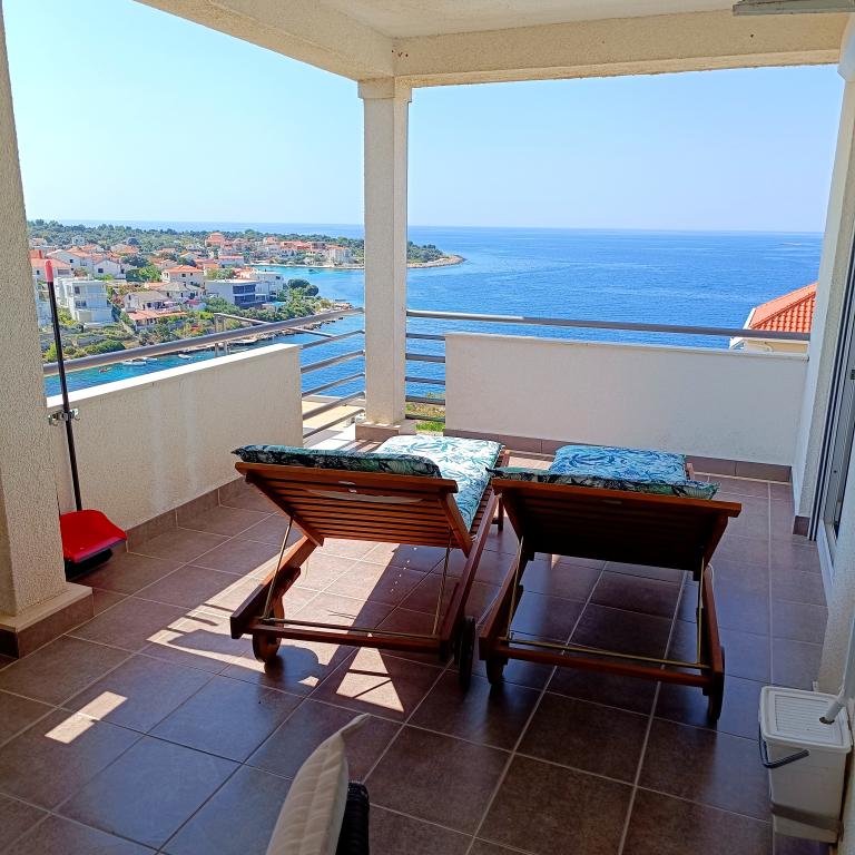 Appartement MATAN (Rogoznica-Kanica) Appartement confortable et entièrement équipé, Wi-fi, Climatiseur, Grill, Parking, l'appartement a sa propre entrée indépendante et sa propre grande terrasse couverte de 18 m2 avec une belle vue sur la mer, la plage est à 70 mètres. Mer extrêmement propre et claire, paix, silence sans foule ni bruit de voitures et nature préservée offrent à nos clients des vacances complètes aussi bien pour les familles avec enfants que pour ceux qui aiment passer leurs vacances dans l'INTIME.Les appartements disposent d'un grill et d'un parking sécurisé à côté. à la maison. Vous trouverez tout pour une soirée, des divertissements et du shopping à Rogoznica, Primošten et Trogir. Les plages sont en galets, en pierre et en béton. Un endroit idéal pour les amateurs de pêche, de marche et de course récréative. Accueillir