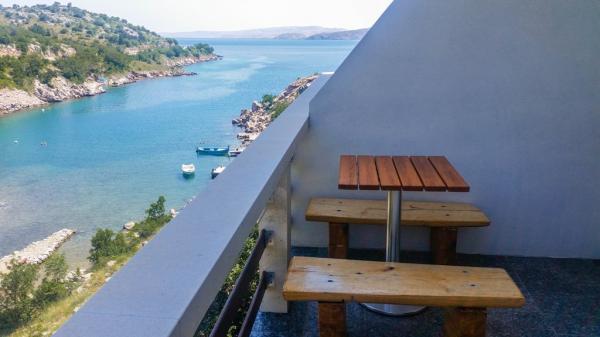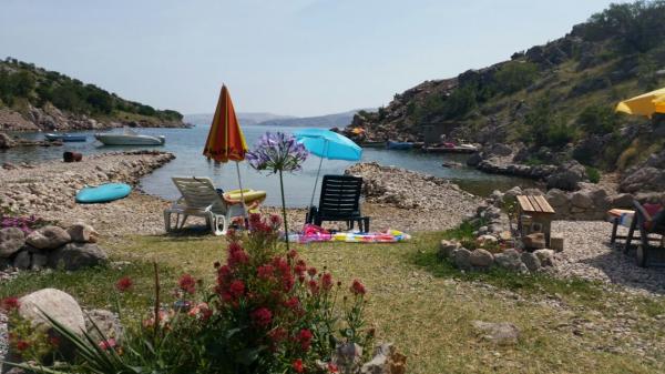 L'appartement avait de la place pour de haut niveau pratique, propre. L'anse est fantastique, beaucoup de fleurs et d'arbres. Tout le monde peut avoir une place à part. Il ya des chaises longues, des douches, kayak. Tranquillité et la paix. Belle vue sur l'île de Pag et ailleurs sur la côte, vous pouvez nager.