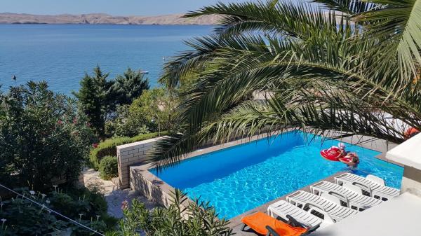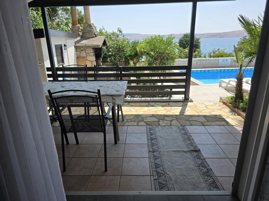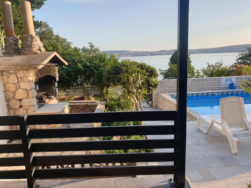 Un grand merci à la famille Pompe pour les 2 semaines merveilleuses que nous avons eu le droit de passer avec eux! L'appartement est très beau et propre et tout l'équipement est neuf. Trois chambres (WZ + 2 chambres) sont équipées de climatiseurs séparés et la cuisine contient de nombreux plats et même un grille-pain, un grill électrique et une plaque à pizza électrique. Les deux salles de bain sont également spacieuses et agréables. Fantastique est la grande terrasse (partiellement couverte, en partie ouverte), à partir de laquelle on peut admirer à la fois la mer et les montagnes de Velebit. Le service était parfait: après une semaine, les draps, les serviettes, les torchons et même les nappes ont été échangés. La propriétaire, Darinka, vit dans la même maison et s'occupe des invités, des plantes et de la piscine. La mer est accessible par des dalles de roche / béton, ce qui n’a posé aucun problème à nos enfants (7 + 11 ans), même s’ils ont beaucoup apprécié la piscine. Le restaurant le plus proche et le supermarché le plus proche sont accessibles à pied. La ville la plus proche, Karlobag, est petite et tranquille, mais les ferries à proximité des îles de Pag et de Rab offrent de nombreuses possibilités d'excursions. Nous avons beaucoup apprécié nos vacances et recommandons l'appartement.