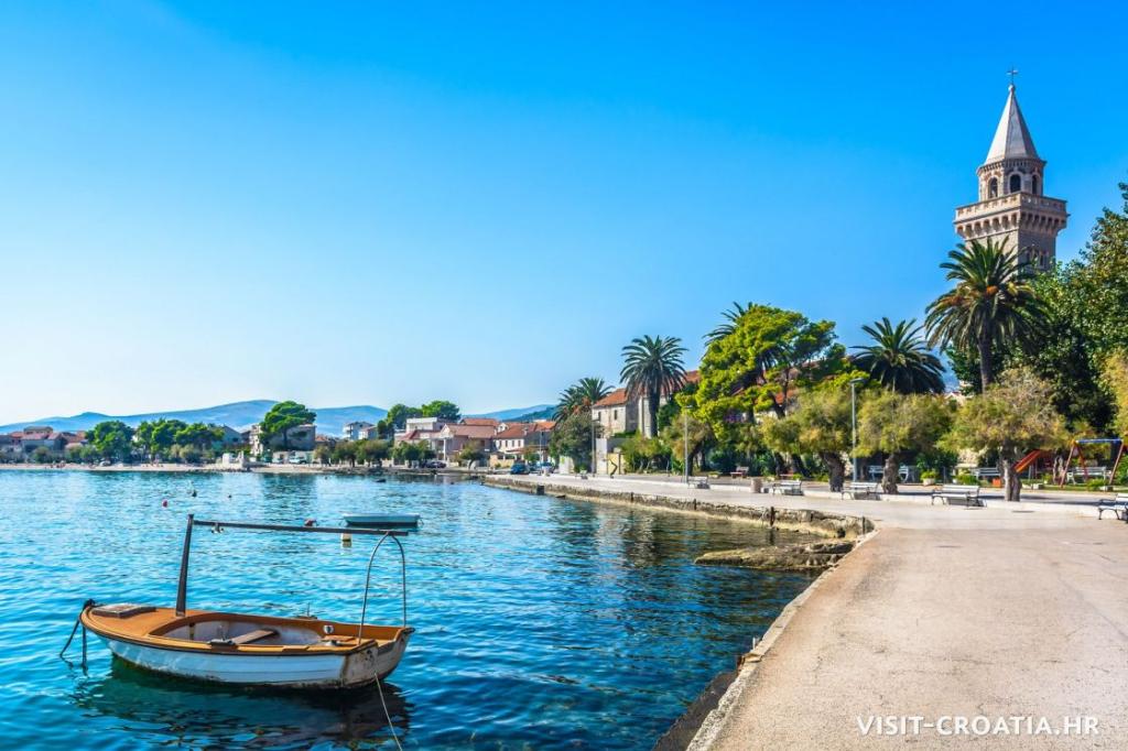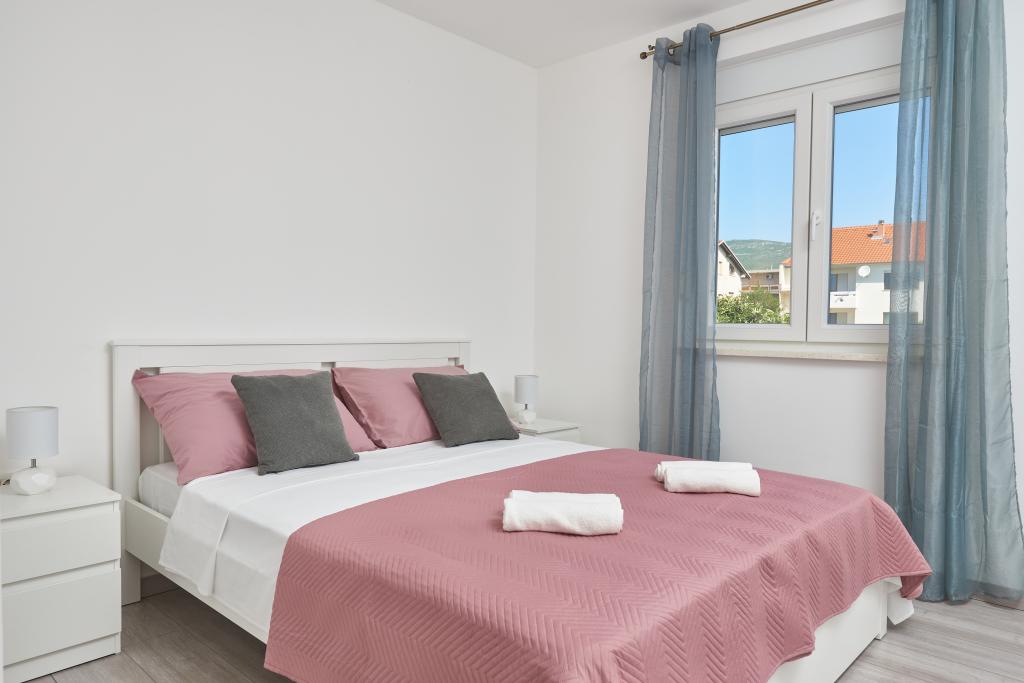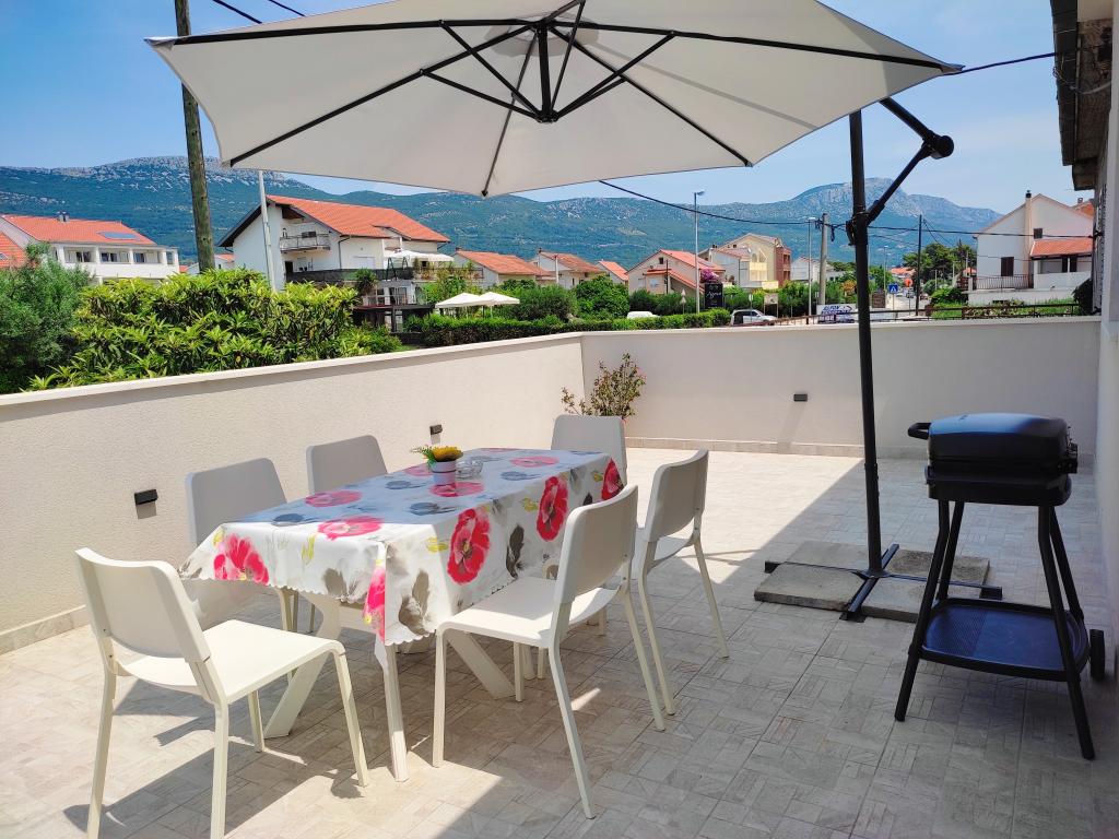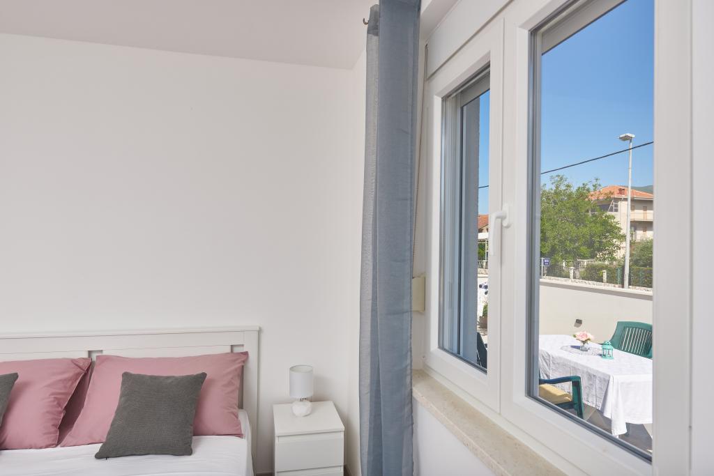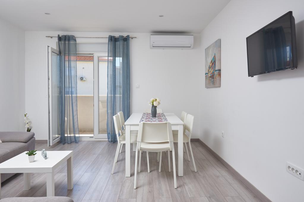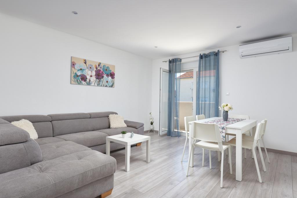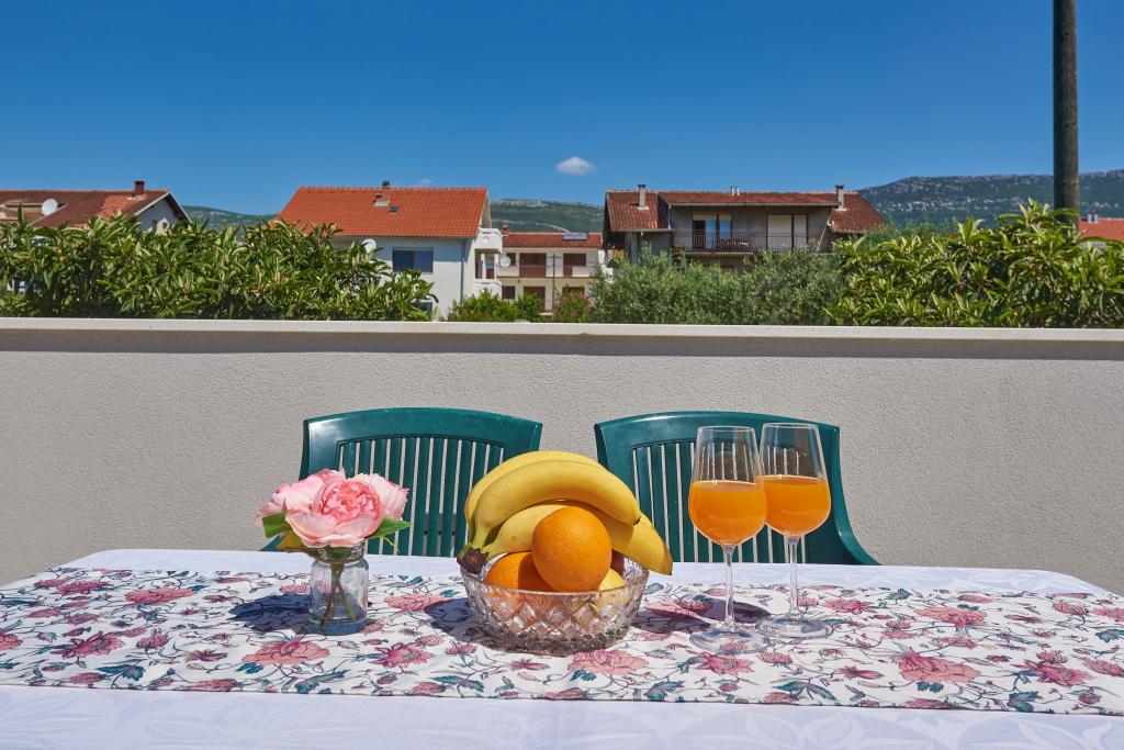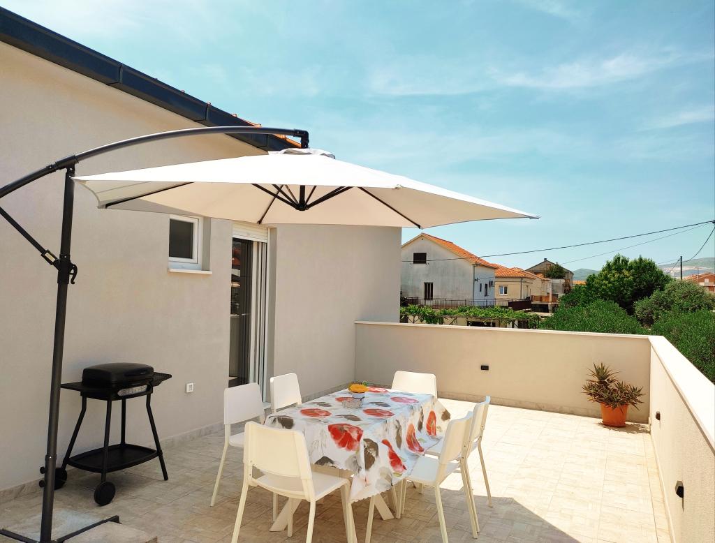 Appartement récemment rénové avec une grande terrasse et un balcon. Situé à Kaštel Štafilić, un petit endroit calme, près des villes UNESCO de Trogir et Split. Un endroit idéal pour des vacances en famille. L'appartement se compose d'une cuisine entièrement équipée, d'un séjour, de trois chambres avec un lit double et d'une salle de bain. L'appartement est climatisé, dispose de 4 places de parking, WiFi, TV et grill électrique. Siège bébé et lit bébé sont disponibles sur demande. La plage avec un café-bar, une pizzeria et une aire de jeux pour enfants se trouve à 5 minutes à pied. À moins de 200 mètres de l'appartement, il y a des magasins, des cafés, un restaurant, une boucherie, un marché aux poissons, un guichet automatique, une pharmacie. Le centre commercial le plus proche est à 5 minutes en voiture.