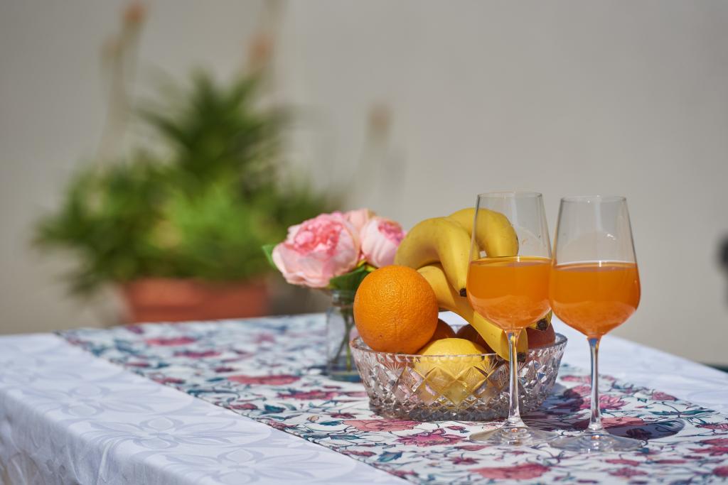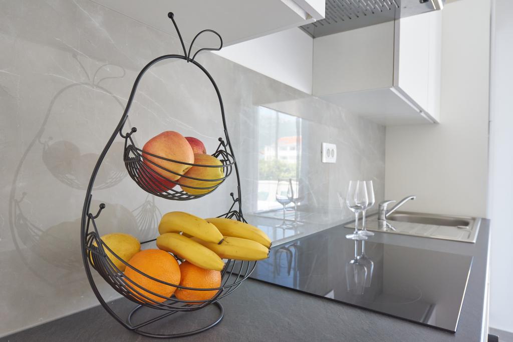 Des fruits frais et une boisson attendent les clients de l'appartement Klara à leur arrivée.