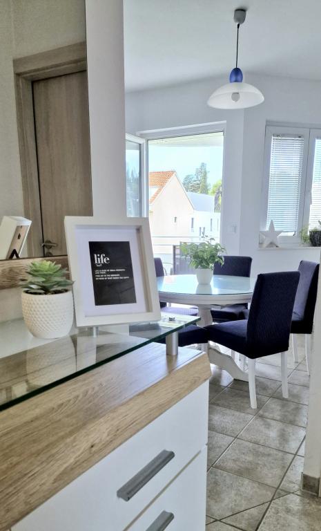 Agréablement appartement meublé à Kastel Luksic, est situé à 80 mètres de la plage. L'appartement est pour 2 personnes 2 L'avantage de l'appartement est à proximité des principales villes de Split et Trogir qui sont riches en patrimoine culturel. L'établissement est situé à 10 minutes en voiture de l'aéroport, à 2 min à pied du centre, des commerces et des cafés et restaurants. Les amateurs de marche pourront profiter de longues promenades en bord de mer en passant par les 7 châteaux.