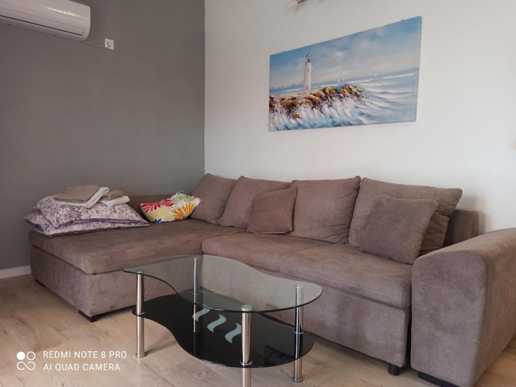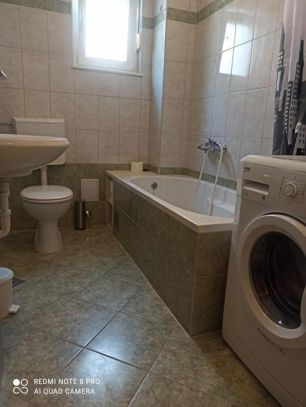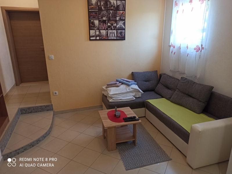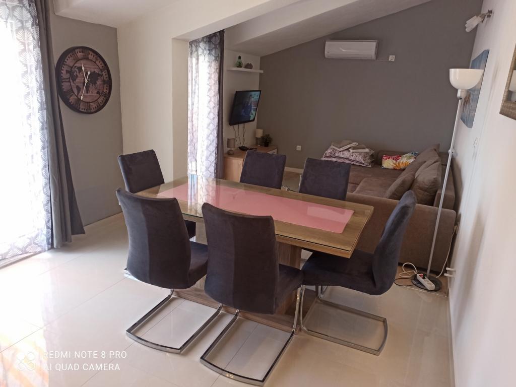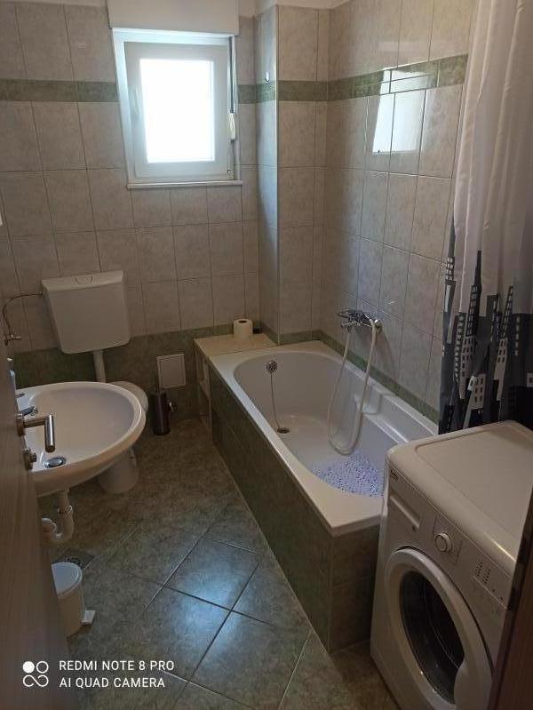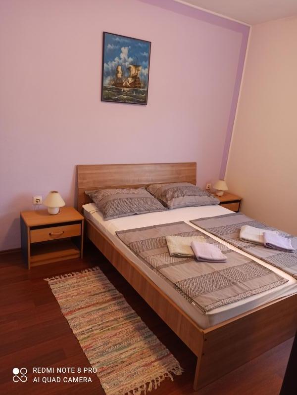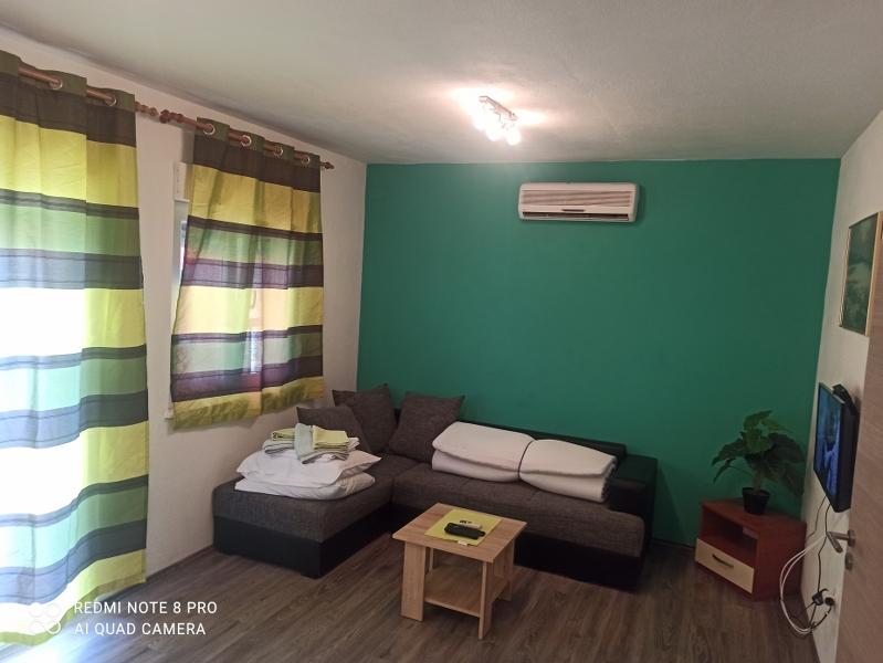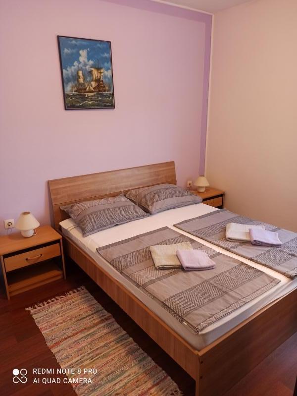 Un verre de bienvenue est inclus dans le prix, la possibilité de transfert depuis l'aéroport, la gare routière ou ferroviaire avec accord préalable. L'appartement 3 est nouvellement meublé, il dispose de 3 chambres, 2 salles de bains, un grand et spacieux salon et cuisine, 3 balcons avec vue sur la mer, les balcons ont des tables et des chaises pour s'asseoir ainsi qu'un grand auvent pour le soleil, deux climatiseurs, un lave-linge et un lave-vaisselle, internet wi-fi optique, TV satellite avec plus de 1000 programmes, parking privé pour 2 voitures, draps et serviettes, ménage général et taxe de séjour sont inclus dans le prix de location. La maison est située dans un quartier calme, à 150 mètres de plages joliment décorées, la maison dispose d'une cour clôturée avec cheminée avec sièges en bois et de plus petites installations pour enfants (trampoline, balançoires, toboggan, bac à sable) qui sont situées dans la cour de la maison.