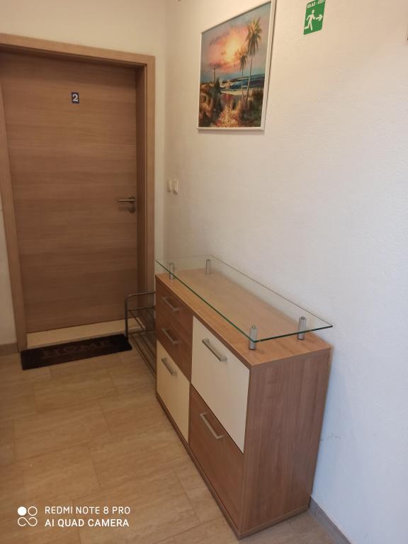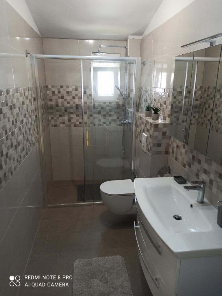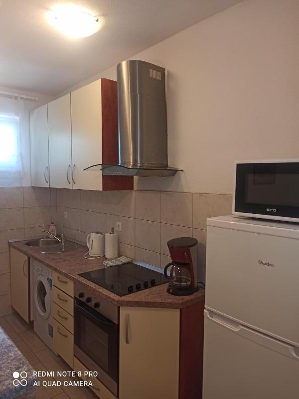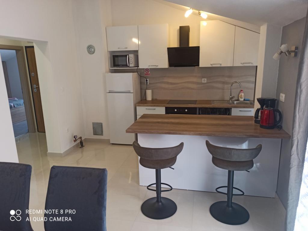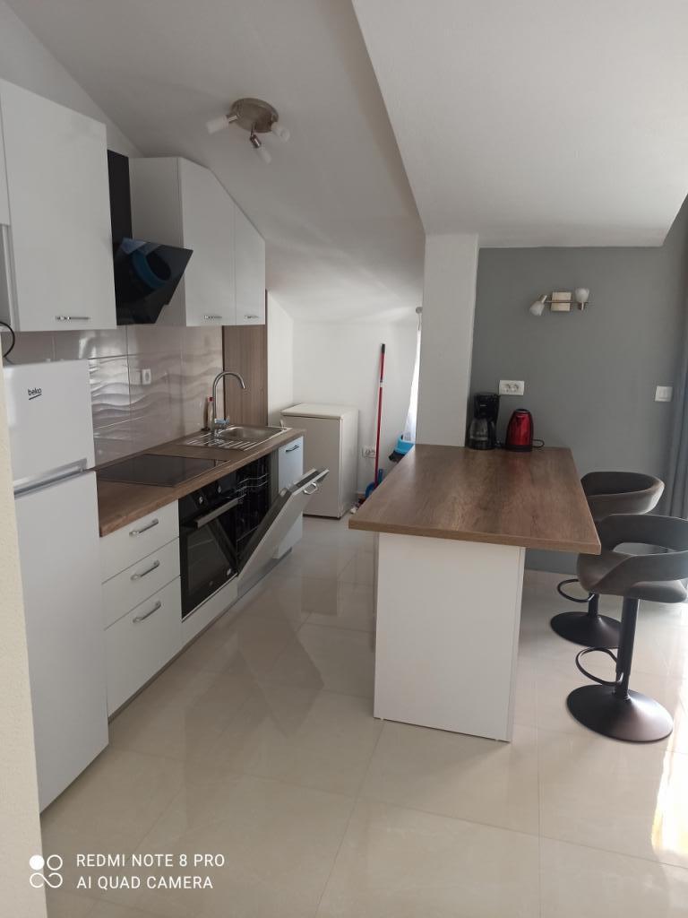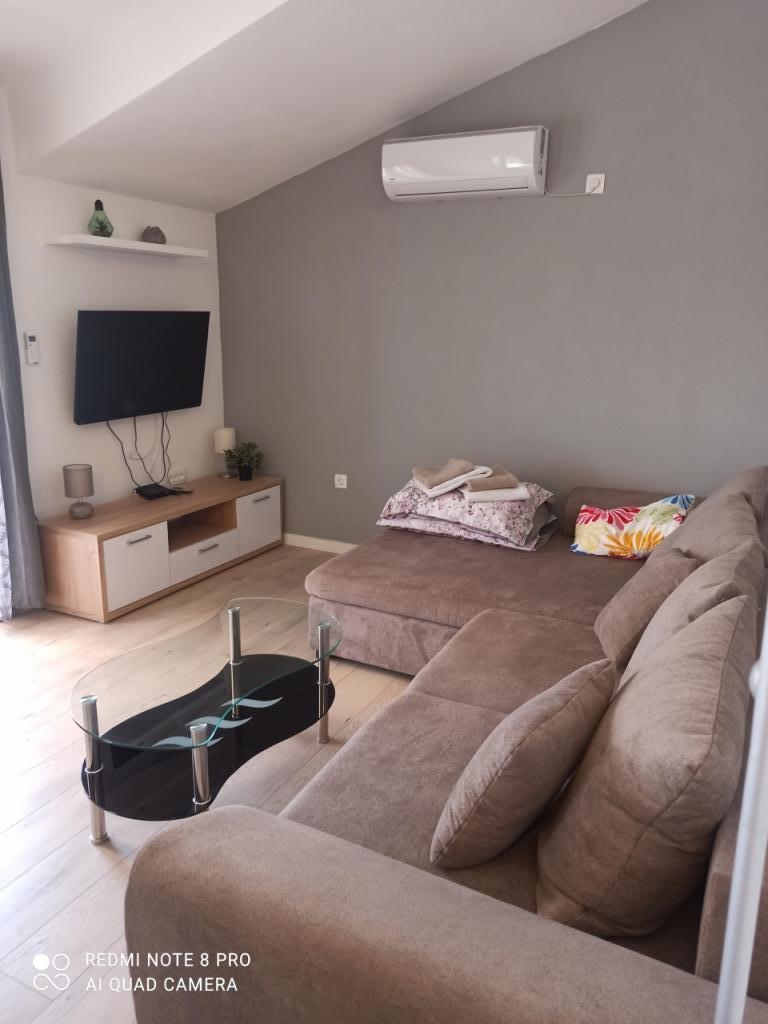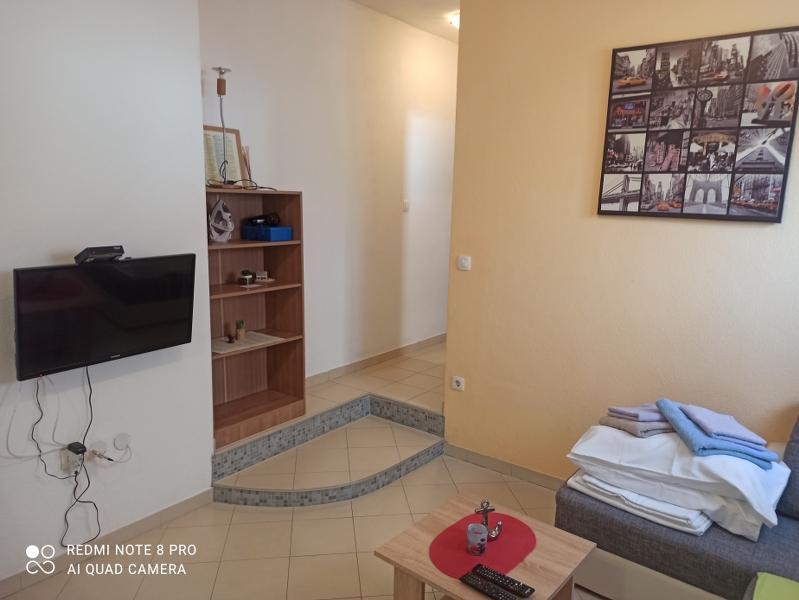 Un verre de bienvenue est inclus dans le prix, la possibilité de transfert depuis l'aéroport, la gare routière ou ferroviaire avec accord préalable. L'appartement 3 est nouvellement meublé, il dispose de 3 chambres, 2 salles de bains, un grand et spacieux salon et cuisine, 3 balcons avec vue sur la mer, les balcons ont des tables et des chaises pour s'asseoir ainsi qu'un grand auvent pour le soleil, deux climatiseurs, un lave-linge et un lave-vaisselle, internet wi-fi optique, TV satellite avec plus de 1000 programmes, parking privé pour 2 voitures, draps et serviettes, ménage général et taxe de séjour sont inclus dans le prix de location. La maison est située dans un quartier calme, à 150 mètres de plages joliment décorées, la maison dispose d'une cour clôturée avec cheminée avec sièges en bois et de plus petites installations pour enfants (trampoline, balançoires, toboggan, bac à sable) qui sont situées dans la cour de la maison.