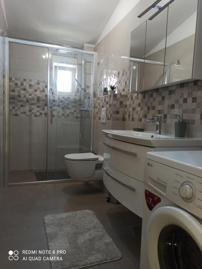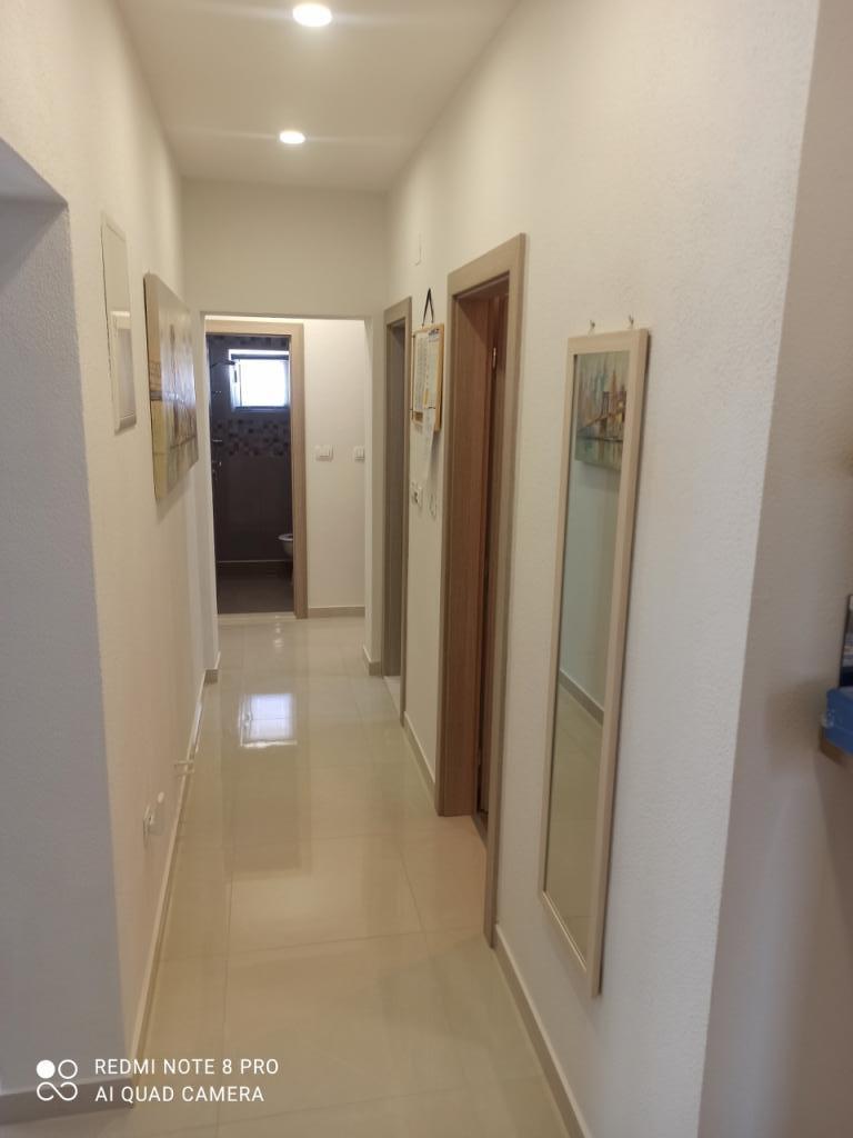 Nous sommes ravis de ce logement ! Nous avons été accueillis par un nouvel appartement joliment décoré, propre et spacieux pour 6 personnes au 2ème étage de la maison, avec une cuisine parfaitement équipée et deux salles de bain. La maison est située près de la plage (150 m), des commerces, des cafés, etc. Nous sommes venus avec trois voitures et nous avons tous réussi à nous garer à côté de l'appartement et à proximité, ce qui est super. Je recommanderais certainement l'appartement à tous ceux qui veulent passer des vacances idéales, en particulier aux familles avec enfants, car devant la maison, le propriétaire a construit une aire de jeux phénoménale avec des balançoires, un trampoline et une piscine.