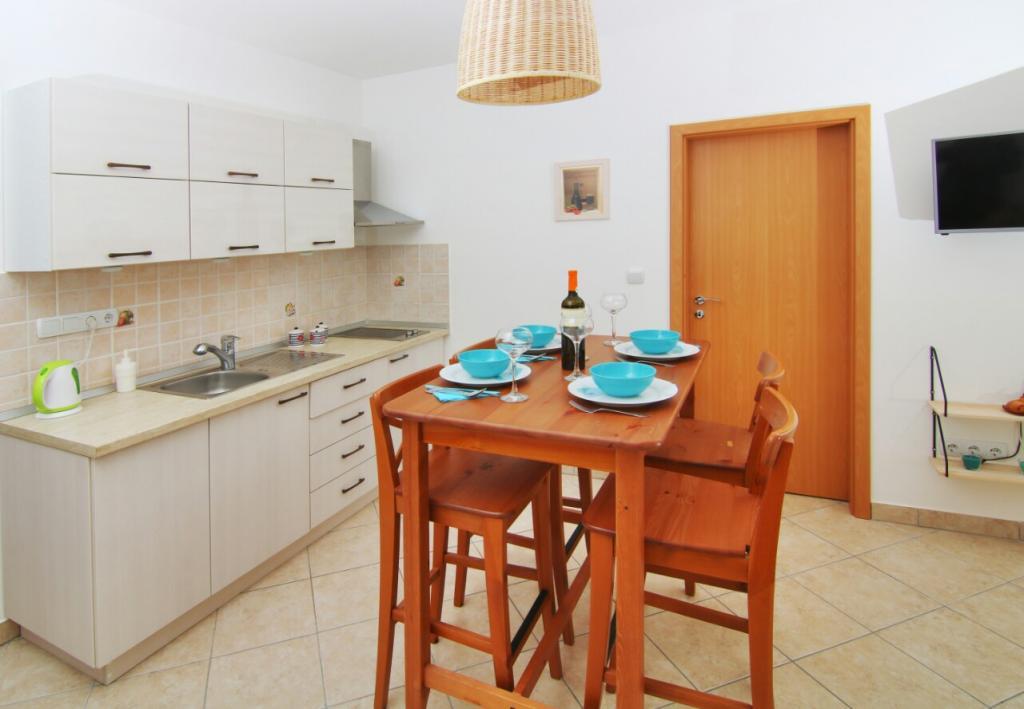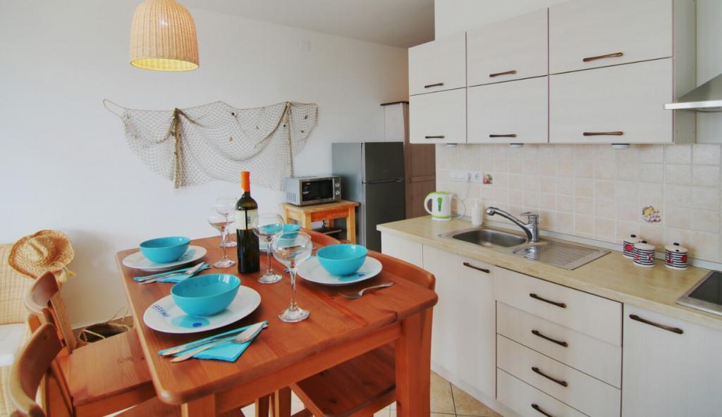 L'appartement Eli est un appartement lumineux et confortable avec un balcon/loggia donnant sur la mer, à seulement 50 m de la plage. Il est situé dans le paisible village de Smokvica Krmpotska, qui compte une cinquantaine de maisons et une quinzaine d'habitants permanents, à seulement 7 km de Novi Vinodolski et 11 km de Senj. Smokvica est un lieu idéal pour ceux qui souhaitent passer des vacances au calme, loin du tumulte quotidien, et profiter du chant des oiseaux, du bruit des vagues et d'un silence apaisant. L'appartement Eli est idéal pour un séjour à deux personnes, avec un accès facile aux nombreuses commodités à proximité. On y accède par un couloir avec un petit placard qui mène à la cuisine et à la salle à manger, ouvertes sur le salon, la chambre et la salle de bain. Le balcon/loggia, équipé d'une table pour quatre personnes et d'un barbecue électrique, est un atout majeur de l'appartement. L'appartement est équipé de la climatisation, du Wi-Fi, d'une télévision, d'un micro-ondes, d'un réfrigérateur avec congélateur, d'un grille-pain, d'une bouilloire électrique, d'une table et d'un fer à repasser, d'un sèche-cheveux, d'un grille-pain...